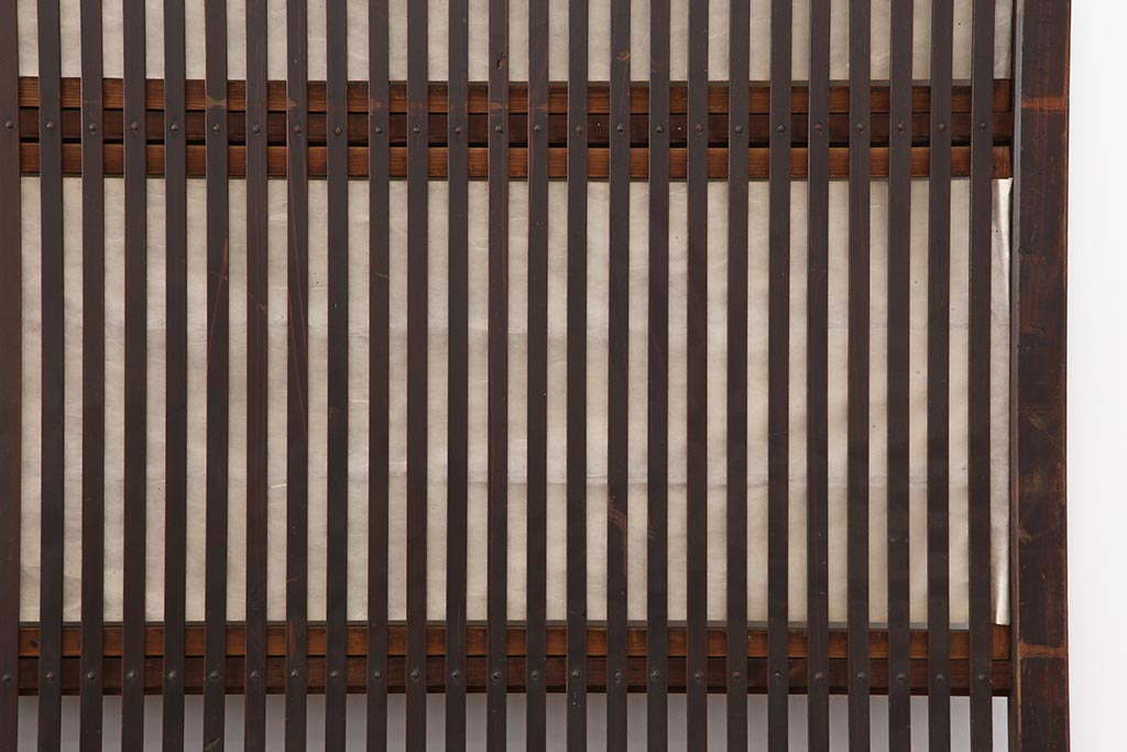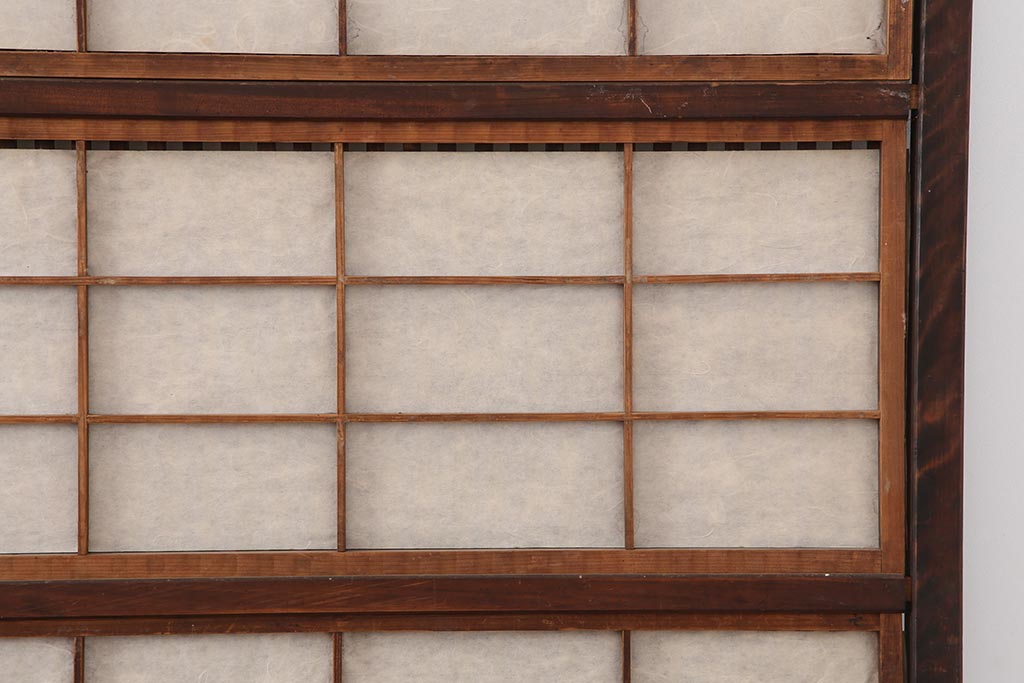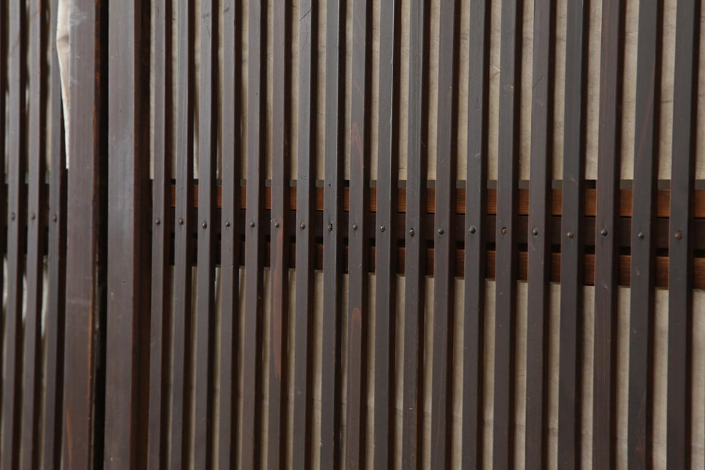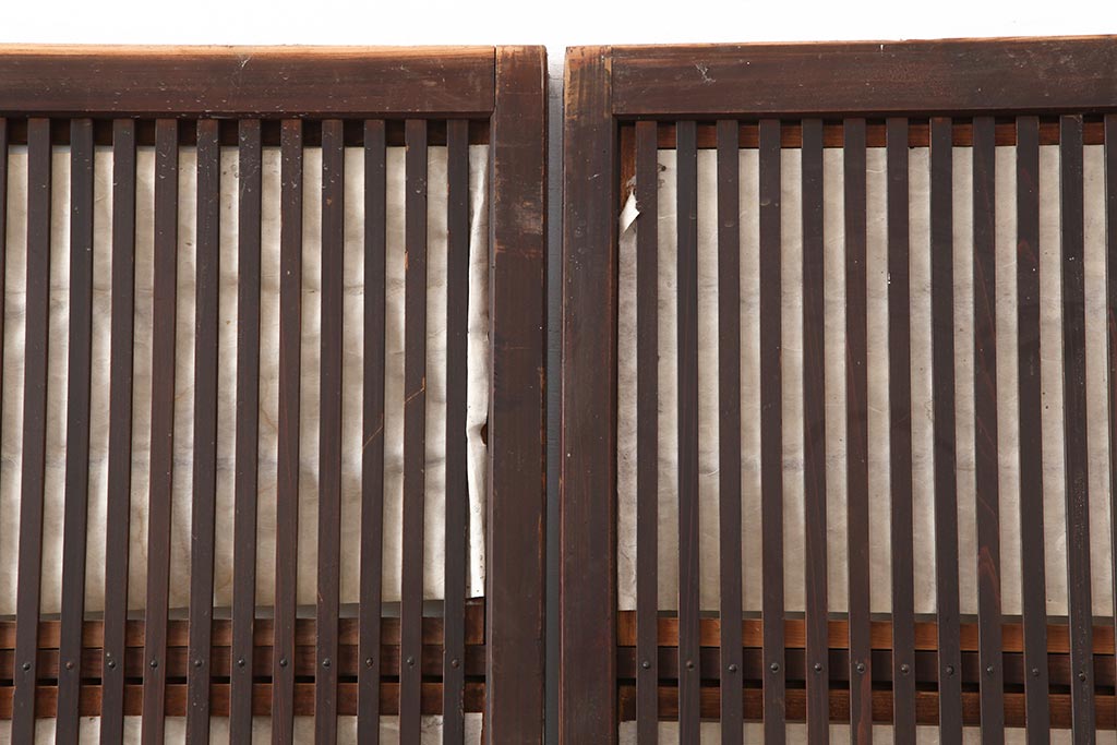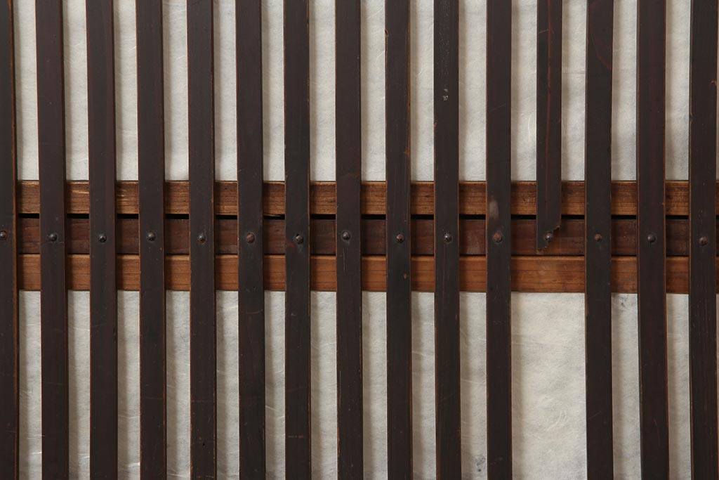 ラフジュ工房> ドア・建具> 障子戸 > アンティーク建具 和製アンティーク 大正期 裏障子付き いぶされたような色合いが味わい深い格子戸4枚セット(ガラス帯戸、格子帯戸、引き戸、建具)(R-044286)