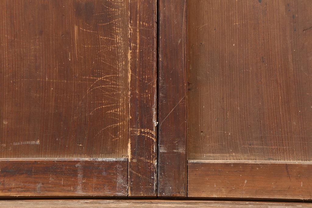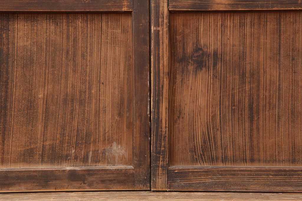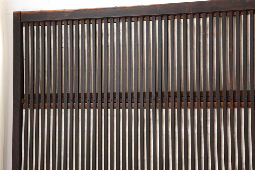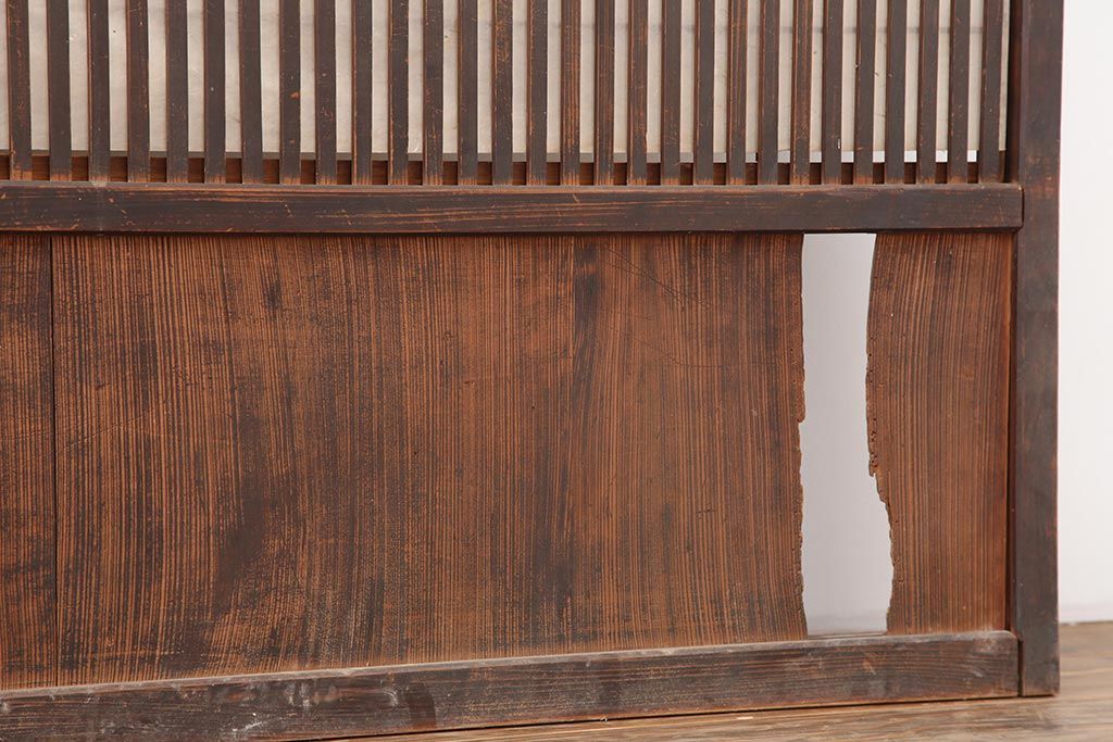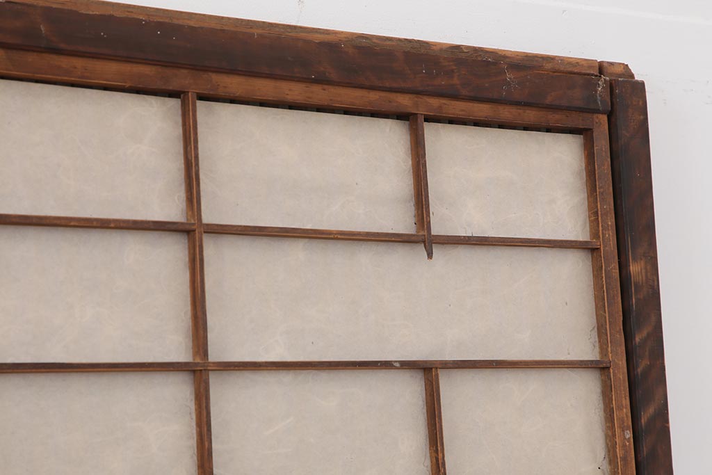 ラフジュ工房> ドア・建具> 障子戸 > アンティーク建具 和製アンティーク 大正期 裏障子付き いぶされたような色合いが味わい深い格子戸4枚セット(ガラス帯戸、格子帯戸、引き戸、建具)(R-044286)