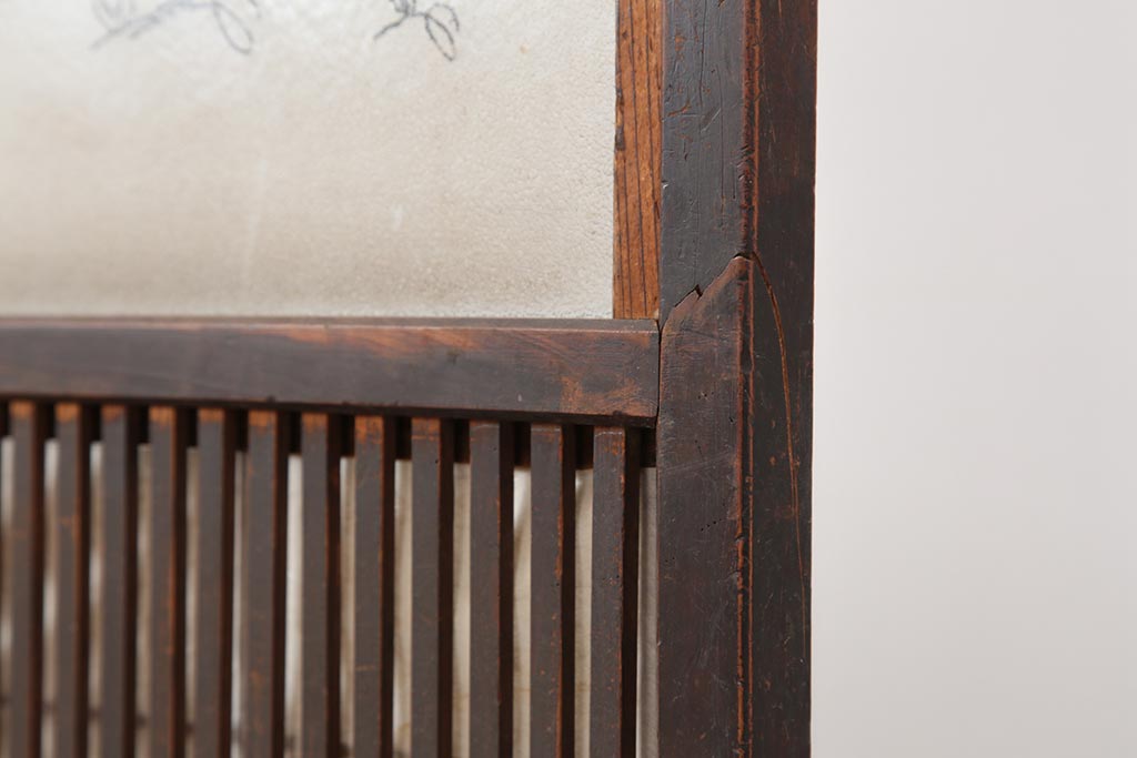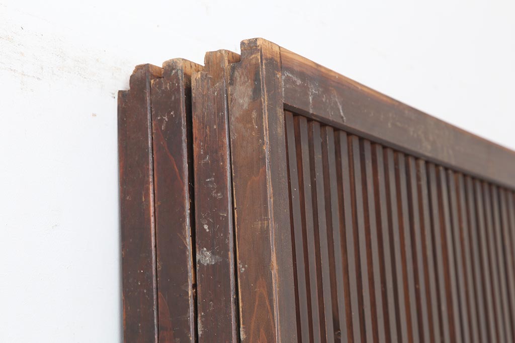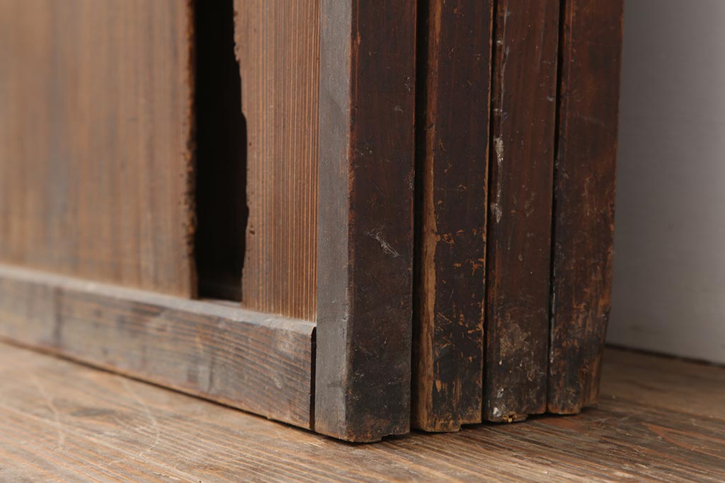 ラフジュ工房> ドア・建具> 引き戸 > アンティーク建具 和製アンティーク 大正期 裏障子付き いぶされたような色合いが味わい深い格子戸4枚セット(ガラス帯戸、格子帯戸、引き戸、建具)(R-044286)