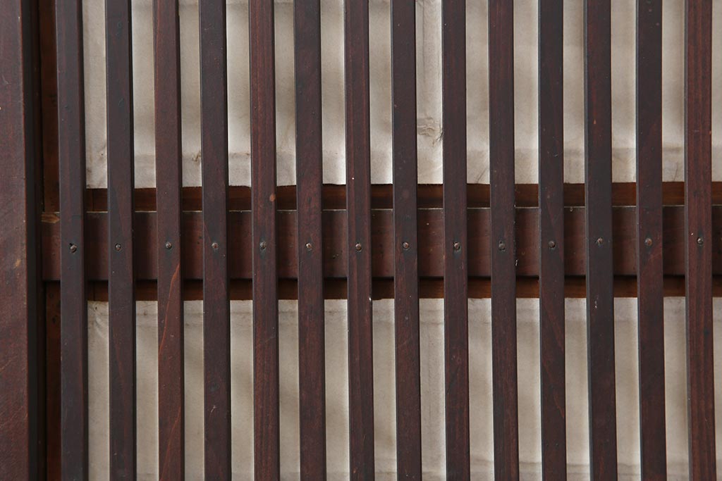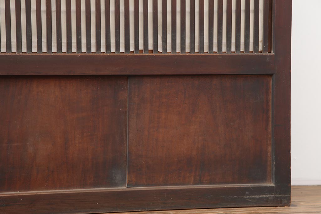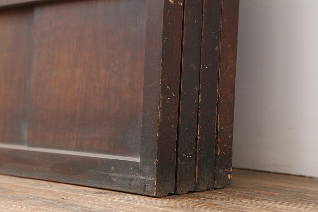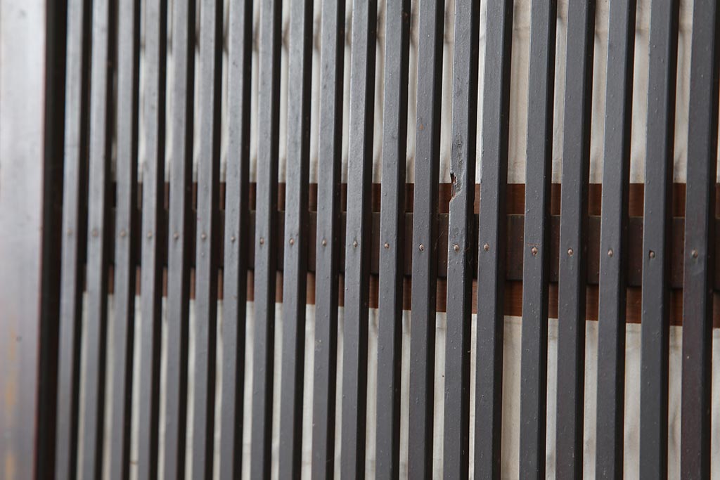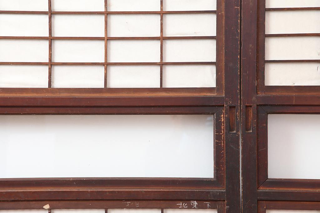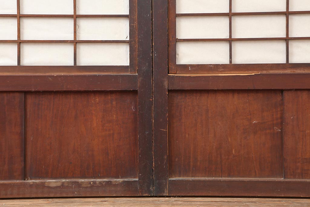 ドア・建具> 障子戸 > アンティーク建具 和製アンティーク 大正期 裏障子付き いぶされたような色合いが味わい深い格子戸4枚セット(ガラス帯戸、格子帯戸、引き戸、建具)(R-044285)