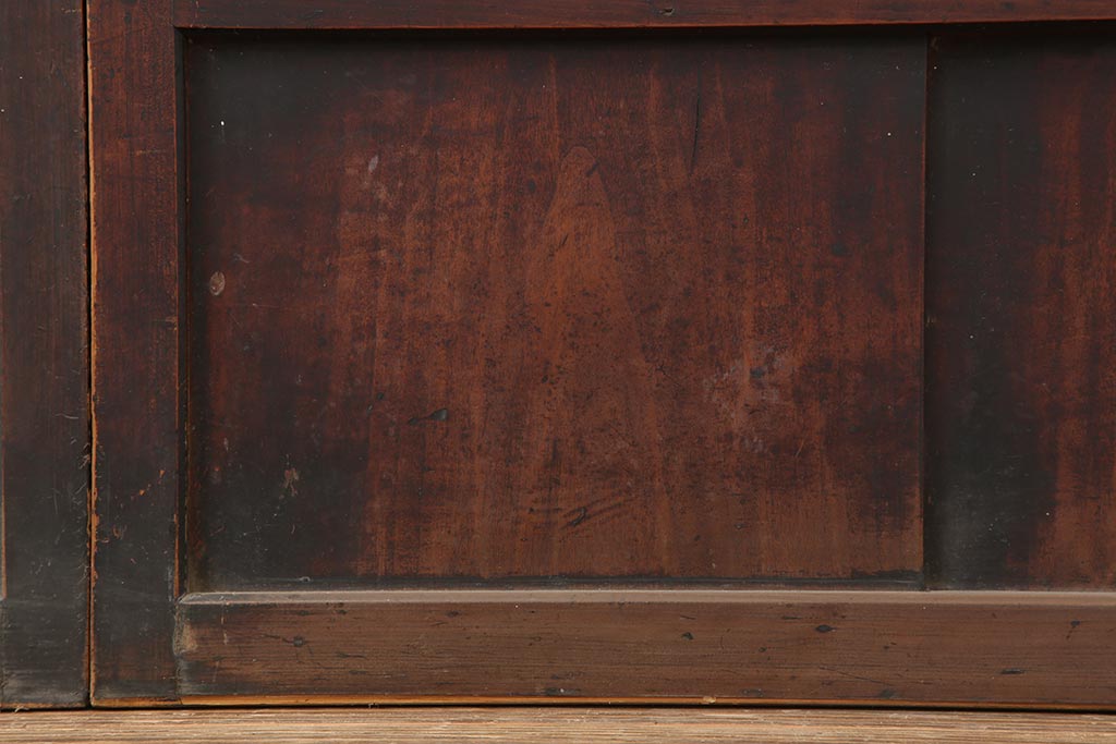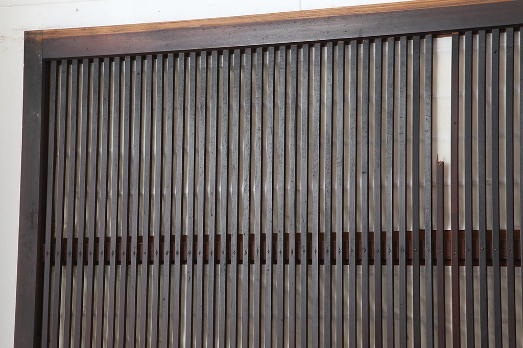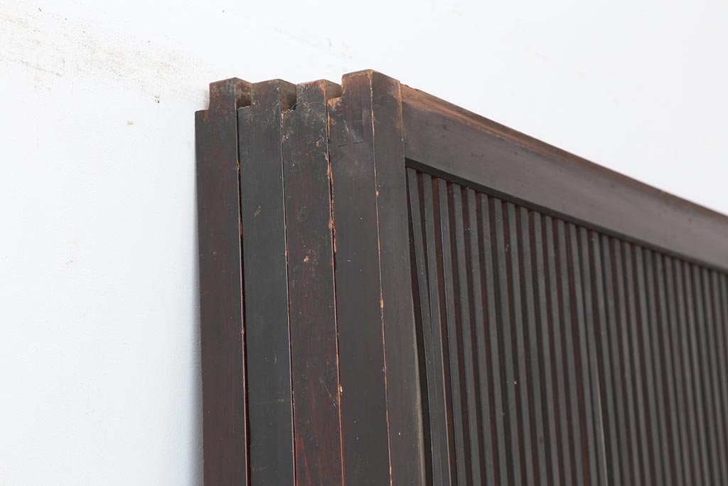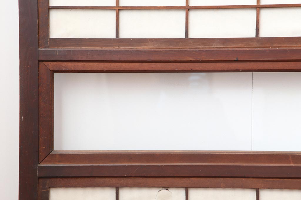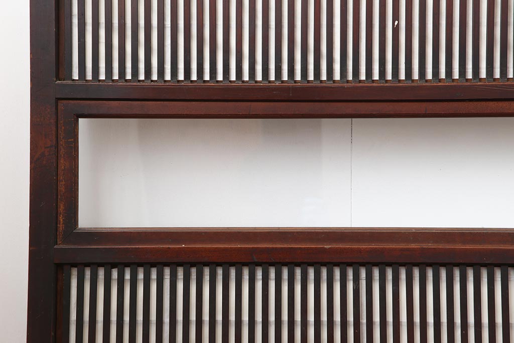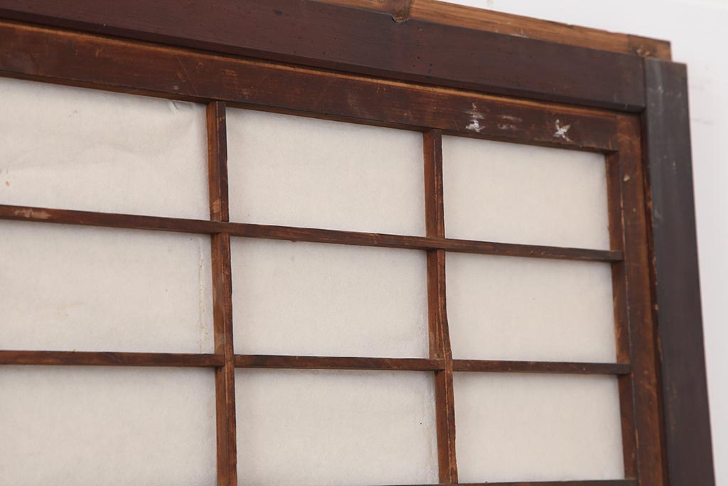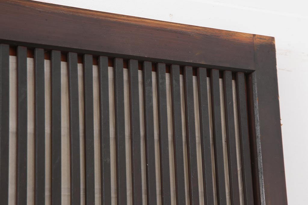 ドア・建具> 障子戸 > アンティーク建具 和製アンティーク 大正期 裏障子付き いぶされたような色合いが味わい深い格子戸4枚セット(ガラス帯戸、格子帯戸、引き戸、建具)(R-044285)