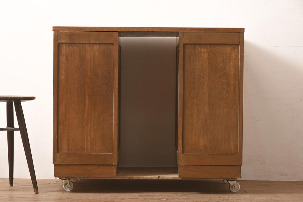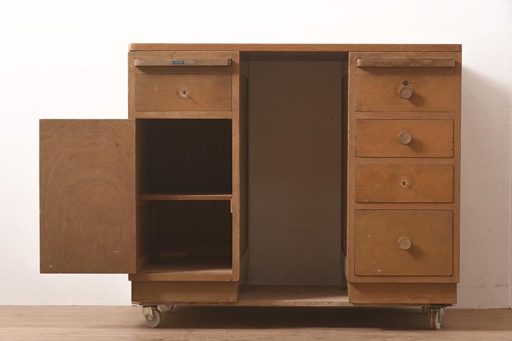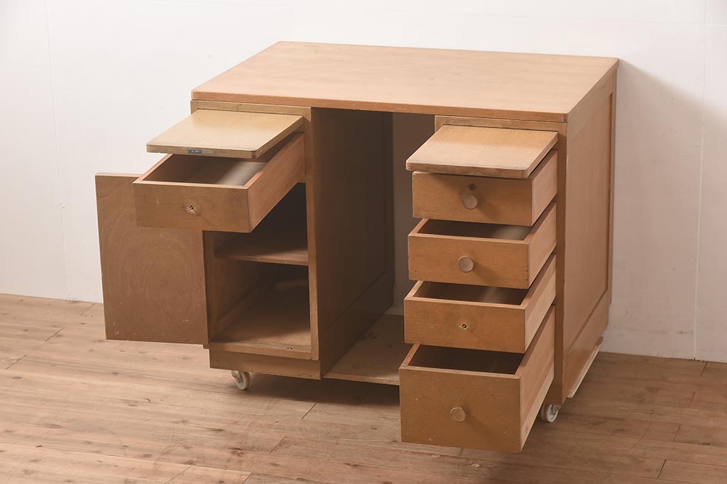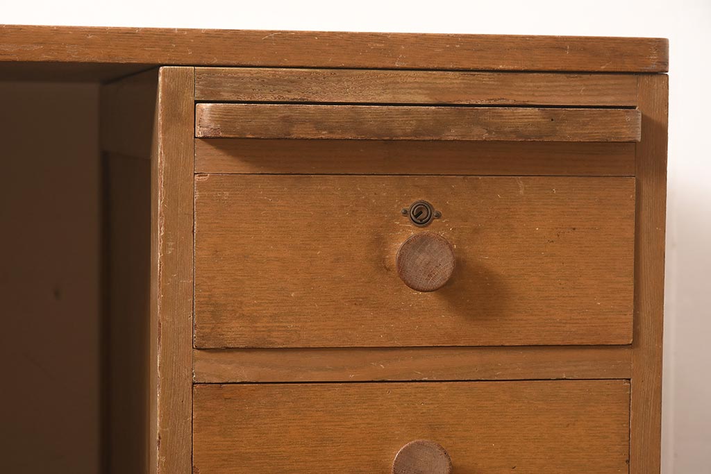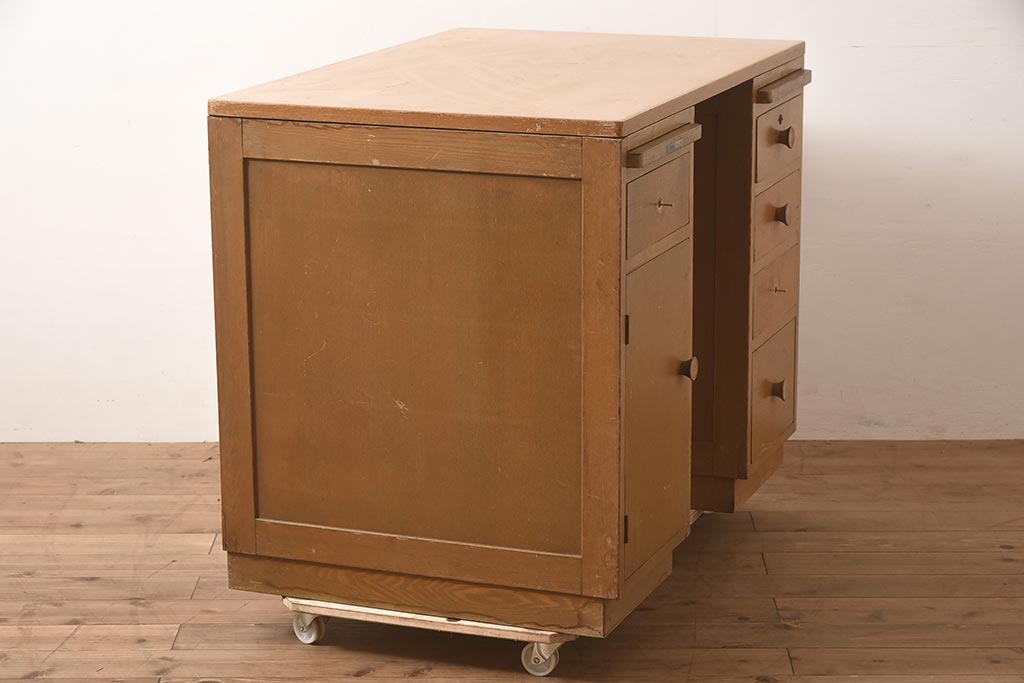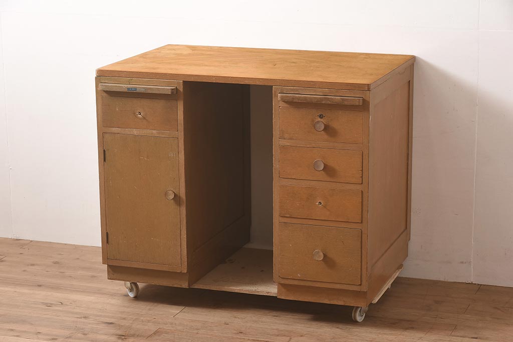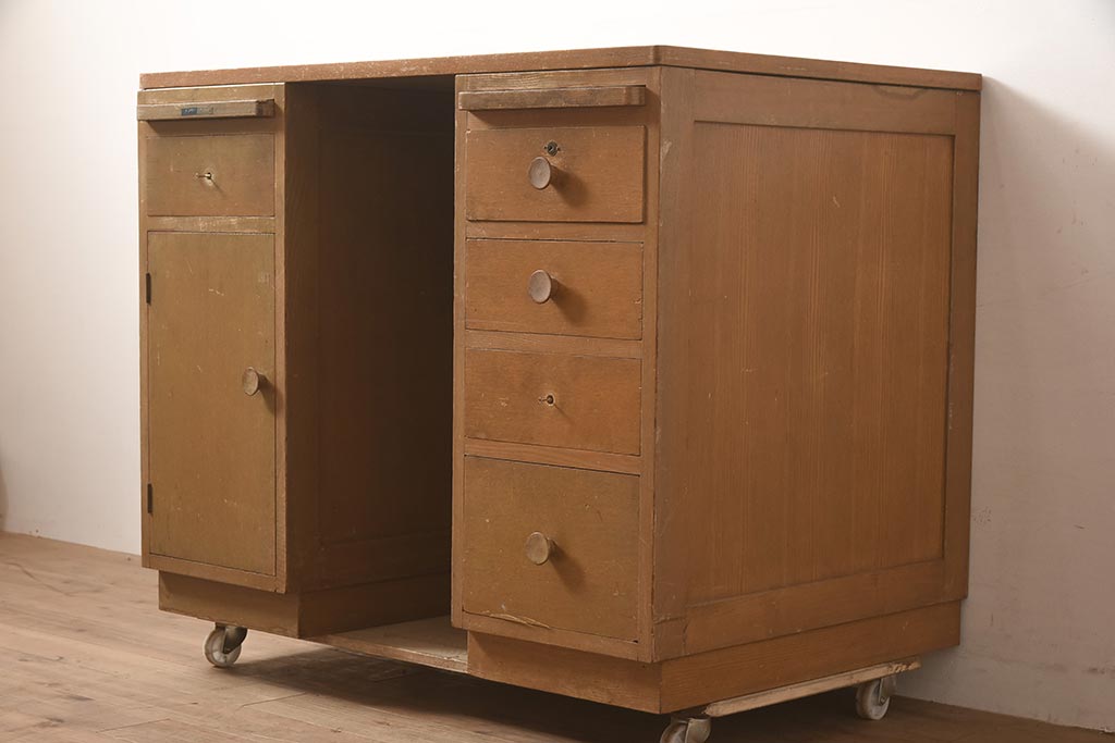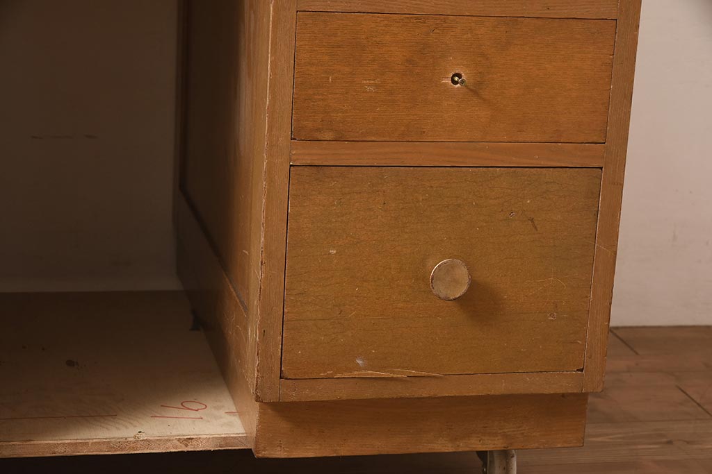 レトロ家具 昭和レトロ 昭和中期 様々な使い方ができるレトロモダンな両袖机(デスク、ワークデスク、サイドキャビネット、サイドチェスト)(R-044289)です。