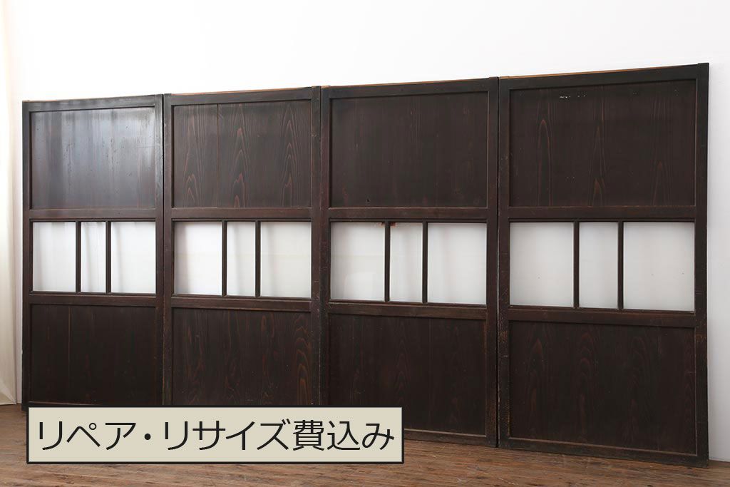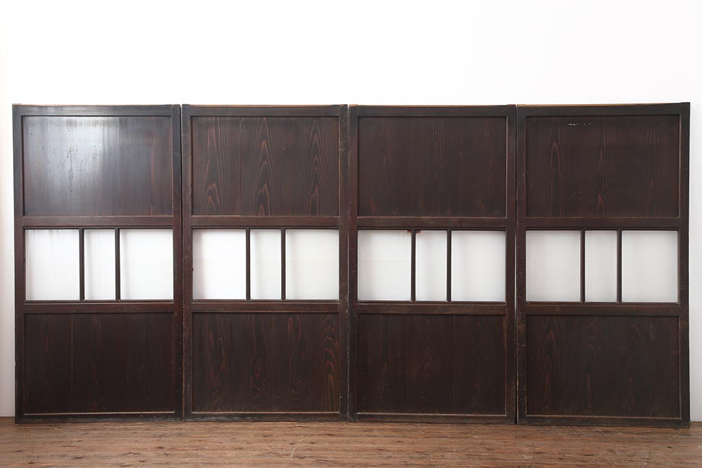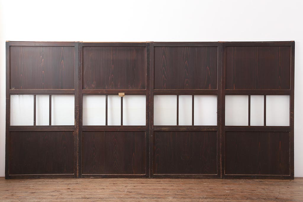 ドア・建具> 4枚〜セット > アンティーク建具 和製アンティーク 明治大正期 和の趣たっぷりの帯戸4枚セット(ガラス帯戸、引き戸、建具)(R-044309)