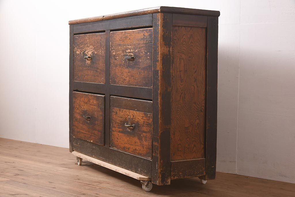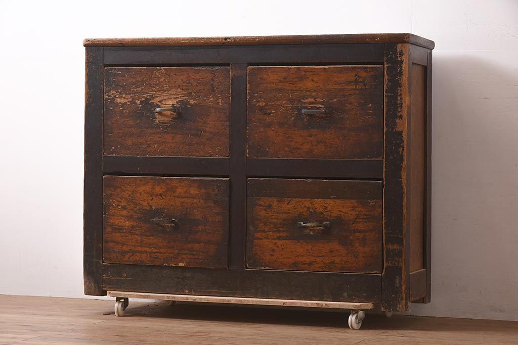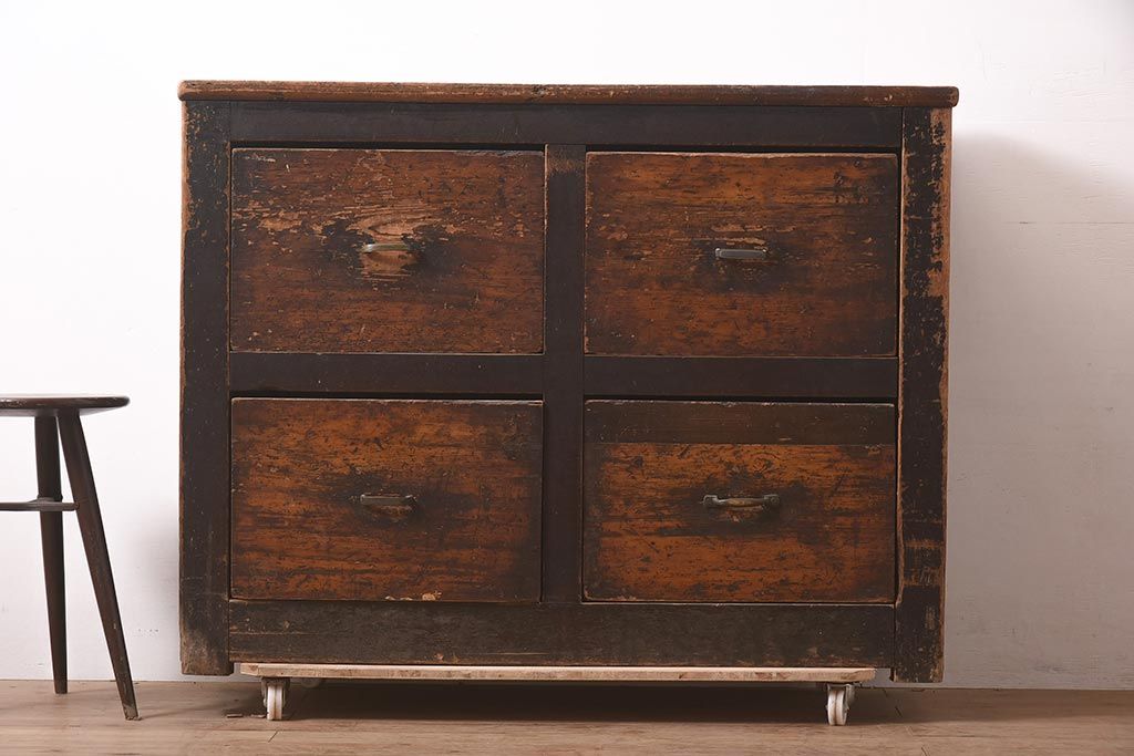 アンティーク家具 昭和初期 工業系 書類の整理におすすめのレトロなチェスト(引き出し)(R-044293)