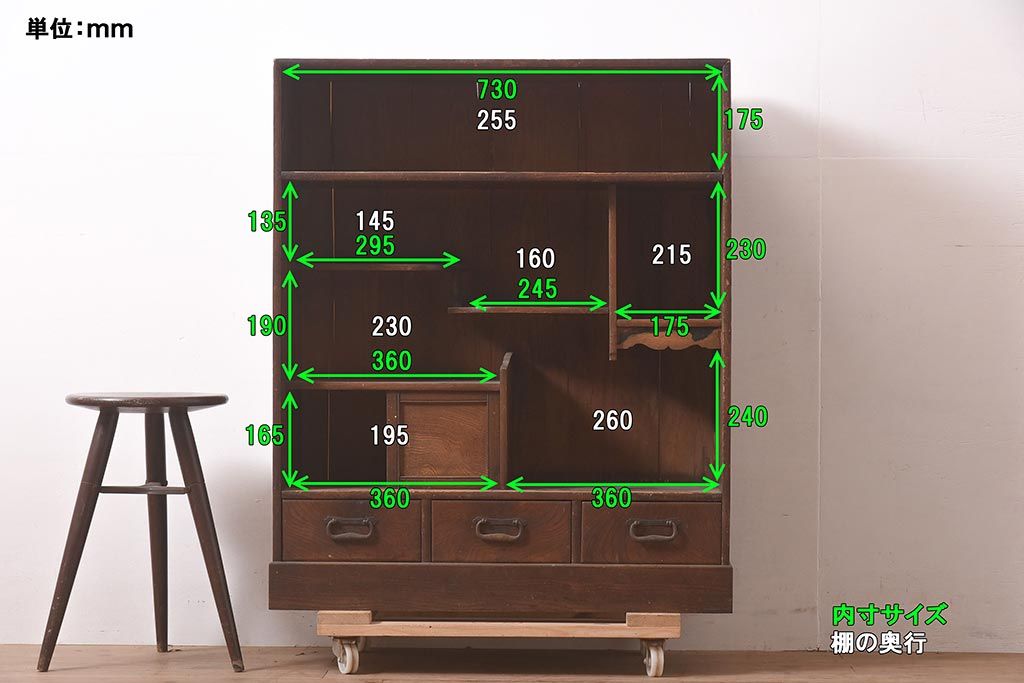 アンティーク家具 大正期 懐かしい雰囲気漂う茶箪笥(茶棚、収納棚、飾り棚)(R-044291)
