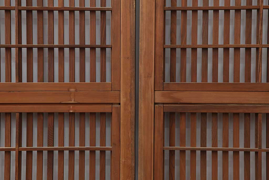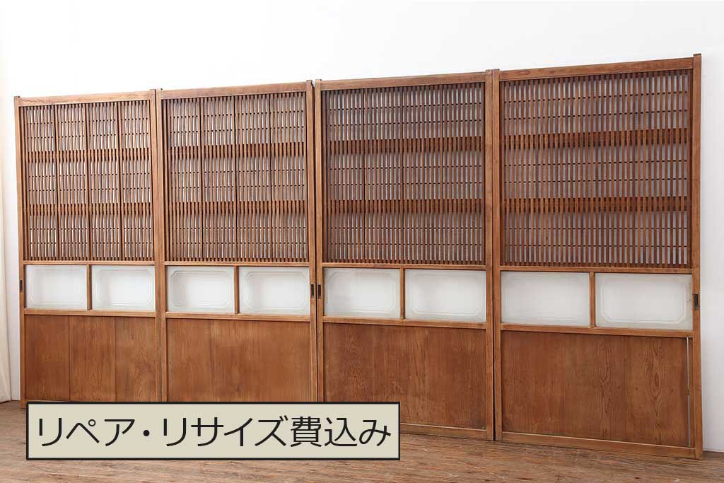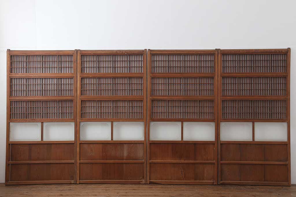 ラフジュ工房> ドア・建具> 格子戸 > アンティーク建具 昭和初期 裏障子付き 細やかな桟が風情のある格子戸4枚セット(ガラス帯戸、格子帯戸、引き戸、建具)(R-044243)
