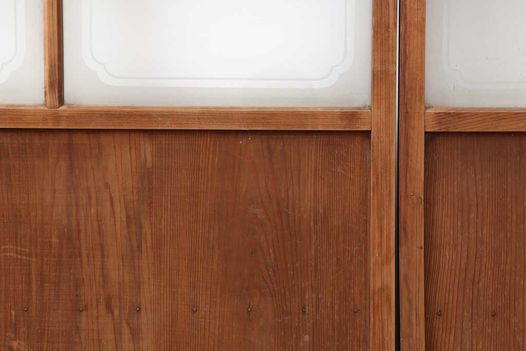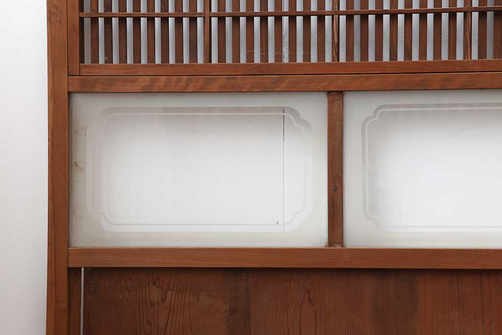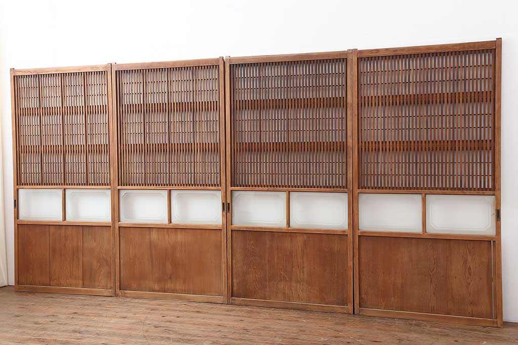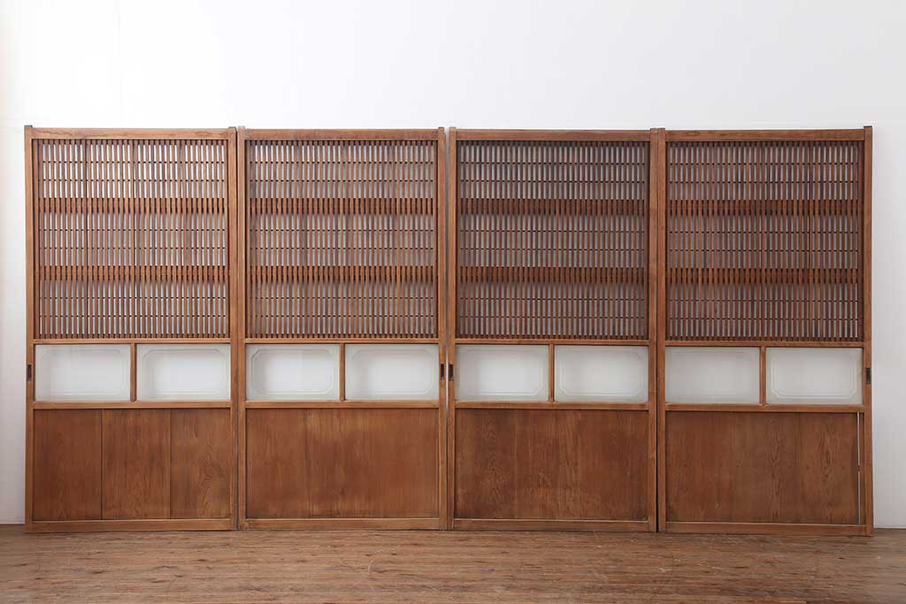 ラフジュ工房> ドア・建具> 引き戸 > アンティーク建具 昭和初期 裏障子付き 細やかな桟が風情のある格子戸4枚セット(ガラス帯戸、格子帯戸、引き戸、建具)(R-044243)