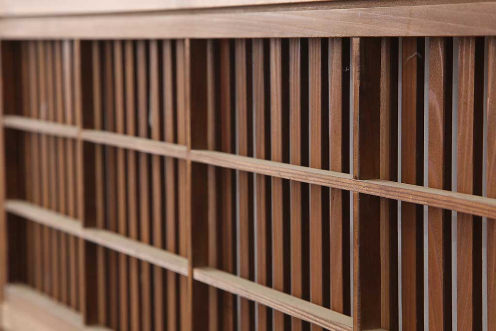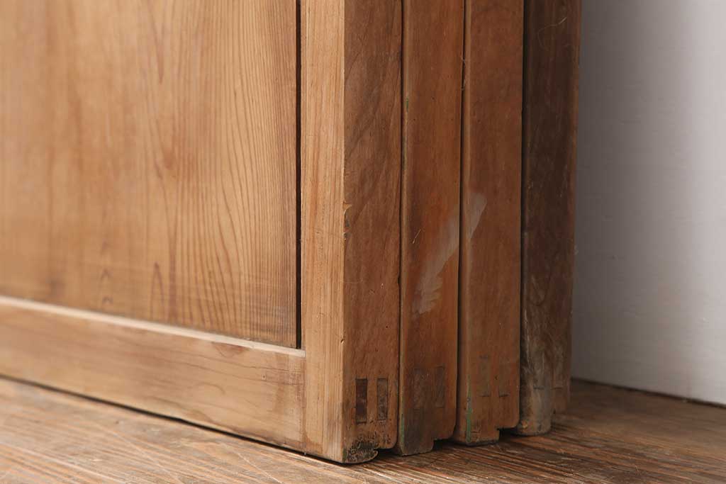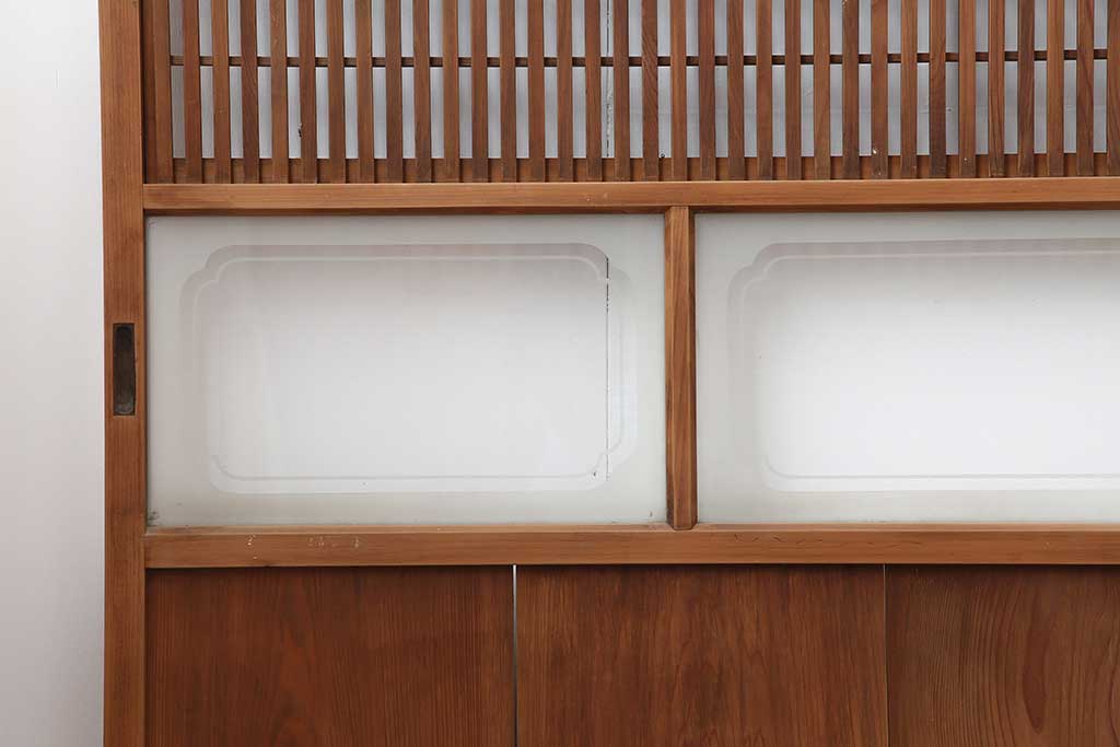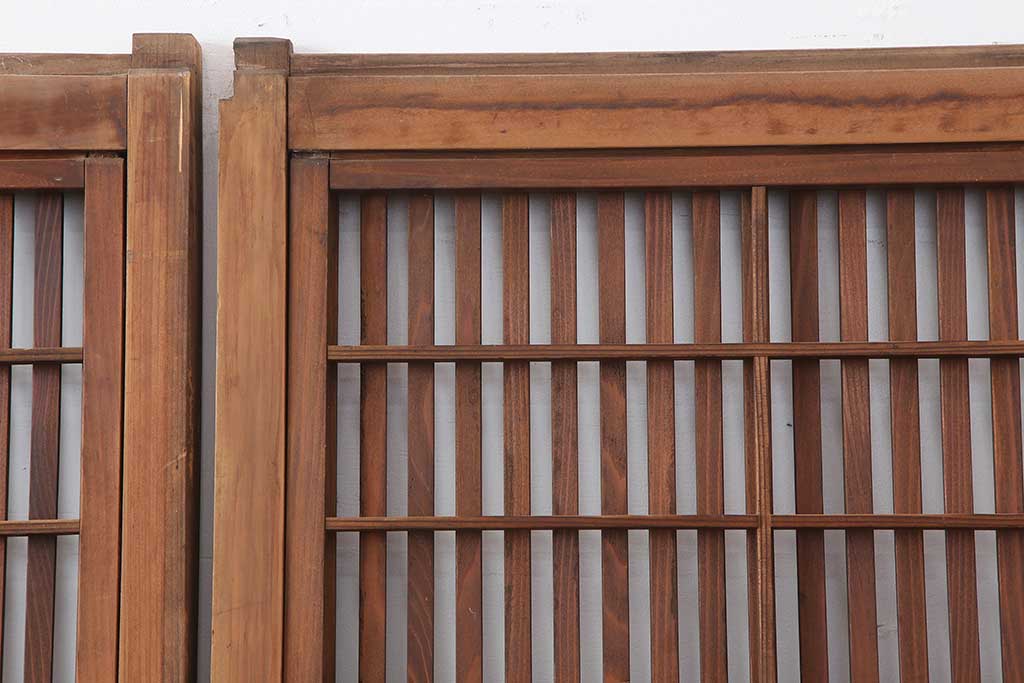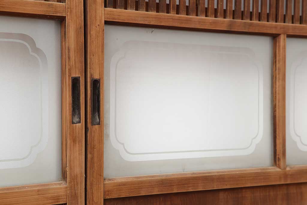 ラフジュ工房> ドア・建具> 引き戸 > アンティーク建具 昭和初期 裏障子付き 細やかな桟が風情のある格子戸4枚セット(ガラス帯戸、格子帯戸、引き戸、建具)(R-044243)