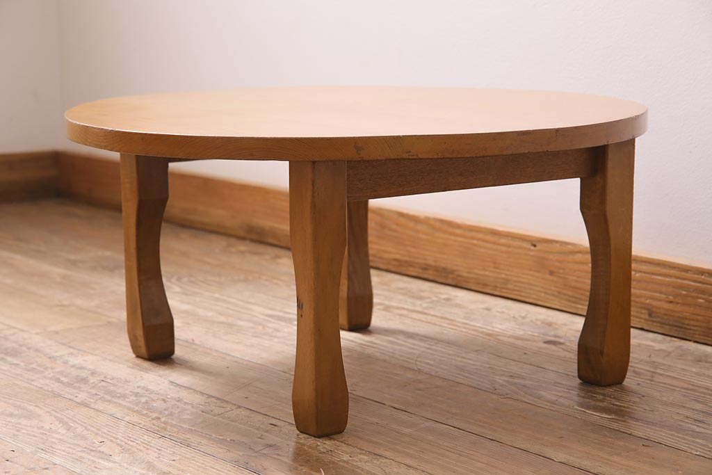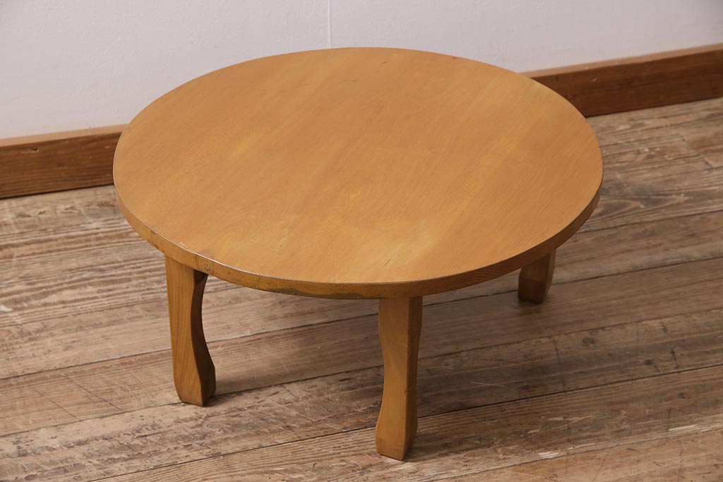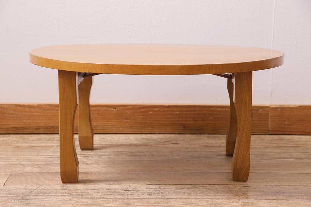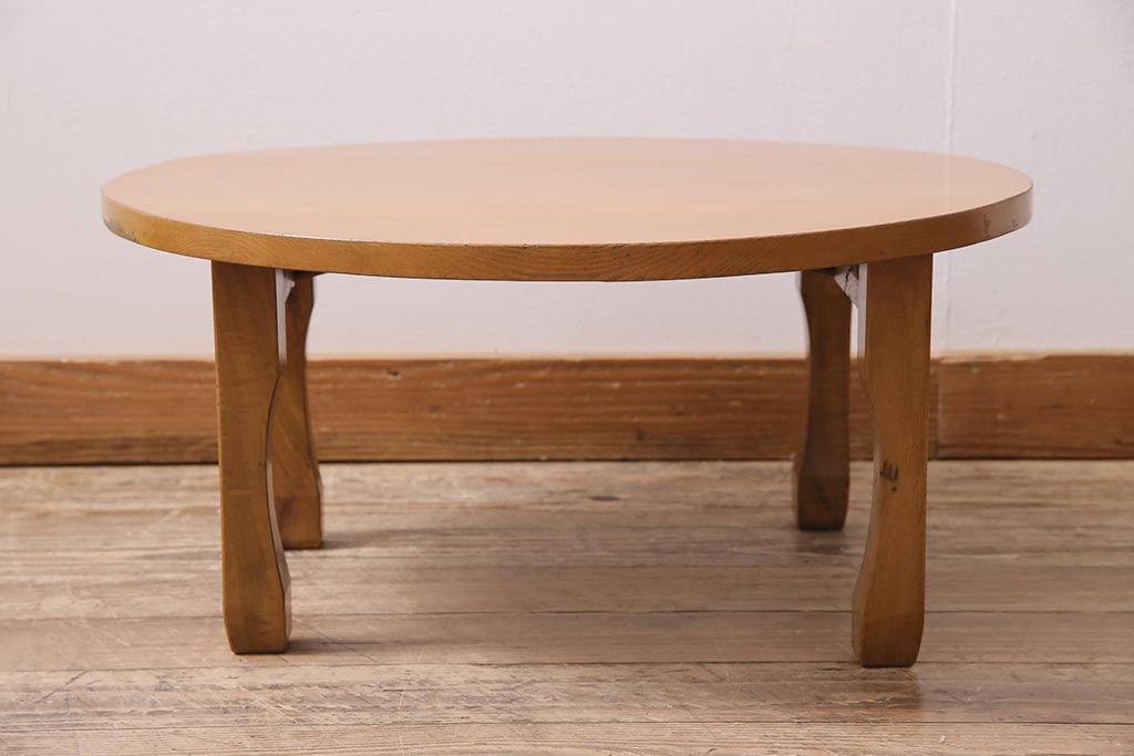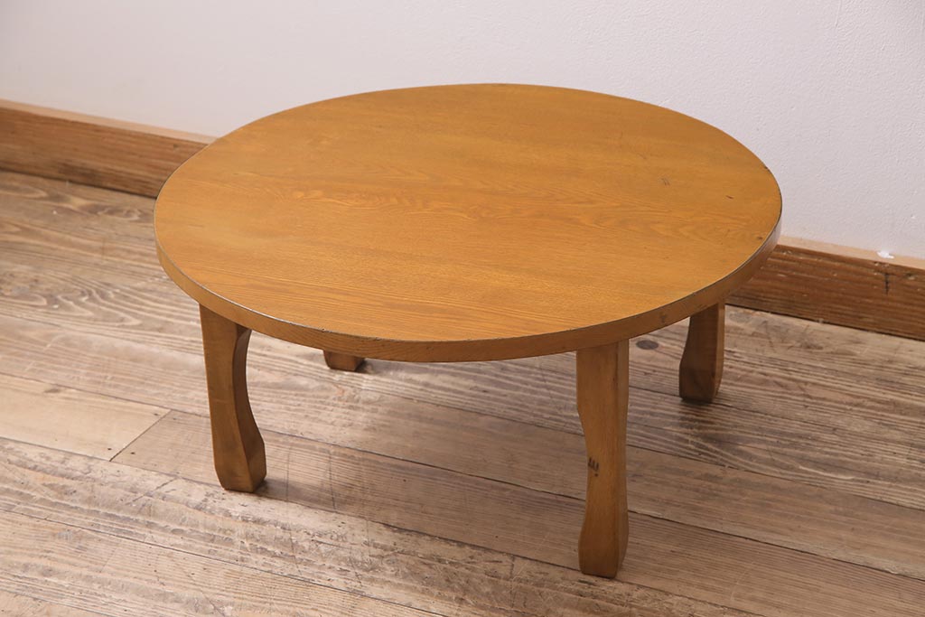 テーブル> 座卓 > ビンテージ家具 昭和中期 タモ材 珍しいデザインのレトロな丸ちゃぶ台(座卓、折り畳みテーブル)(R-044376)