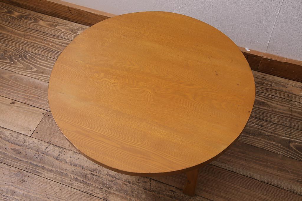 ビンテージ家具 昭和中期 タモ材 珍しいデザインのレトロな丸ちゃぶ台(座卓、折り畳みテーブル)(R-044376)