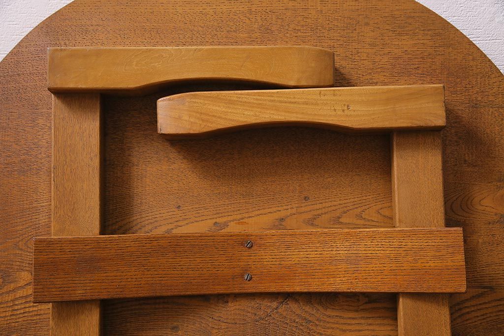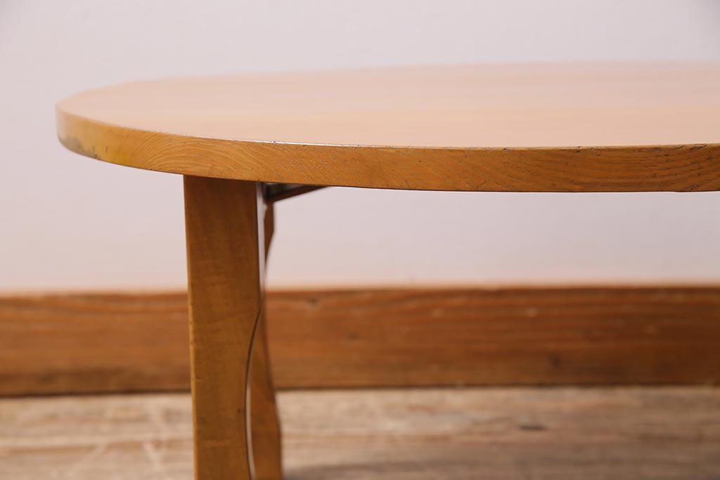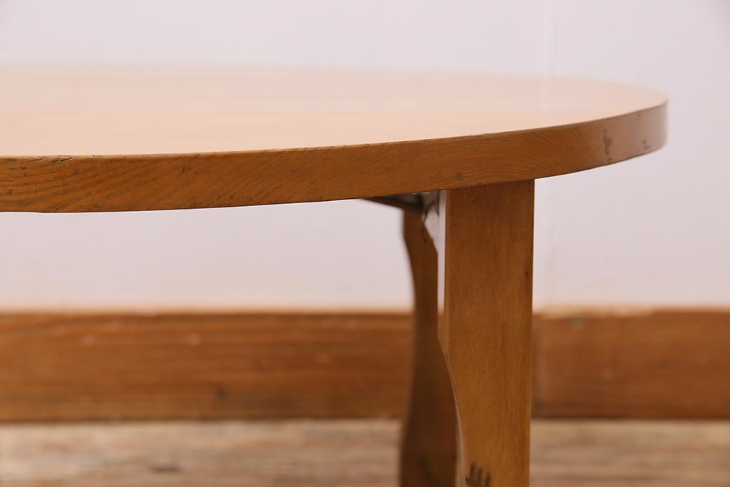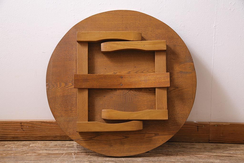 テーブル> おりたたみテーブル > ビンテージ家具 昭和中期 タモ材 珍しいデザインのレトロな丸ちゃぶ台(座卓、折り畳みテーブル)(R-044376)