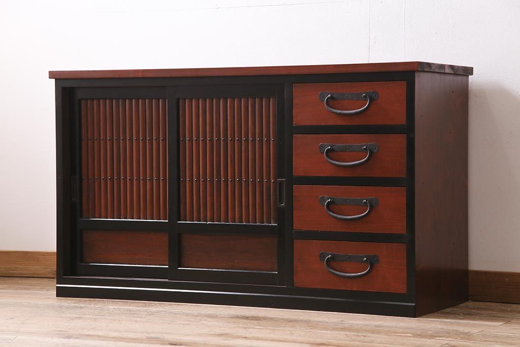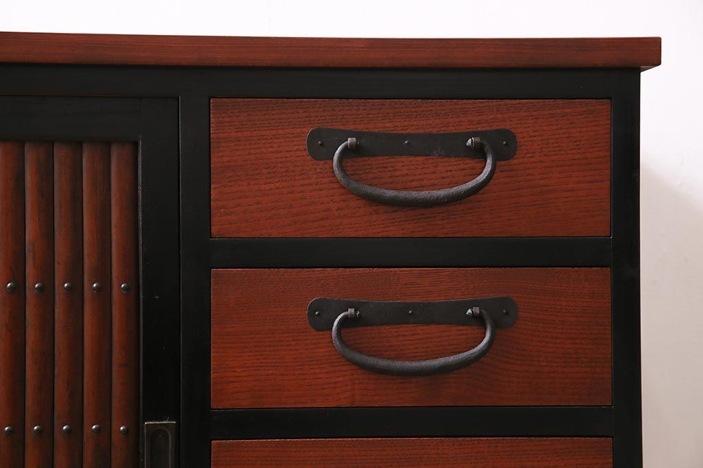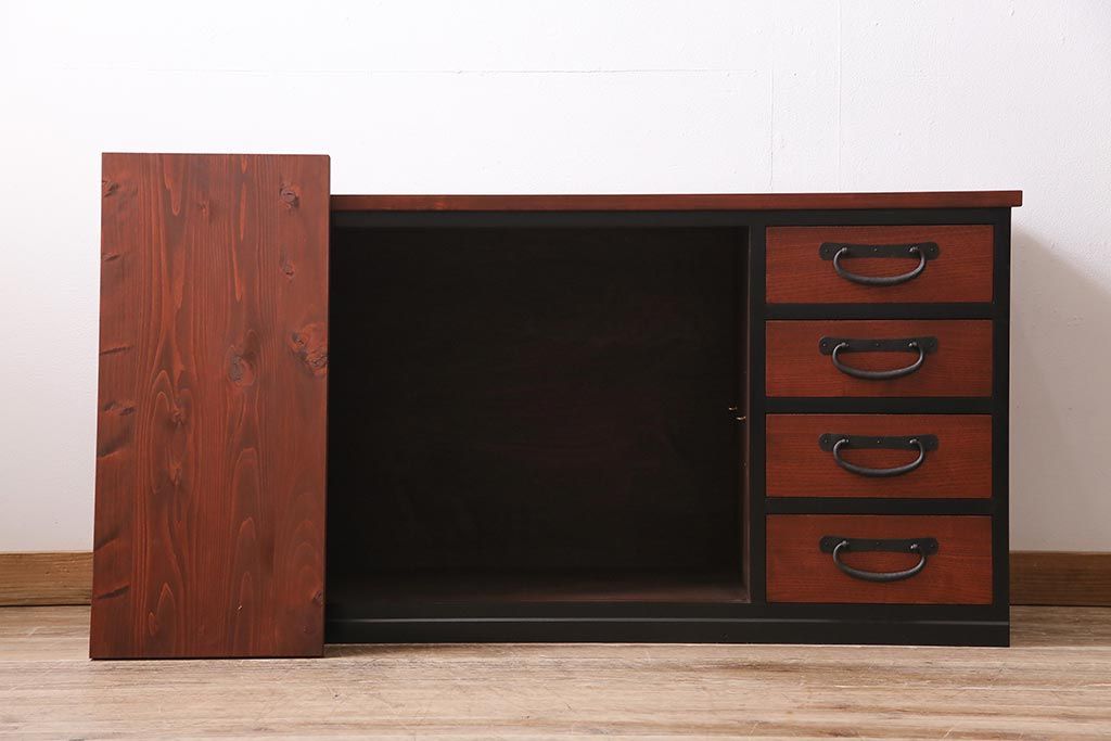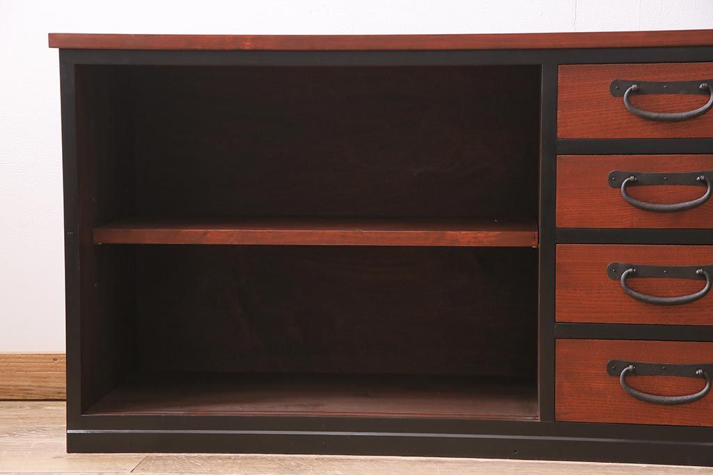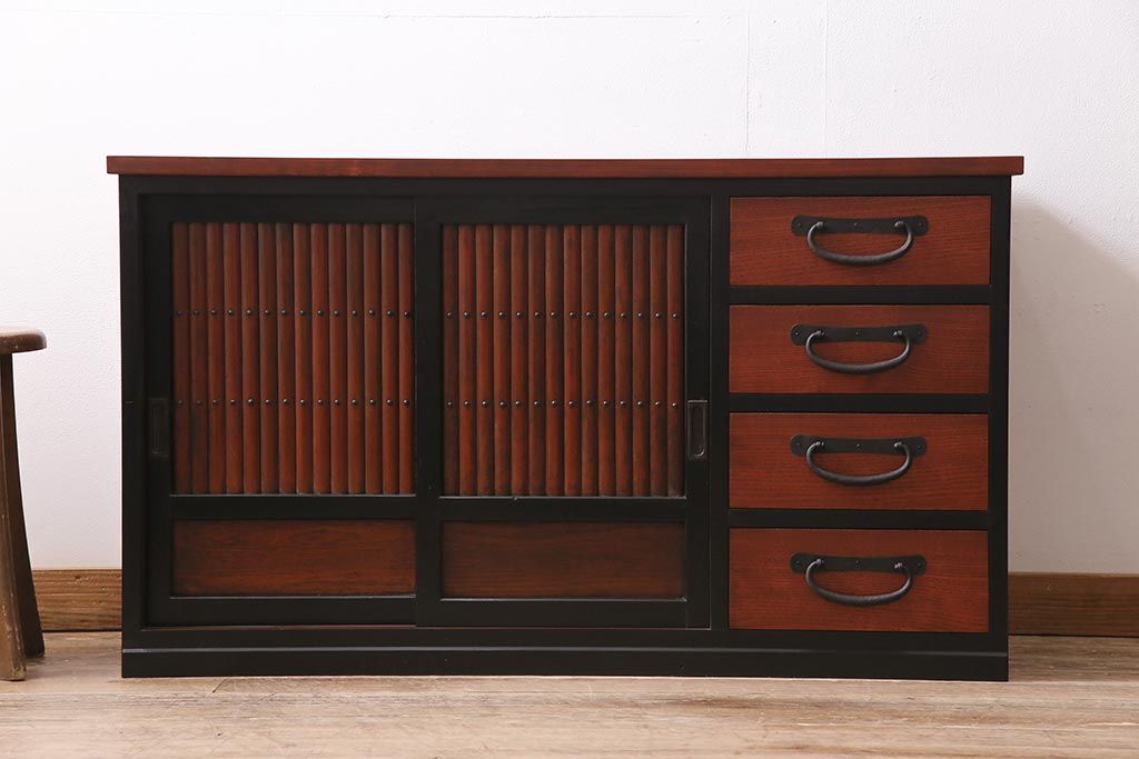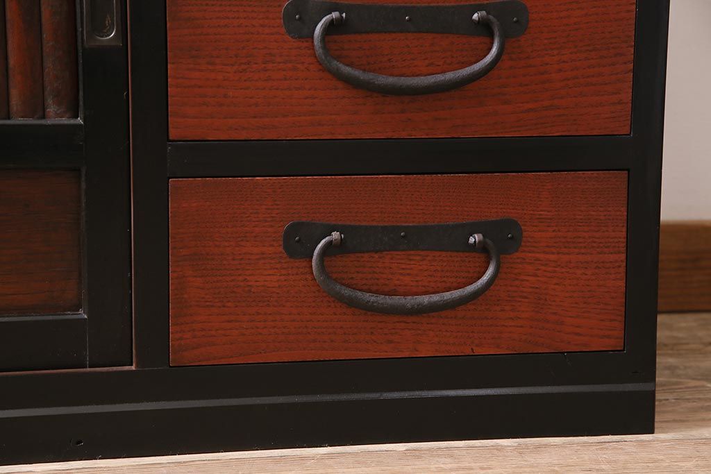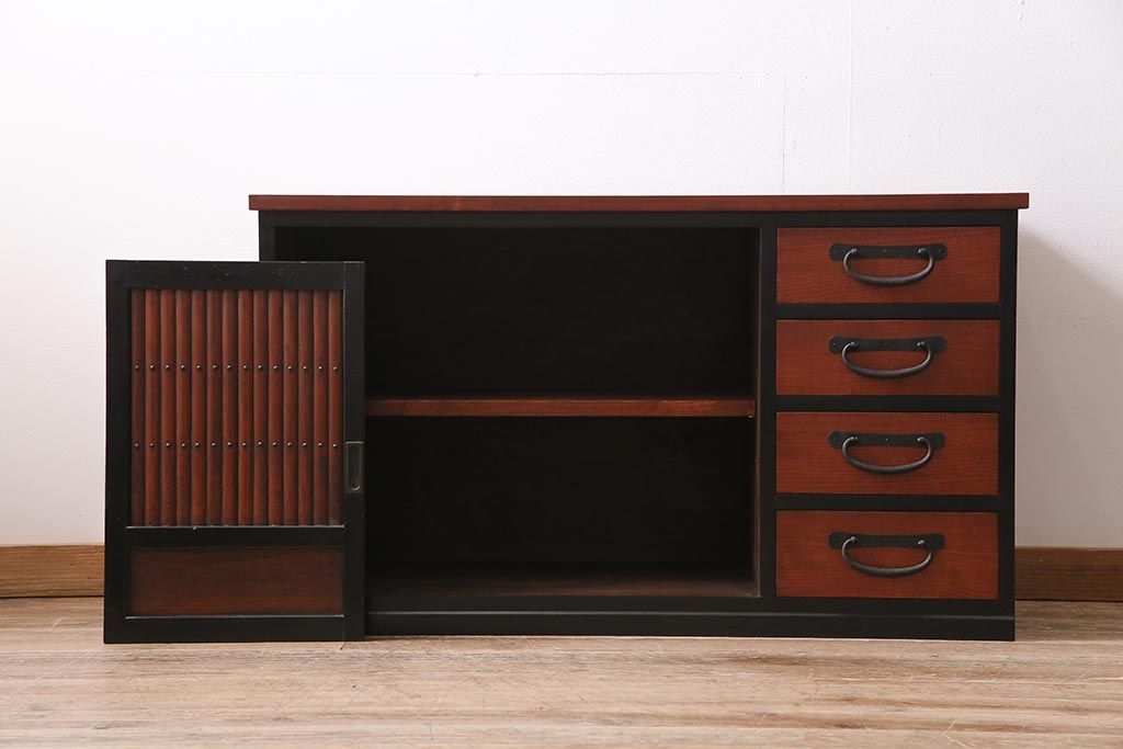 ラフジュ工房オリジナル 古建具リメイク 粋なコントラストが目を引く引き出し付きローボード(収納棚、戸棚、テレビ台、テレビボード)(R-044312)