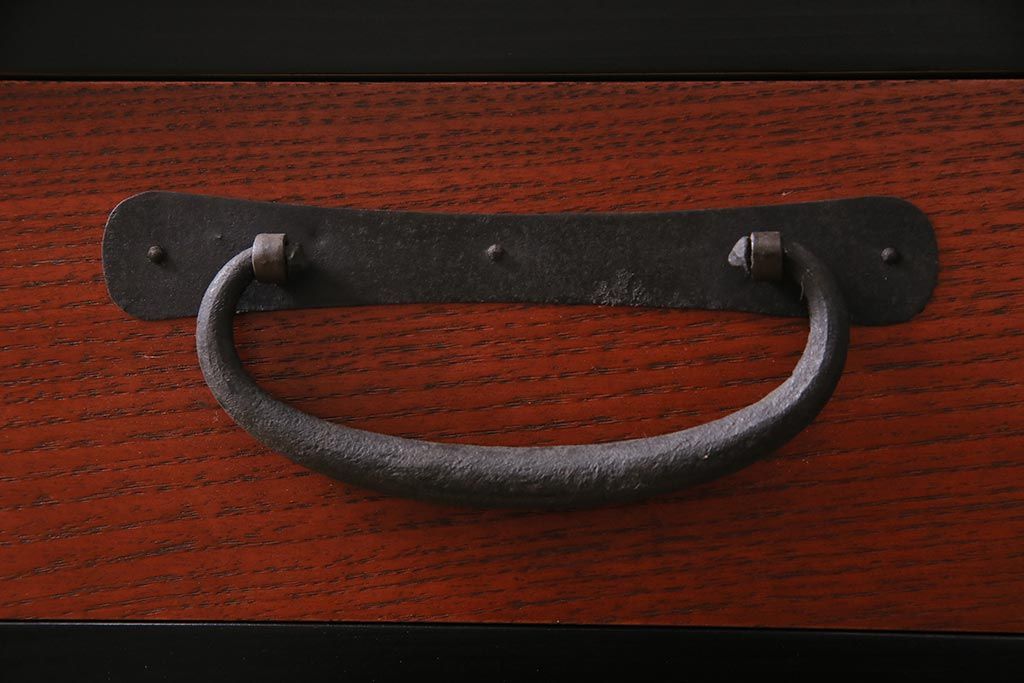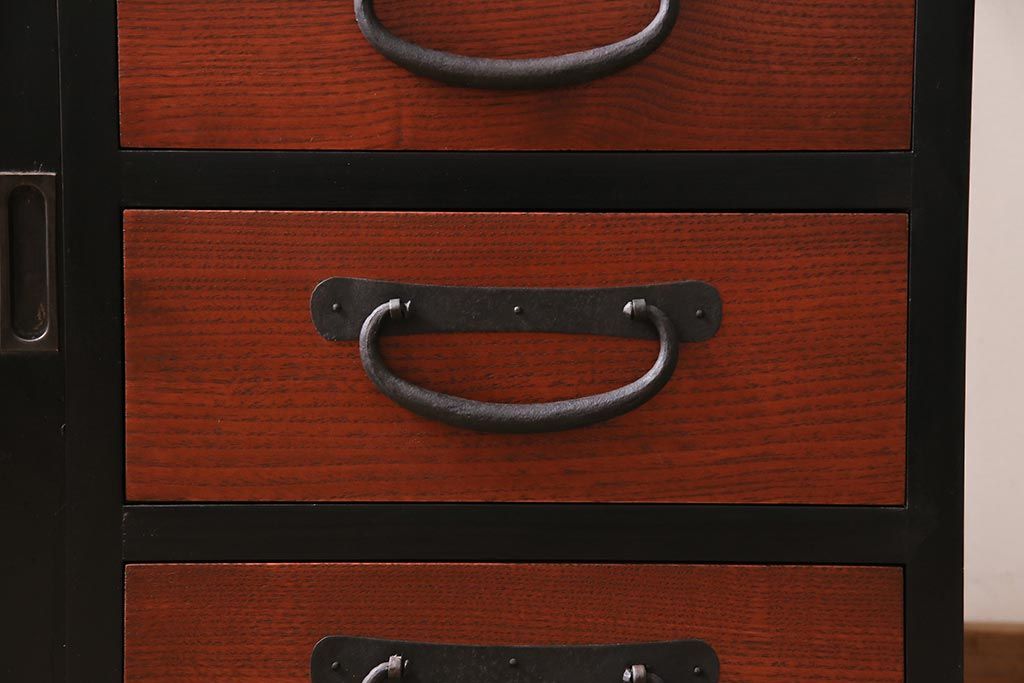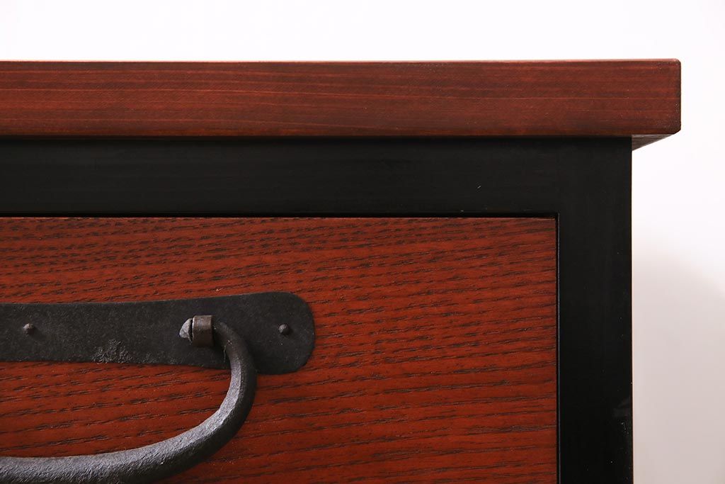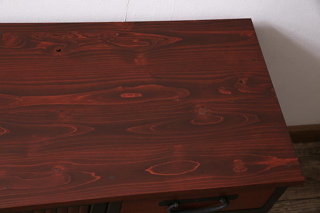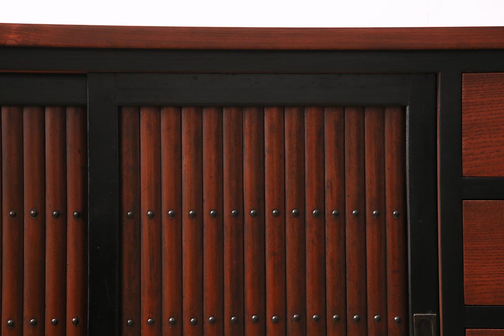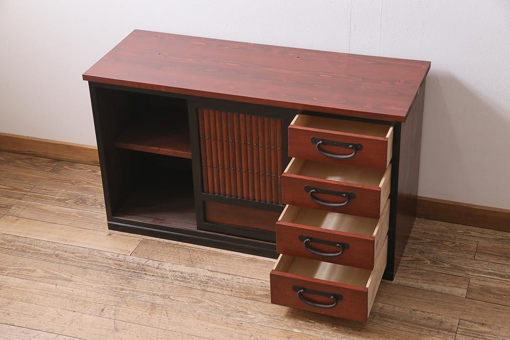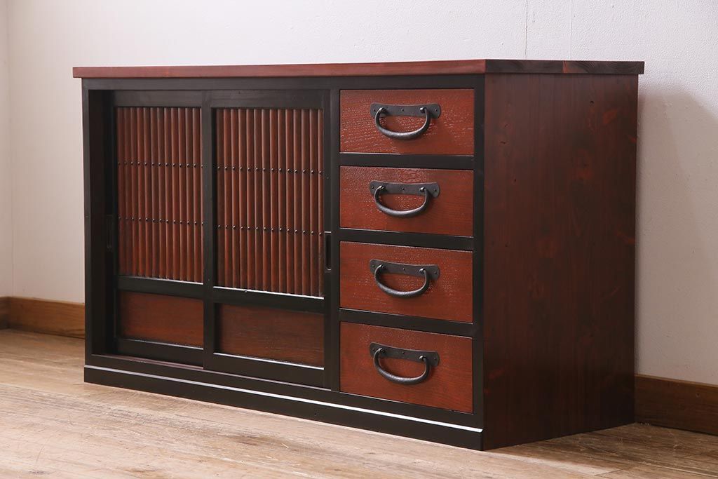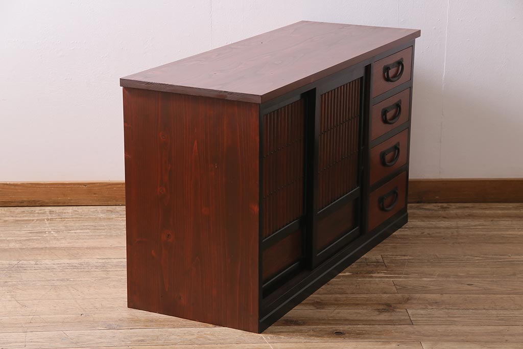 ラフジュ工房オリジナル 古建具リメイク 粋なコントラストが目を引く引き出し付きローボード(収納棚、戸棚、テレビ台、テレビボード)(R-044312)