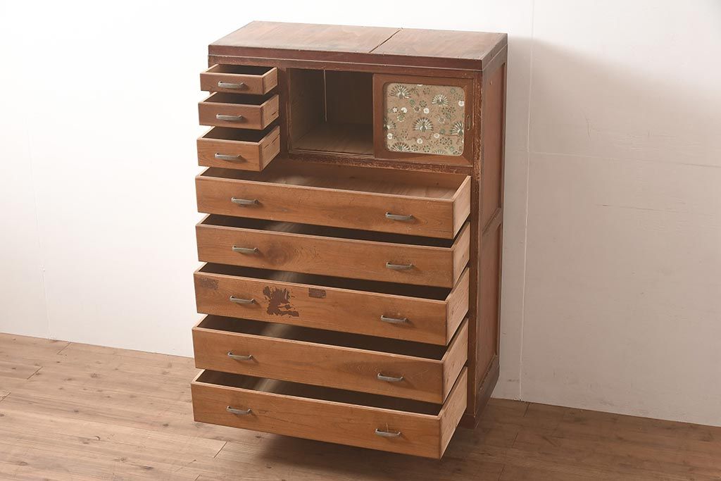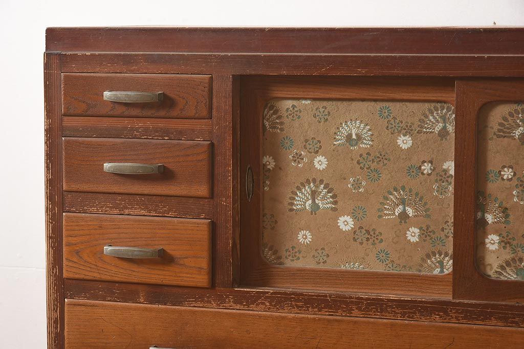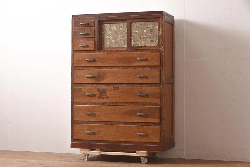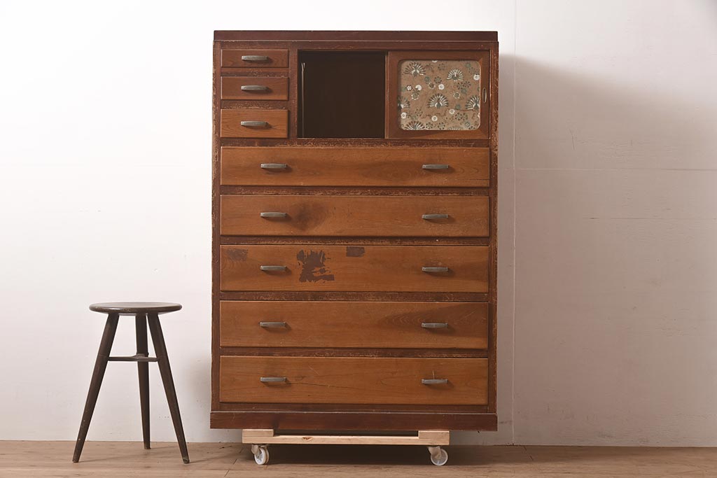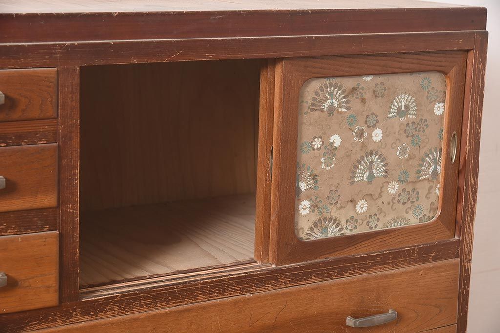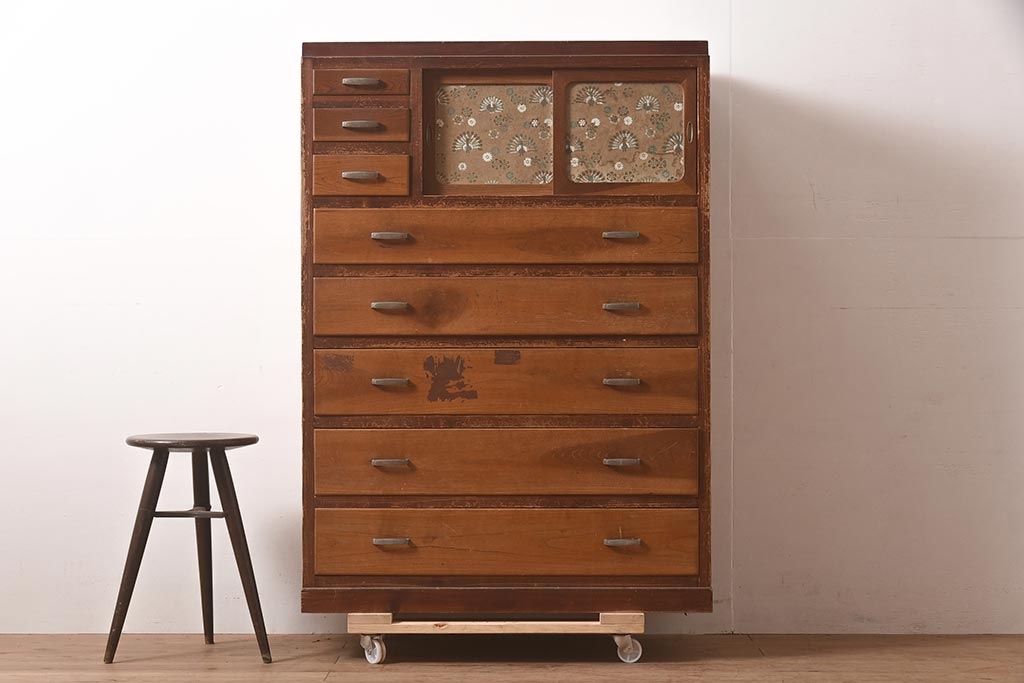 レトロ家具 昭和レトロ 昭和中期 味わいたっぷりの引き戸付きチェスト(衣装タンス、引き出し)(R-044290)