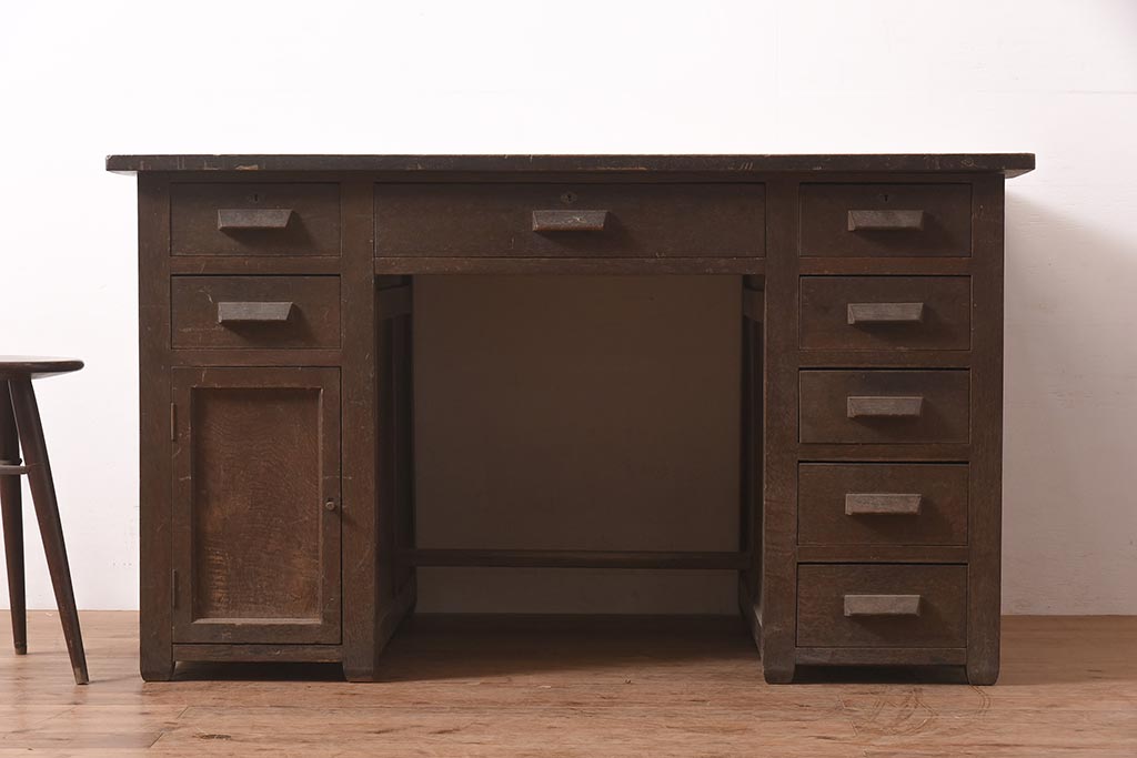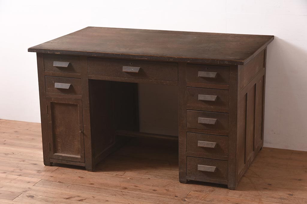 アンティーク家具 大正昭和初期 ナラ材 味わい深い木の質感が魅力の両袖机(デスク、ワークデスク、在宅ワーク、在宅用)(R-044374)