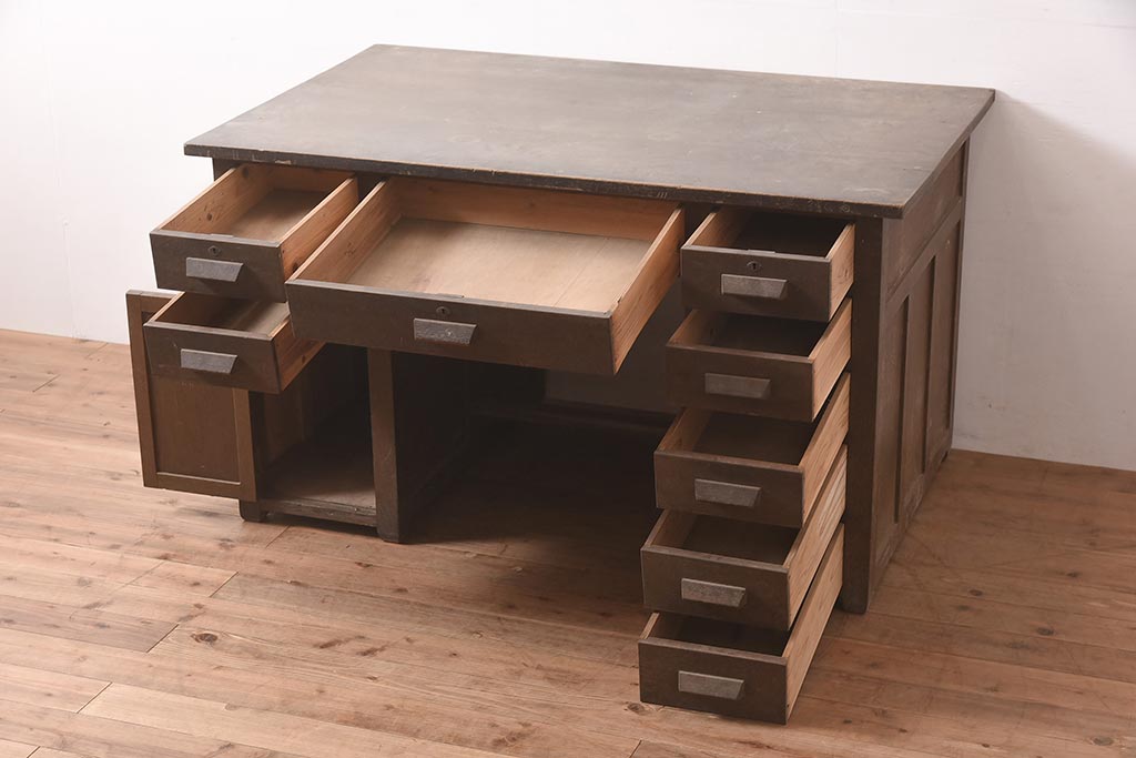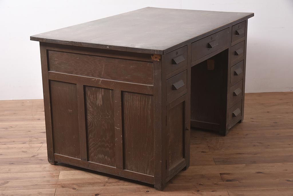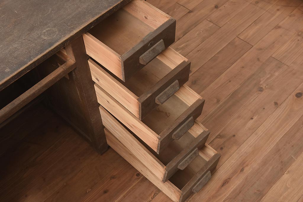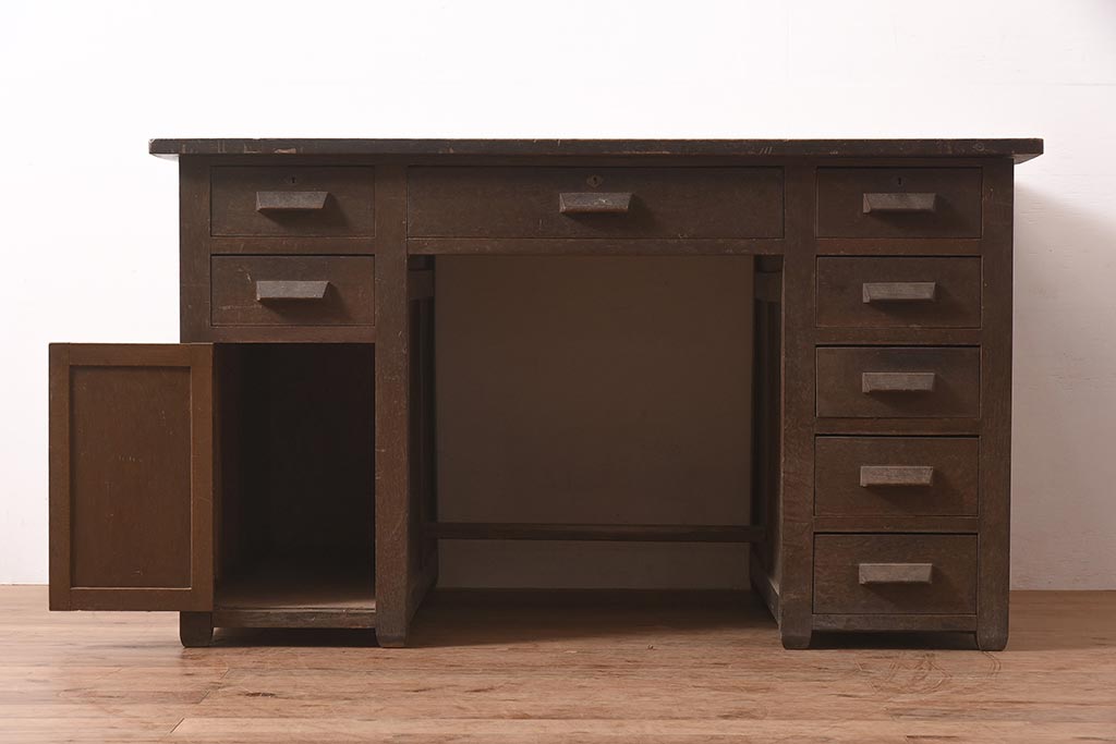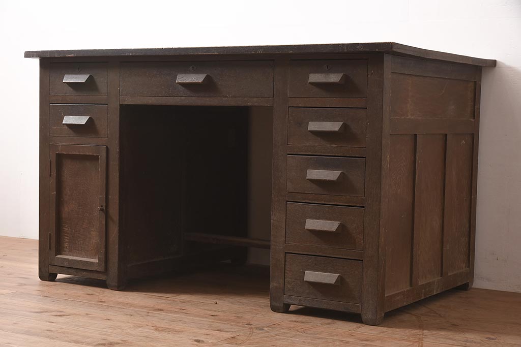 ラフジュ工房> デスク> ワークデスク > アンティーク家具 大正昭和初期 ナラ材 味わい深い木の質感が魅力の両袖机(デスク、ワークデスク、在宅ワーク、在宅用)(R-044374)