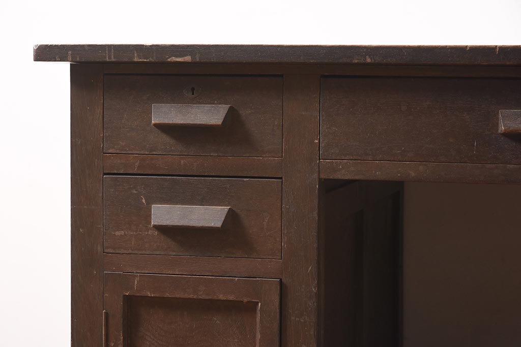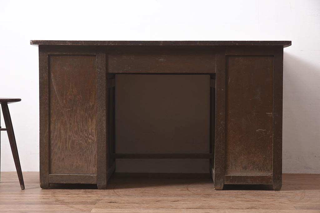 ラフジュ工房> デスク> 片袖机・両袖机 > アンティーク家具 大正昭和初期 ナラ材 味わい深い木の質感が魅力の両袖机(デスク、ワークデスク、在宅ワーク、在宅用)(R-044374)