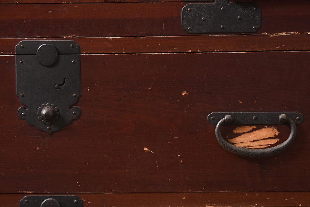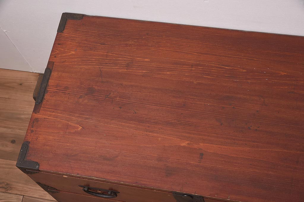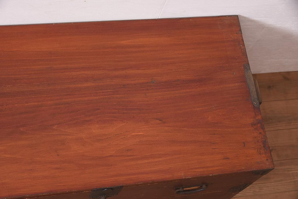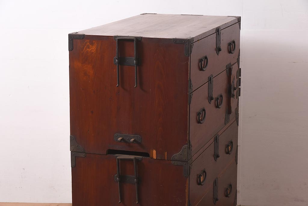 和箪笥> 衣装箪笥 > アンティーク家具 明治期 ヒノキ材 赤みがかった色合いが趣のある重ね箪笥(和箪笥、衣装箪笥、引き出し、チェスト)(R-044352)