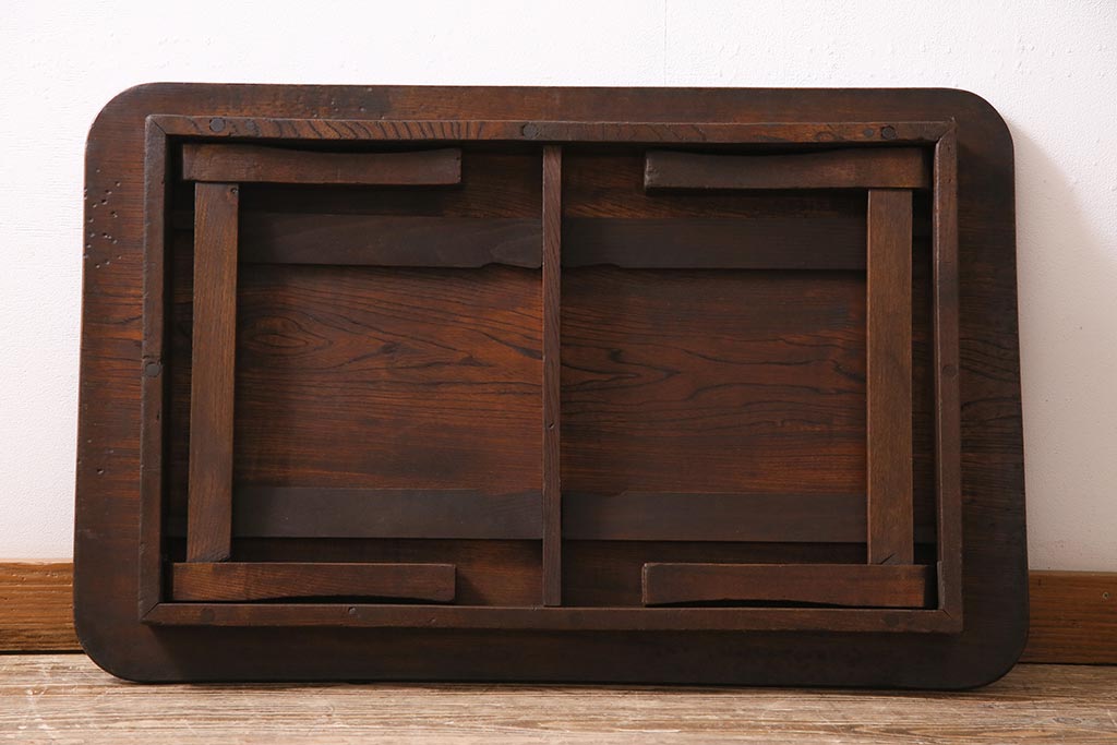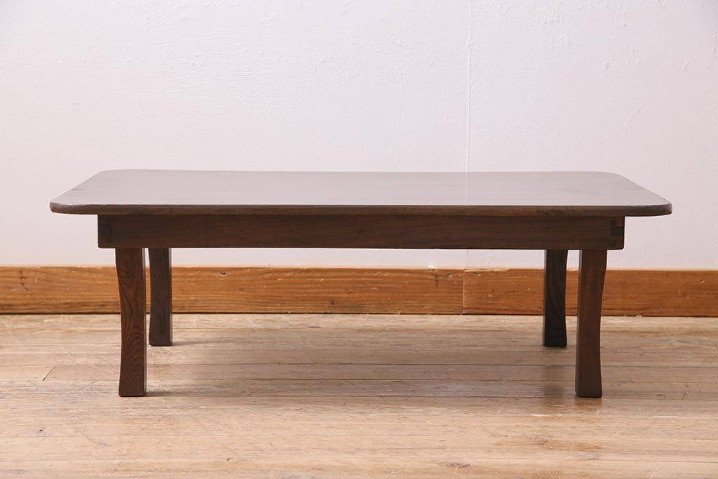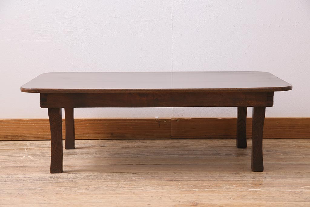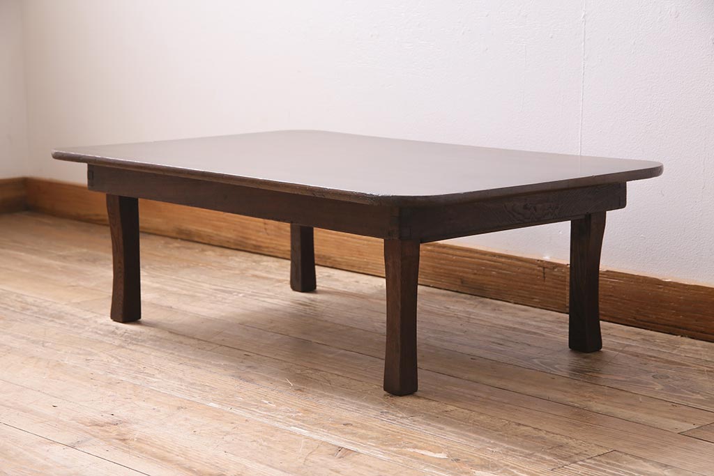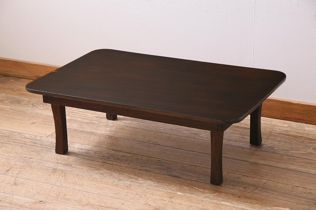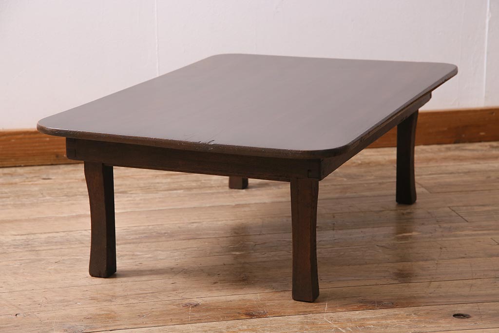 テーブル> 座卓 > アンティーク家具 昭和初期 栓材 濃い色合いの渋さが味わい深い角ちゃぶ台(座卓、ローテーブル、折り畳みテーブル)(R-044385)