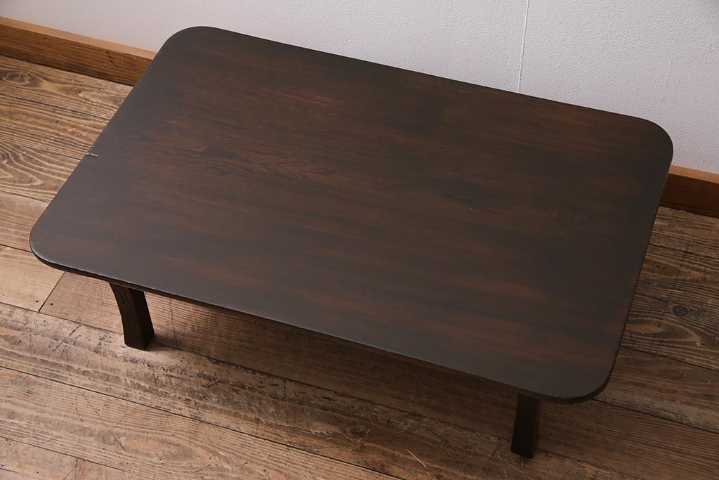 アンティーク家具 昭和初期 栓材 濃い色合いの渋さが味わい深い角ちゃぶ台(座卓、ローテーブル、折り畳みテーブル)(R-044385)です。