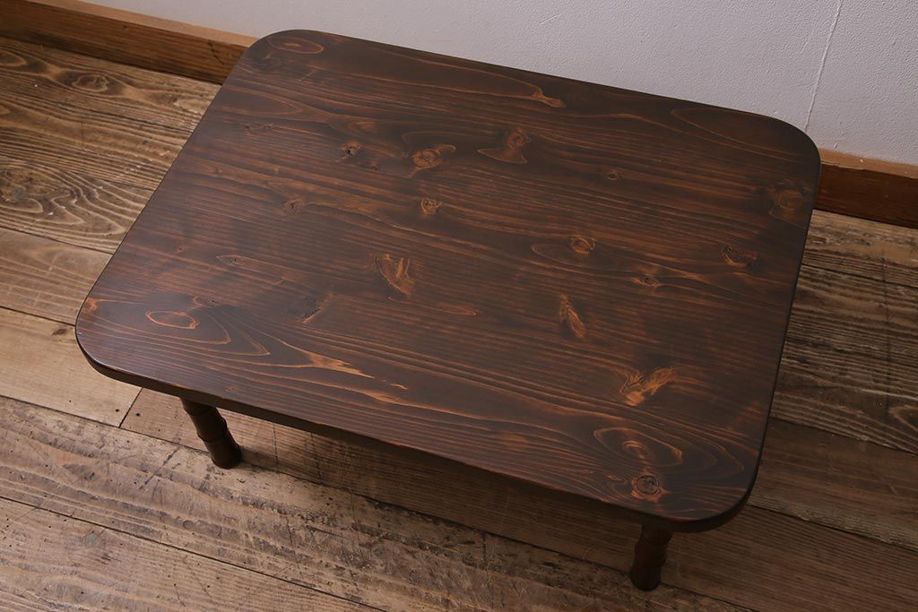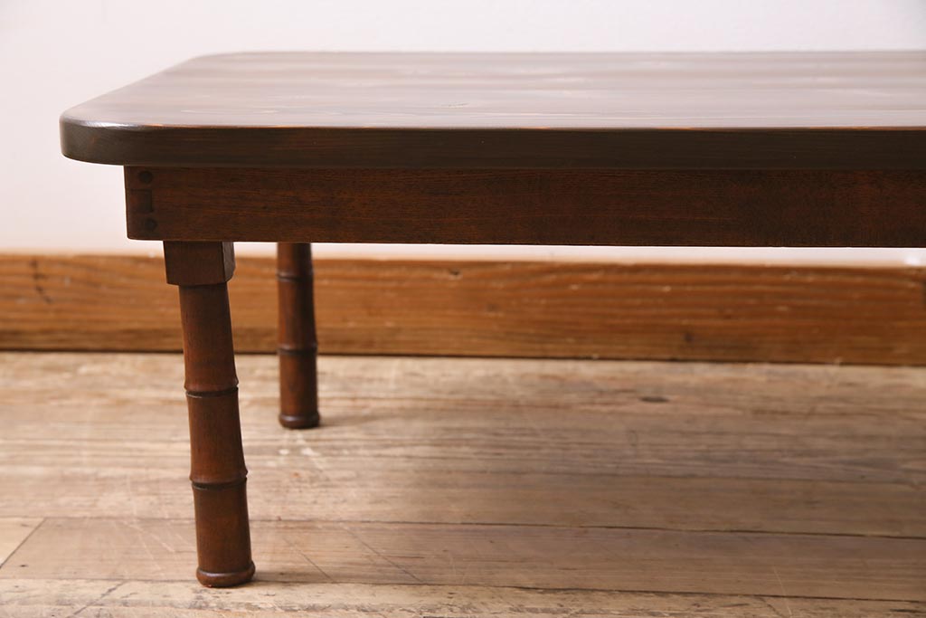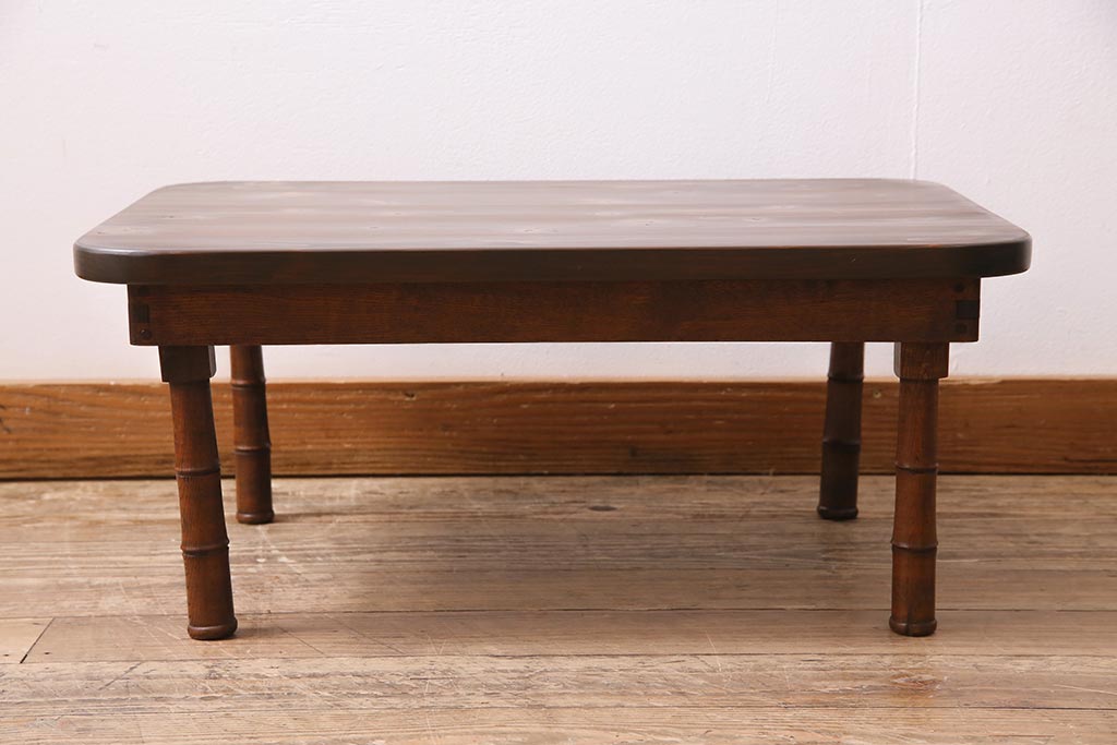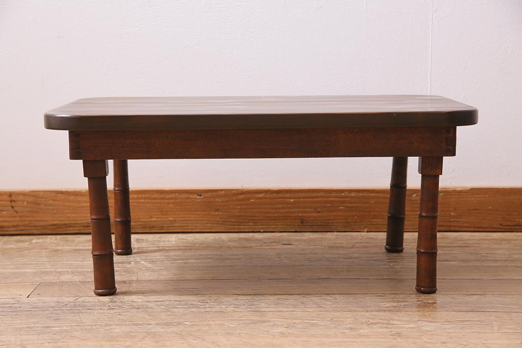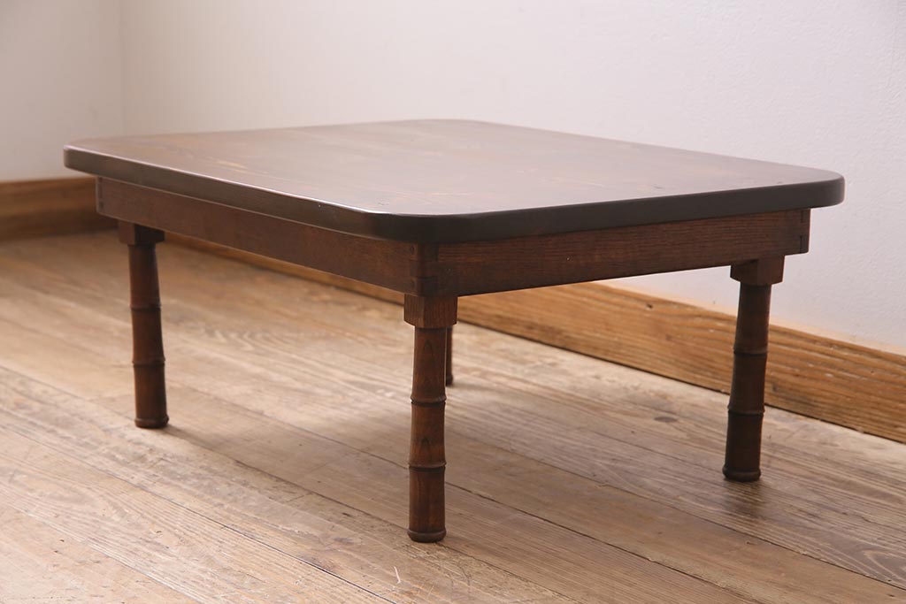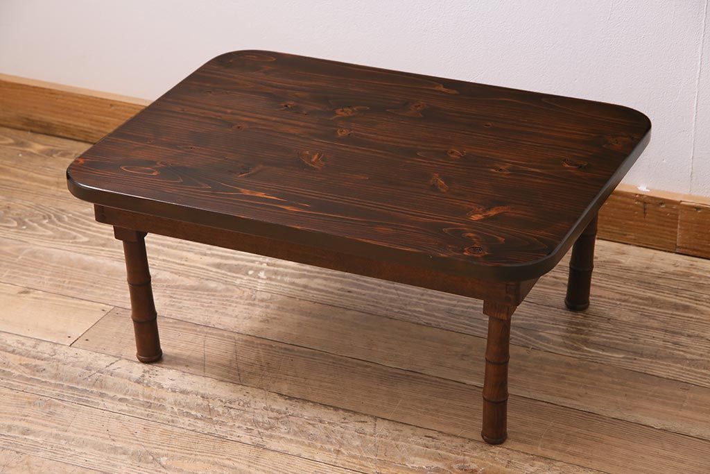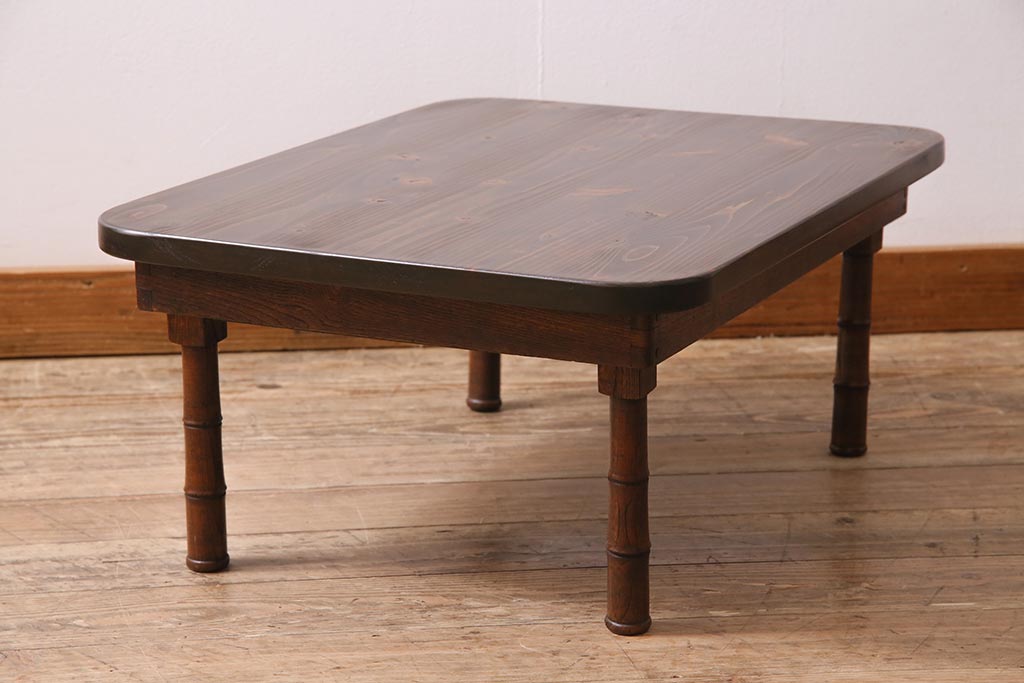 アンティーク家具 大正期 天板ヒノキ材リメイク 竹脚が目を引く角ちゃぶ台(座卓、ローテーブル、折り畳みテーブル)(R-044377)です。