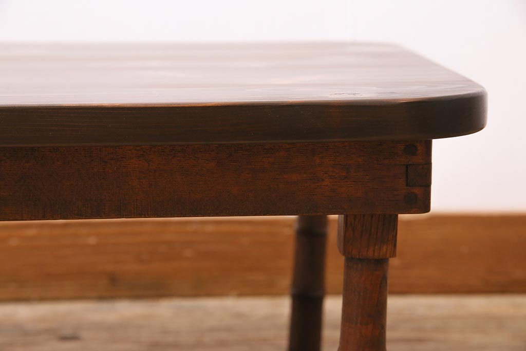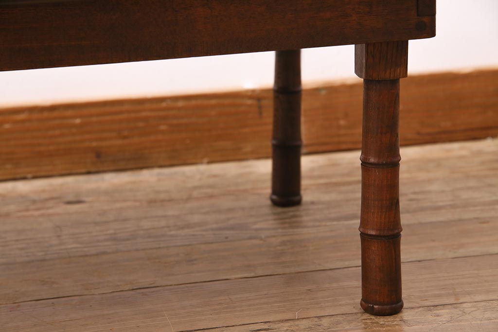 テーブル> ちゃぶ台 > アンティーク家具 大正期 天板ヒノキ材リメイク 竹脚が目を引く角ちゃぶ台(座卓、ローテーブル、折り畳みテーブル)(R-044377)