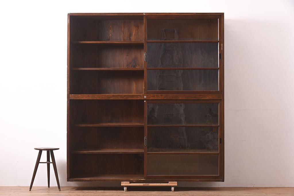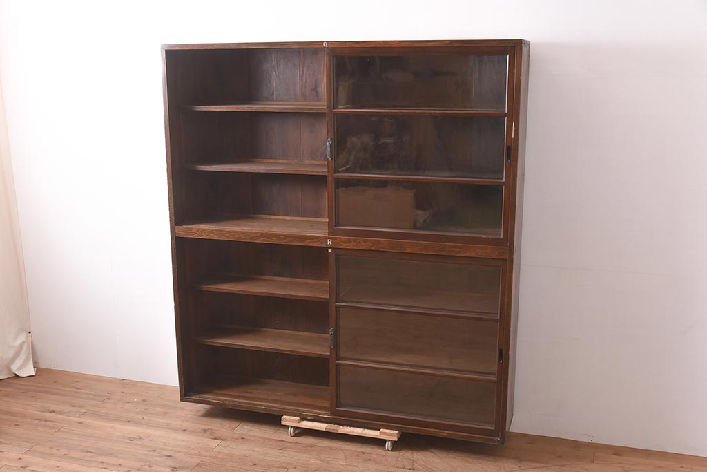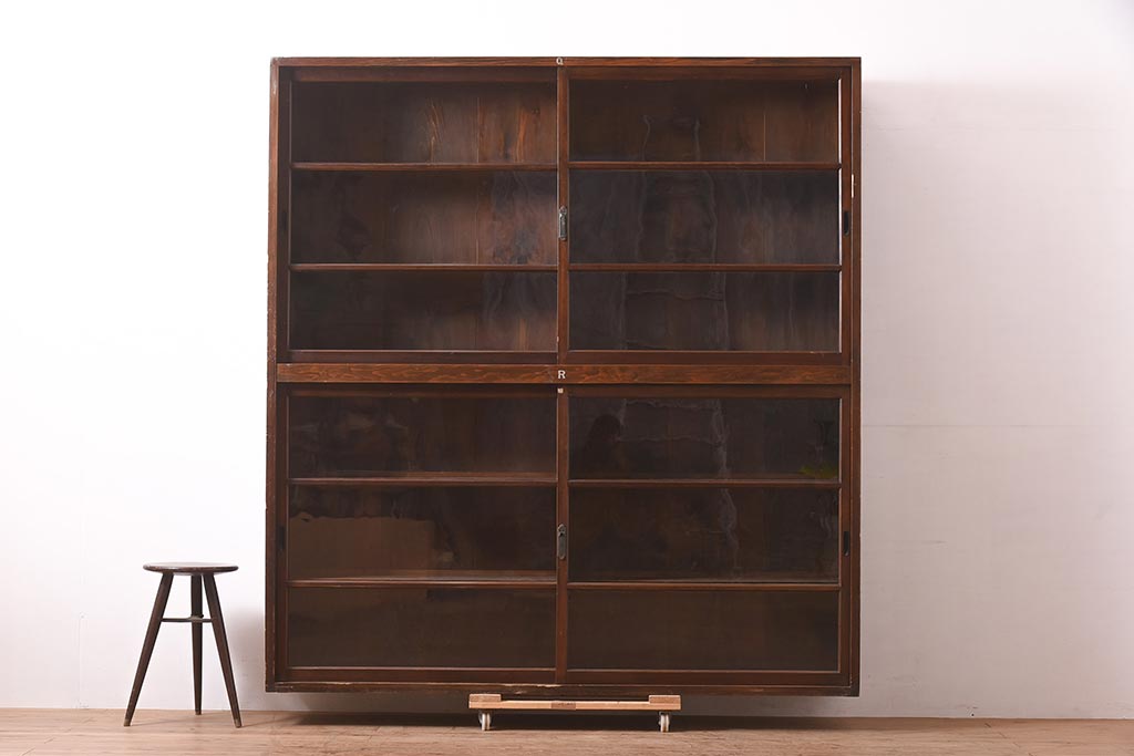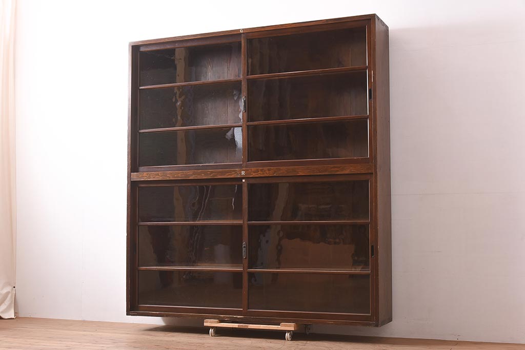 アンティーク家具 昭和初期 一本物 ゆらゆらガラスがレトロな雰囲気の重ねガラス戸棚(キャビネット、収納棚、飾り棚)(R-044356)です。