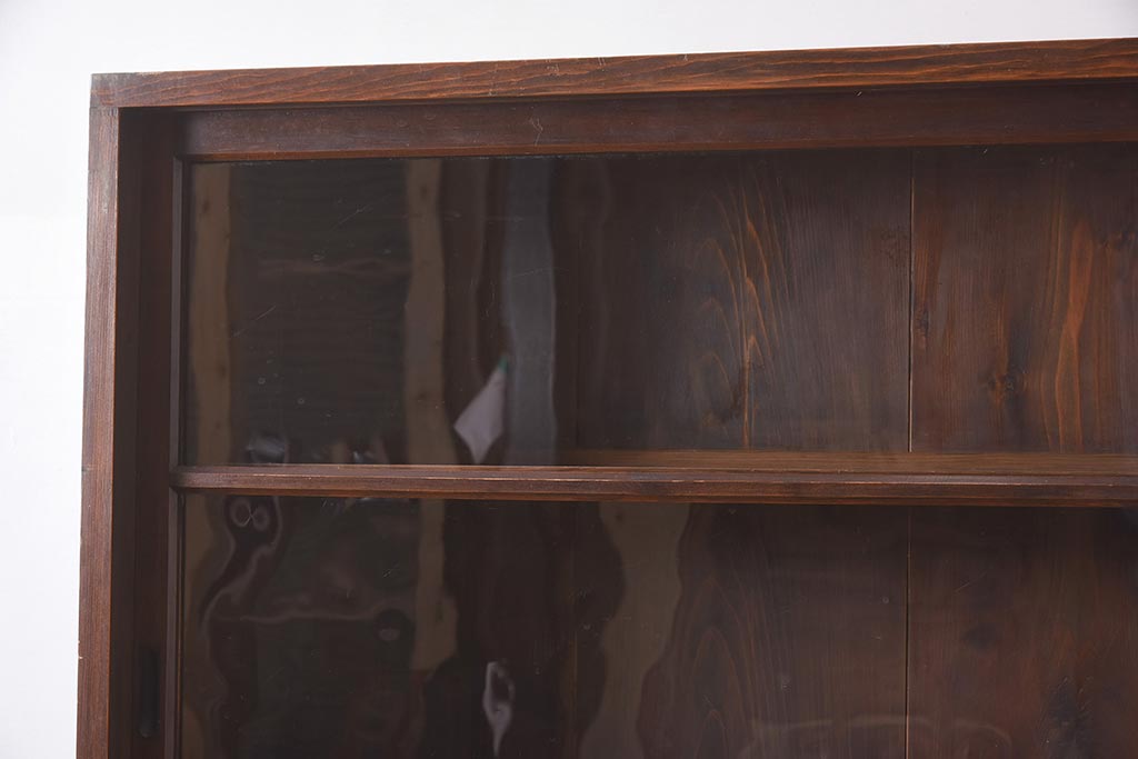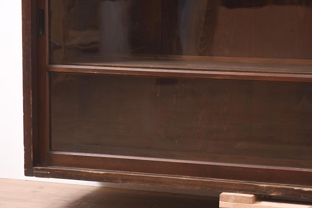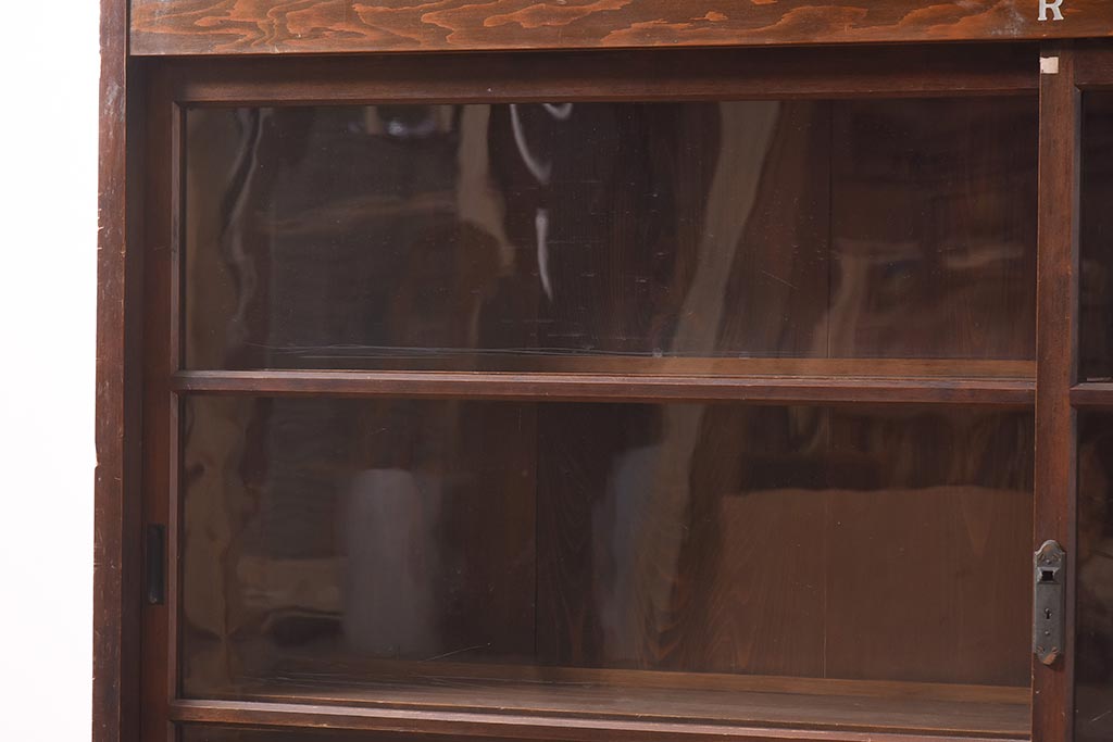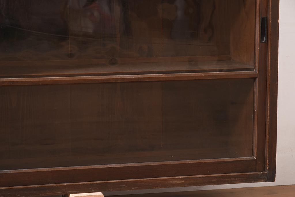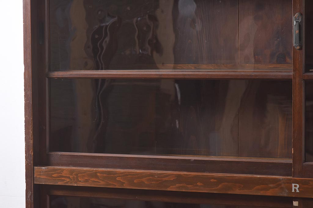 アンティーク家具 昭和初期 一本物 ゆらゆらガラスがレトロな雰囲気の重ねガラス戸棚(キャビネット、収納棚、飾り棚)(R-044356)