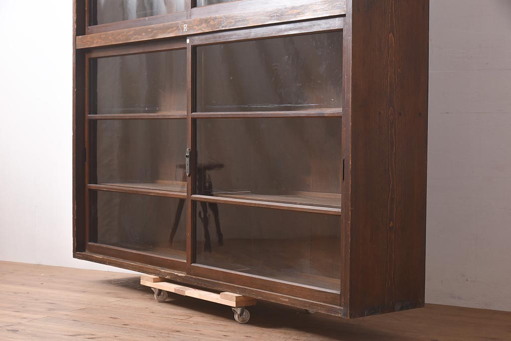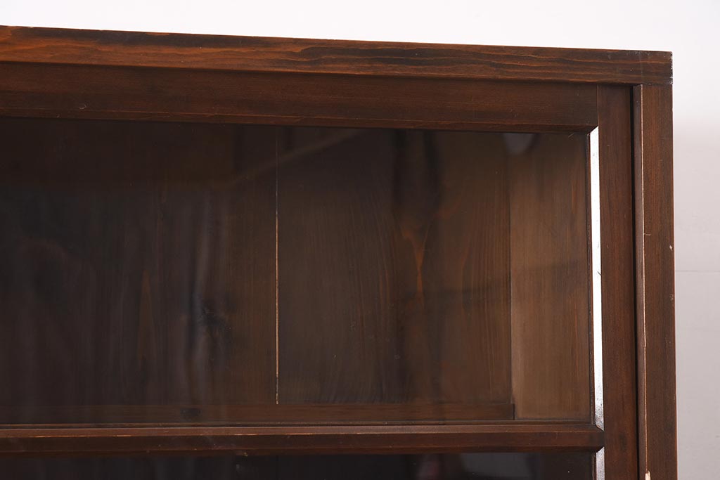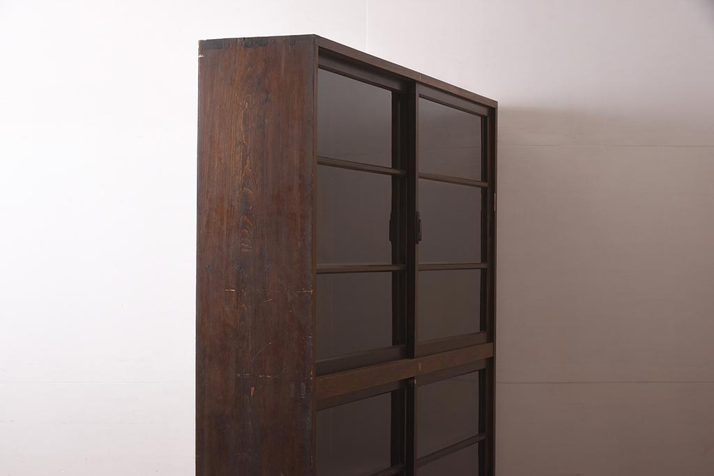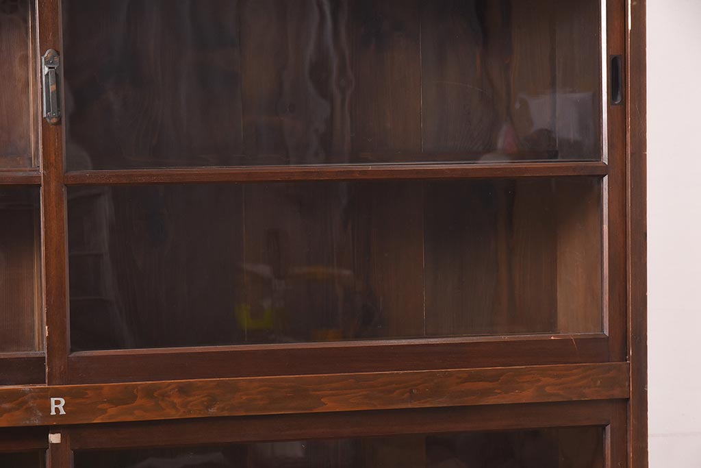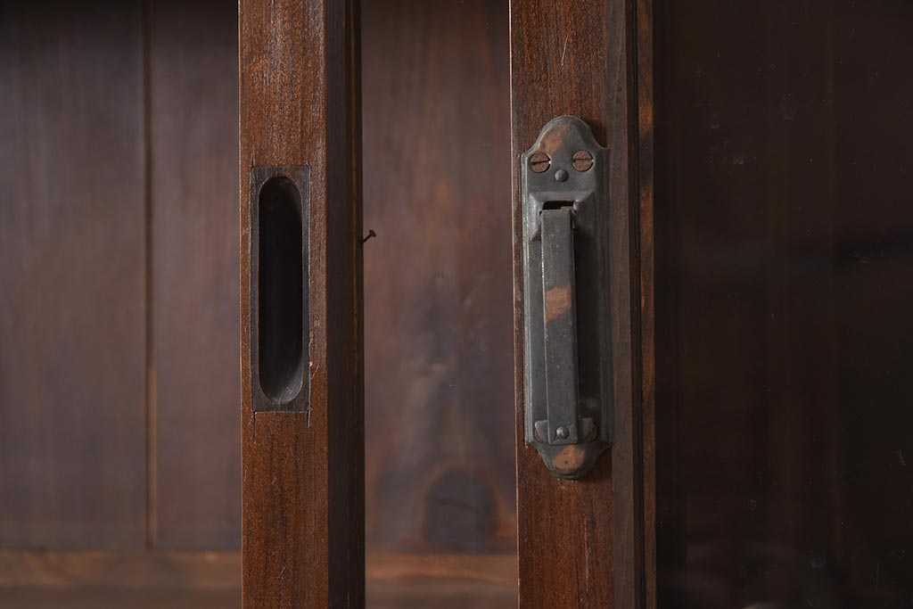 アンティーク家具 昭和初期 一本物 ゆらゆらガラスがレトロな雰囲気の重ねガラス戸棚(キャビネット、収納棚、飾り棚)(R-044356)