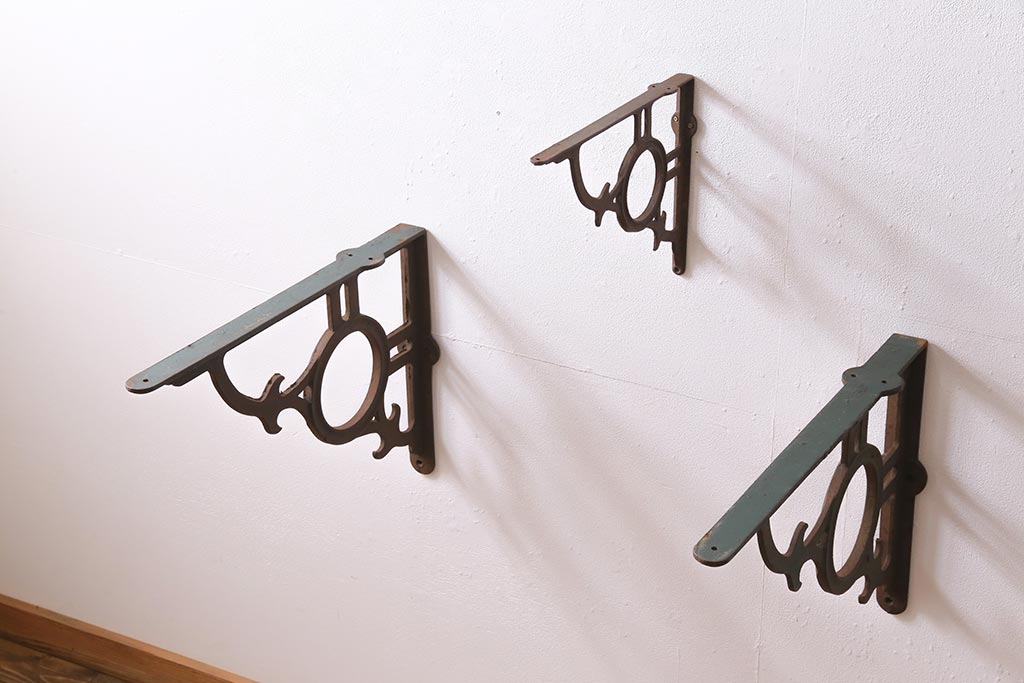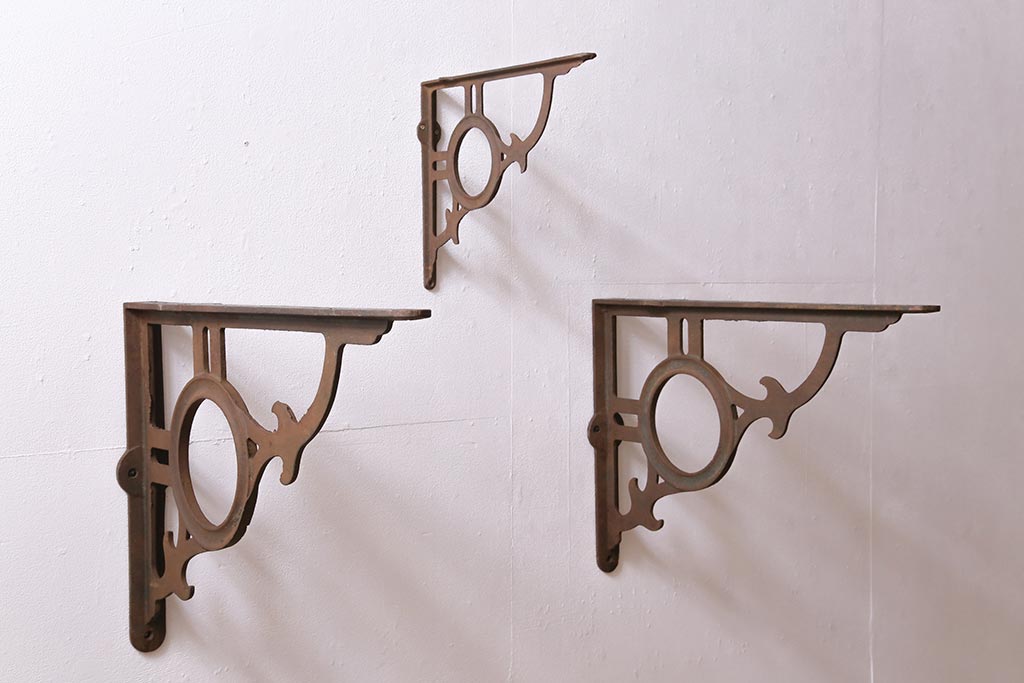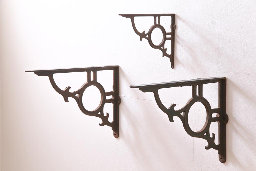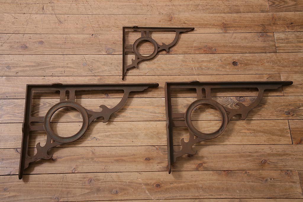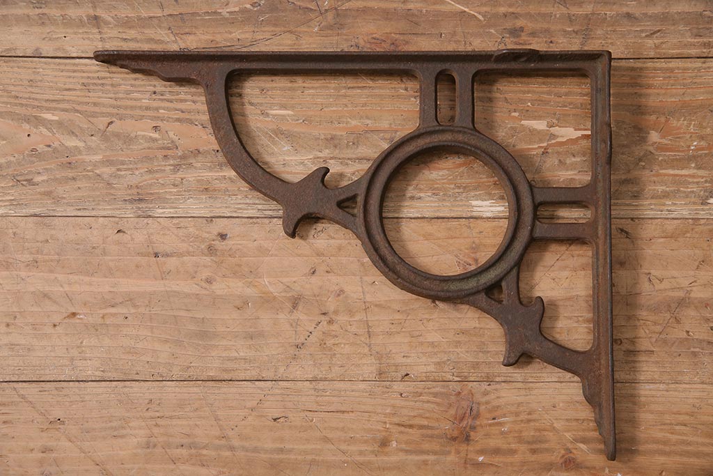アンティーク雑貨 昭和初期 古い鉄製のおしゃれなアンティークステー(アイアンブラケット、棚受け、L金具)(R-044380)