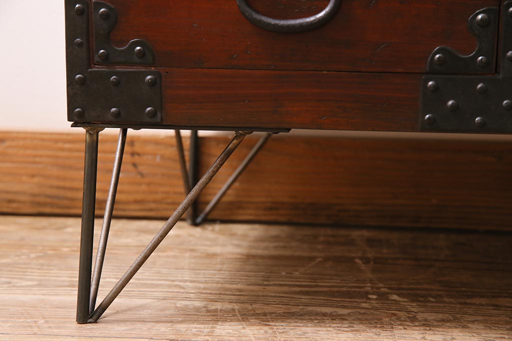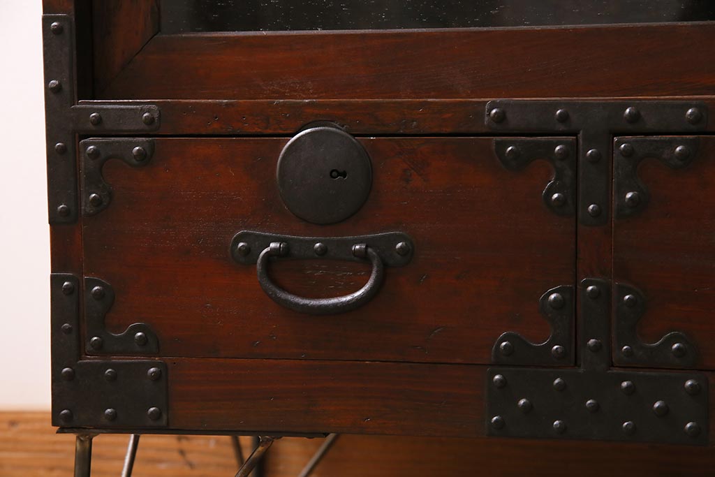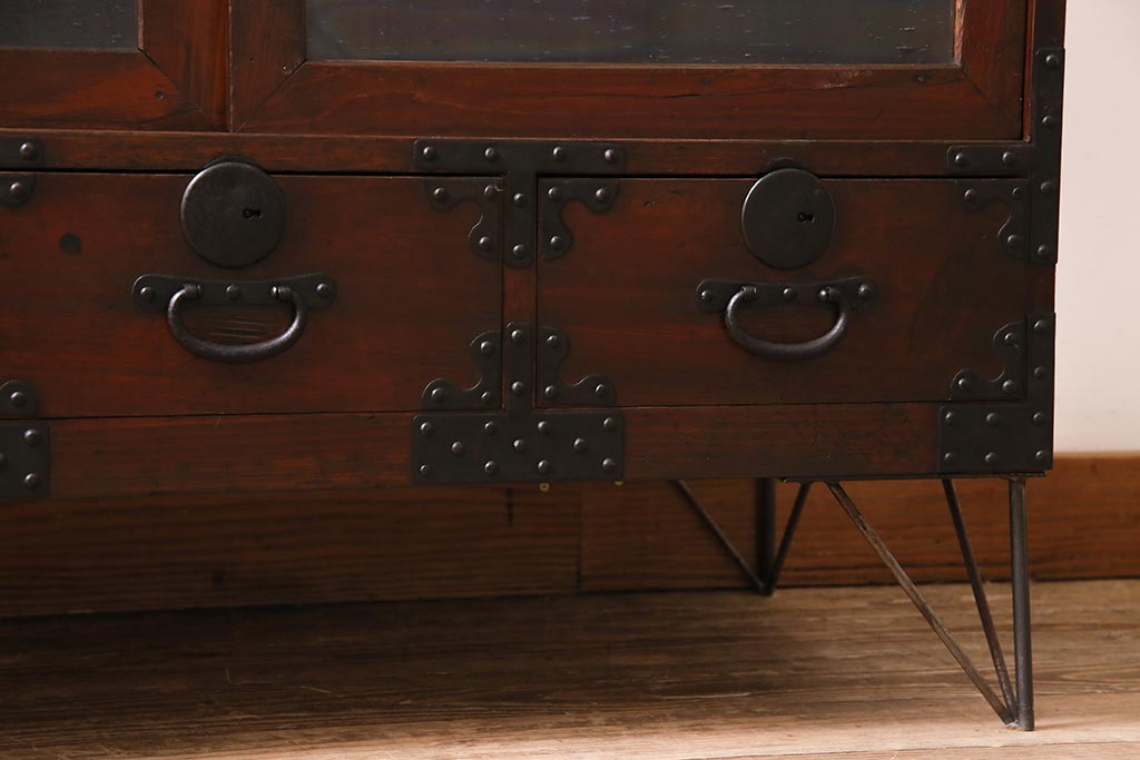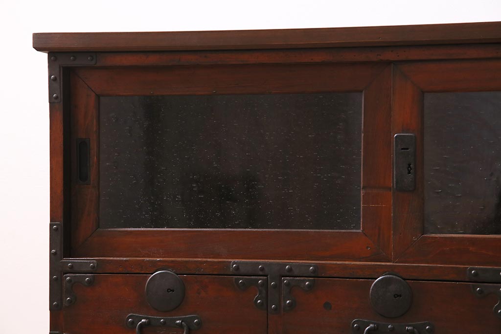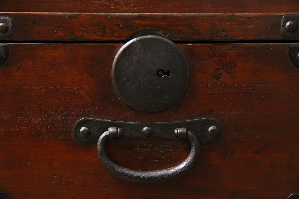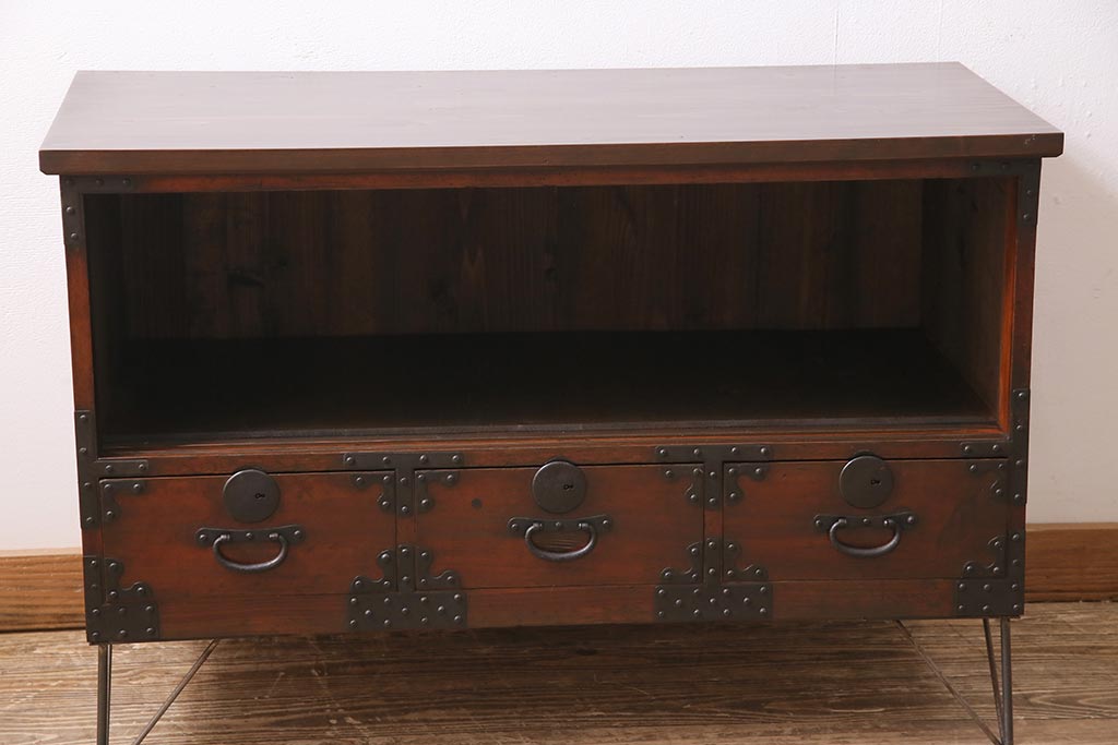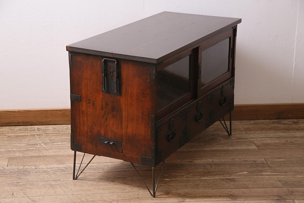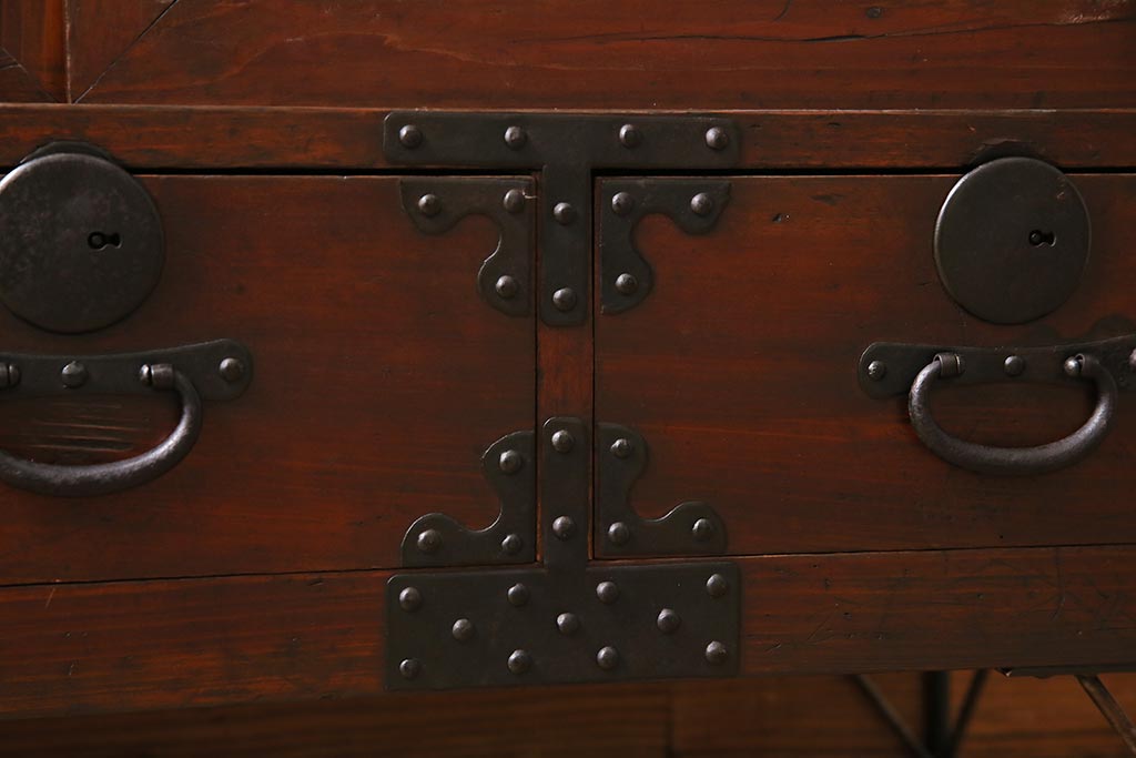 和箪笥 > アンティーク家具 明治大正期 前面ケヤキ材 鋲金具が存在感のあるローボード(テレビボード、リビングボード、テレビ台)(R-044382)