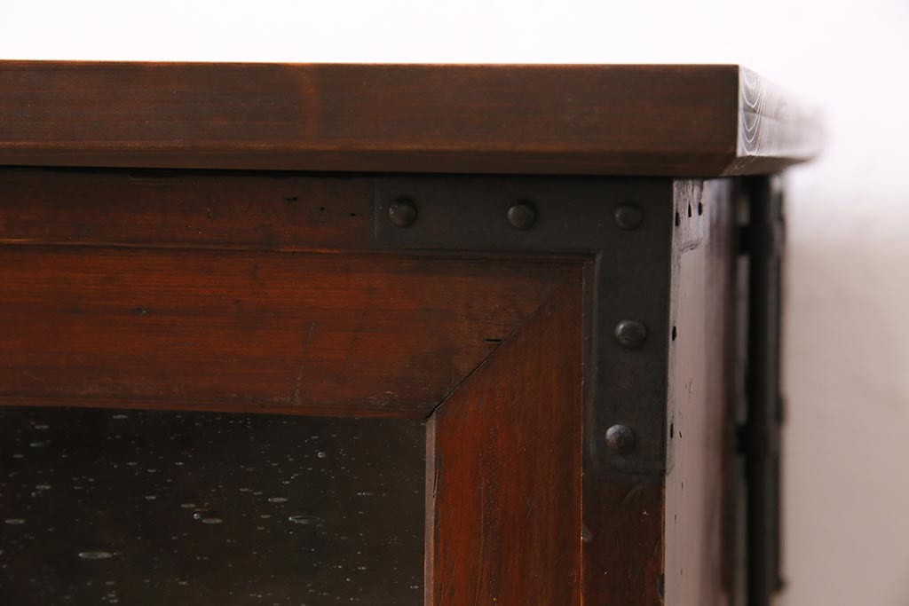 キャビネット・戸棚> テレビ台・ローボード > アンティーク家具 明治大正期 前面ケヤキ材 鋲金具が存在感のあるローボード(テレビボード、リビングボード、テレビ台)(R-044382)