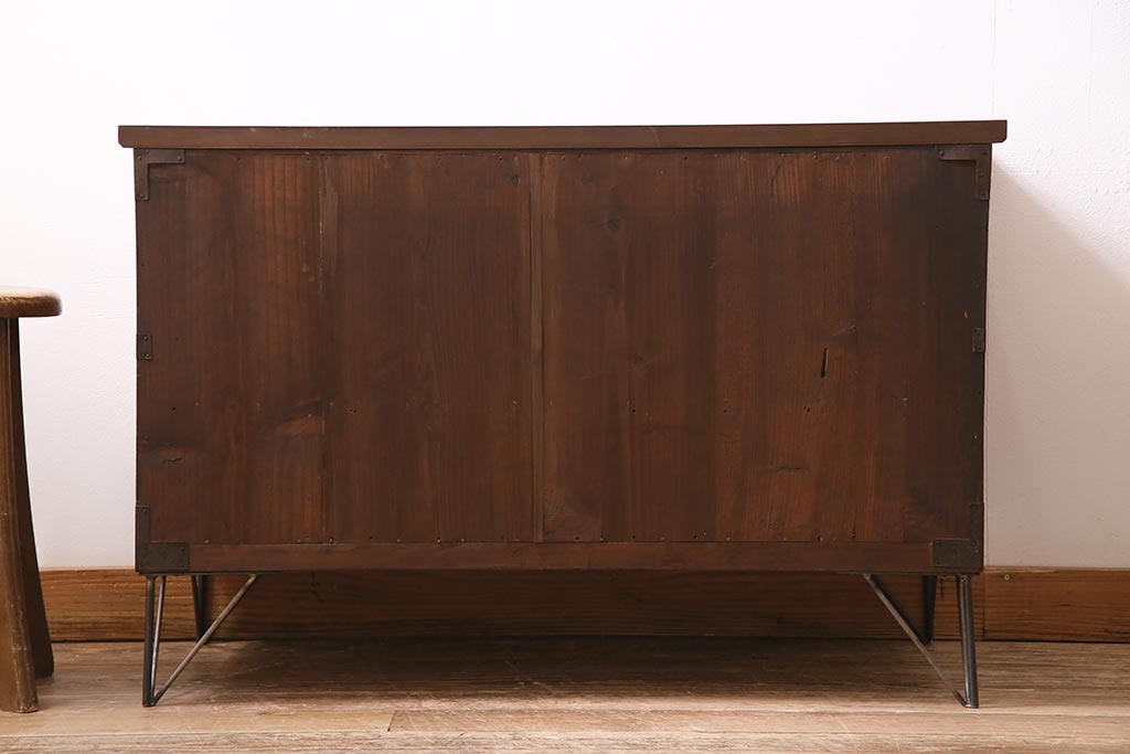 チェスト・引き出し> ローチェスト > アンティーク家具 明治大正期 前面ケヤキ材 鋲金具が存在感のあるローボード(テレビボード、リビングボード、テレビ台)(R-044382)