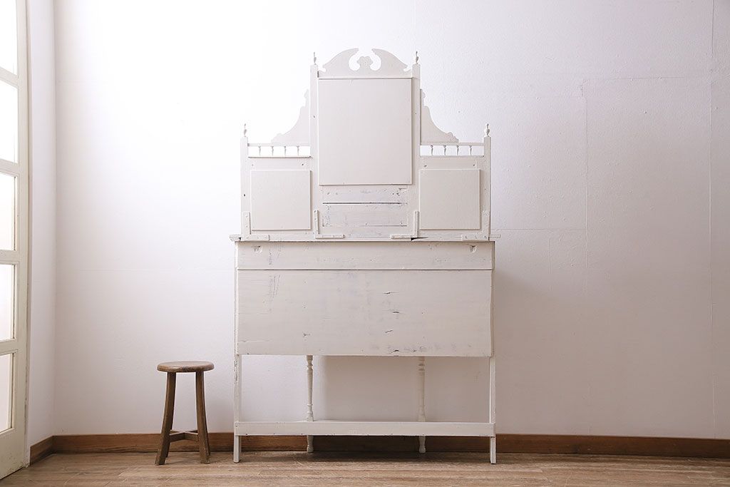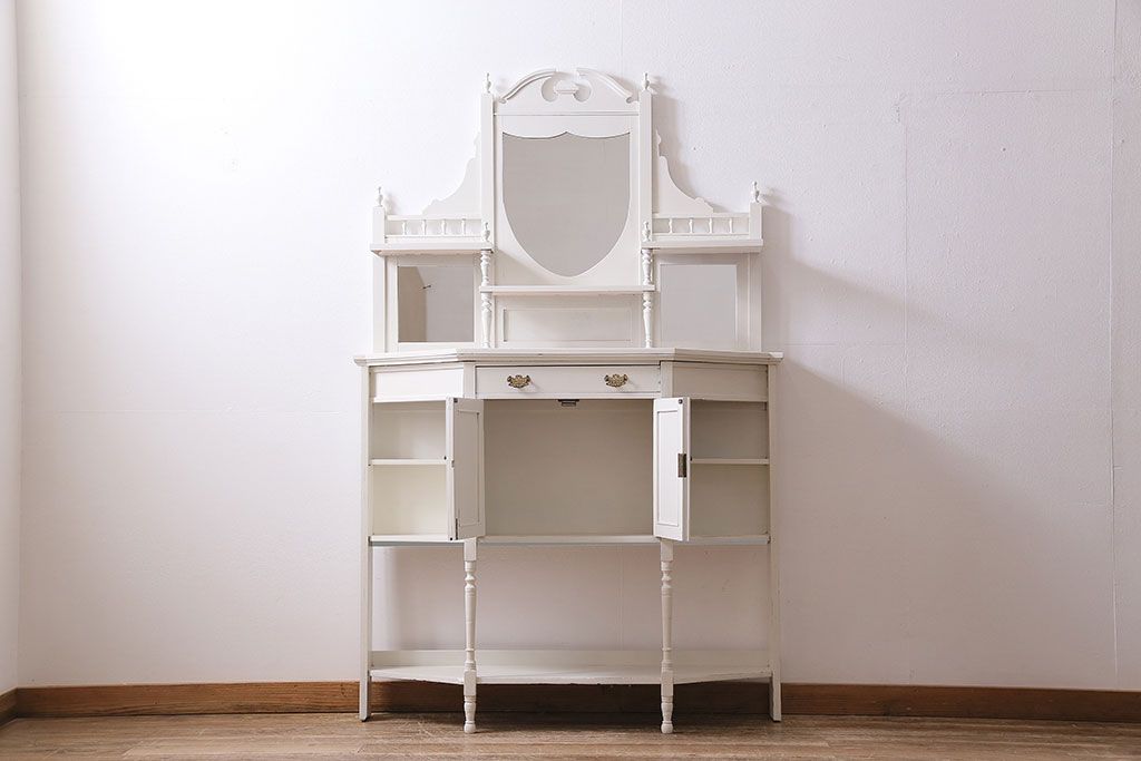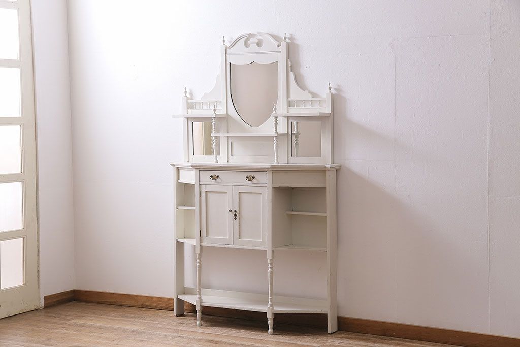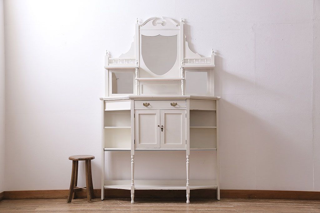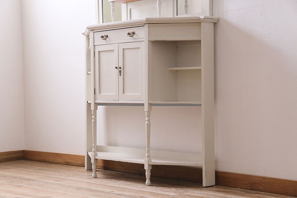 アンティーク家具 鏡付き フランスアンティークのペイントキャビネット(ドレッサー、パーラーキャビネット)(R-044012)です。