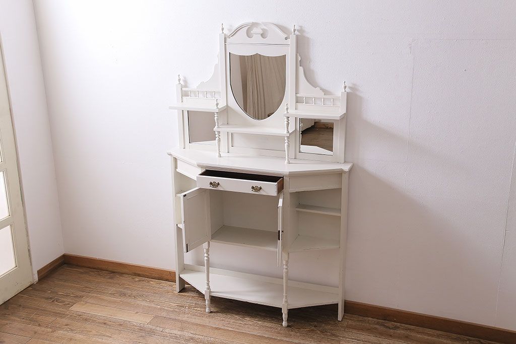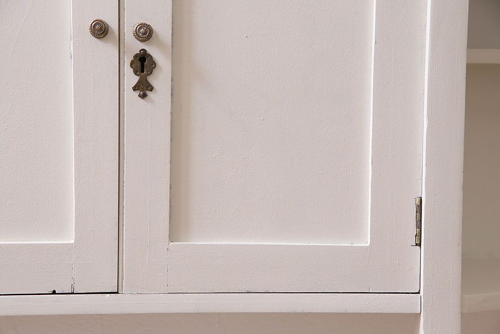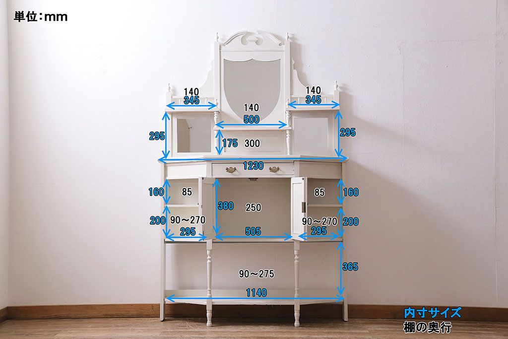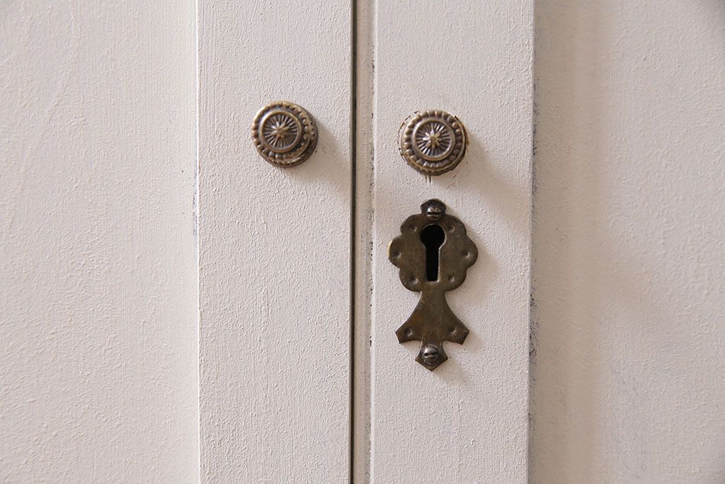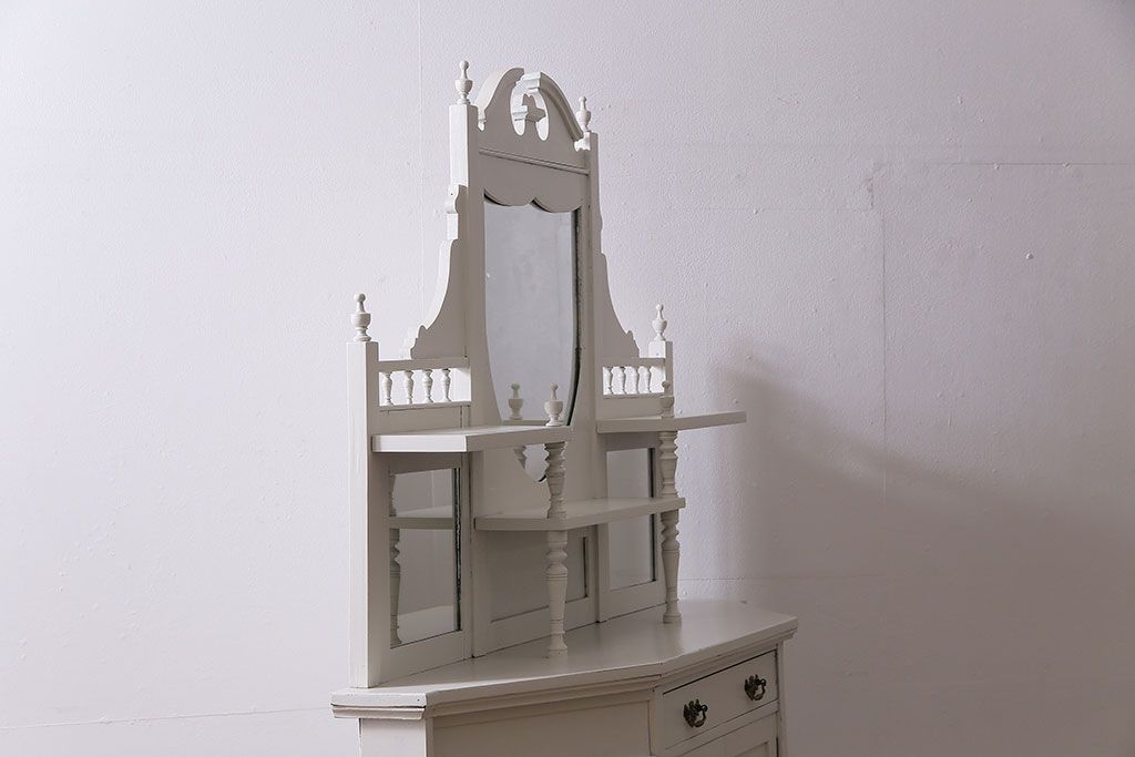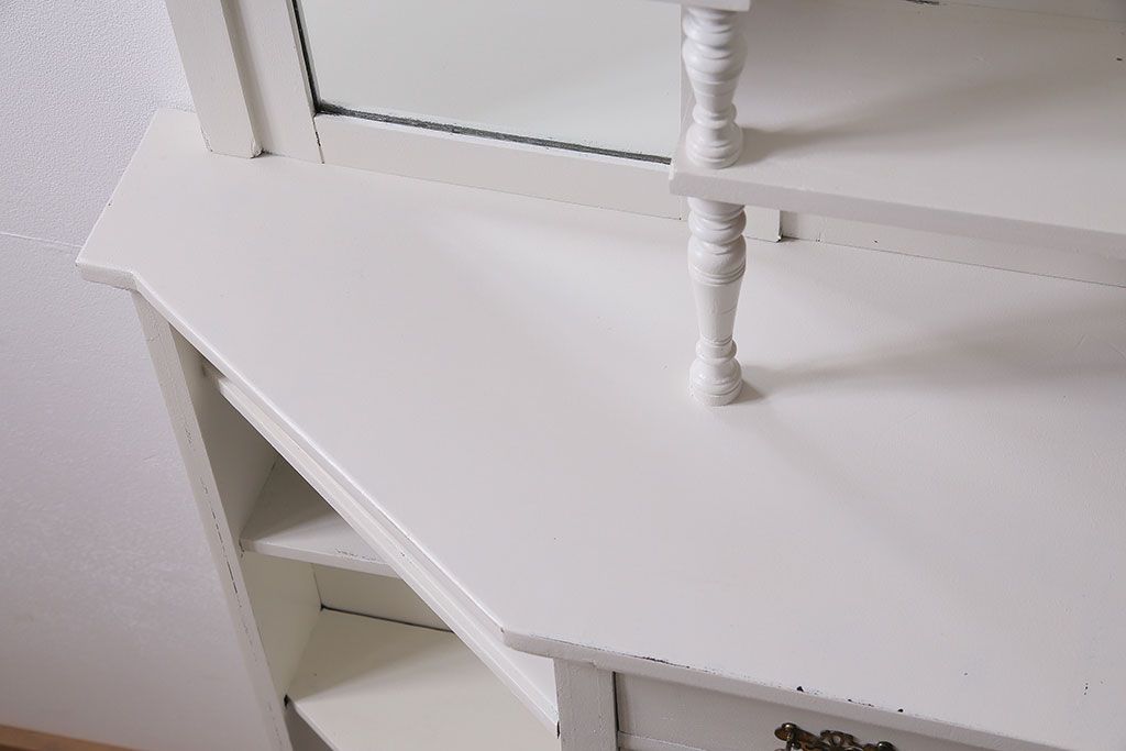 アンティーク家具 鏡付き フランスアンティークのペイントキャビネット(ドレッサー、パーラーキャビネット)(R-044012)です。