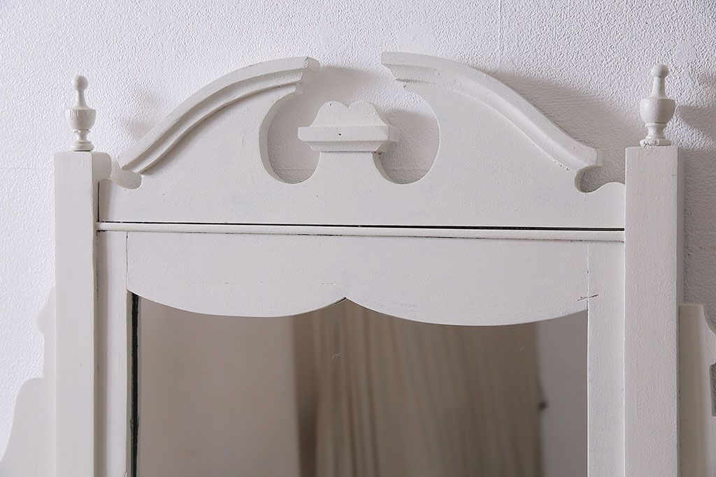 アンティーク家具 鏡付き フランスアンティークのペイントキャビネット(ドレッサー、パーラーキャビネット)(R-044012)