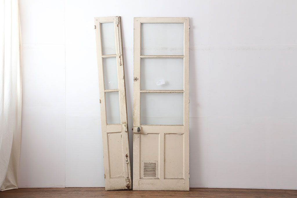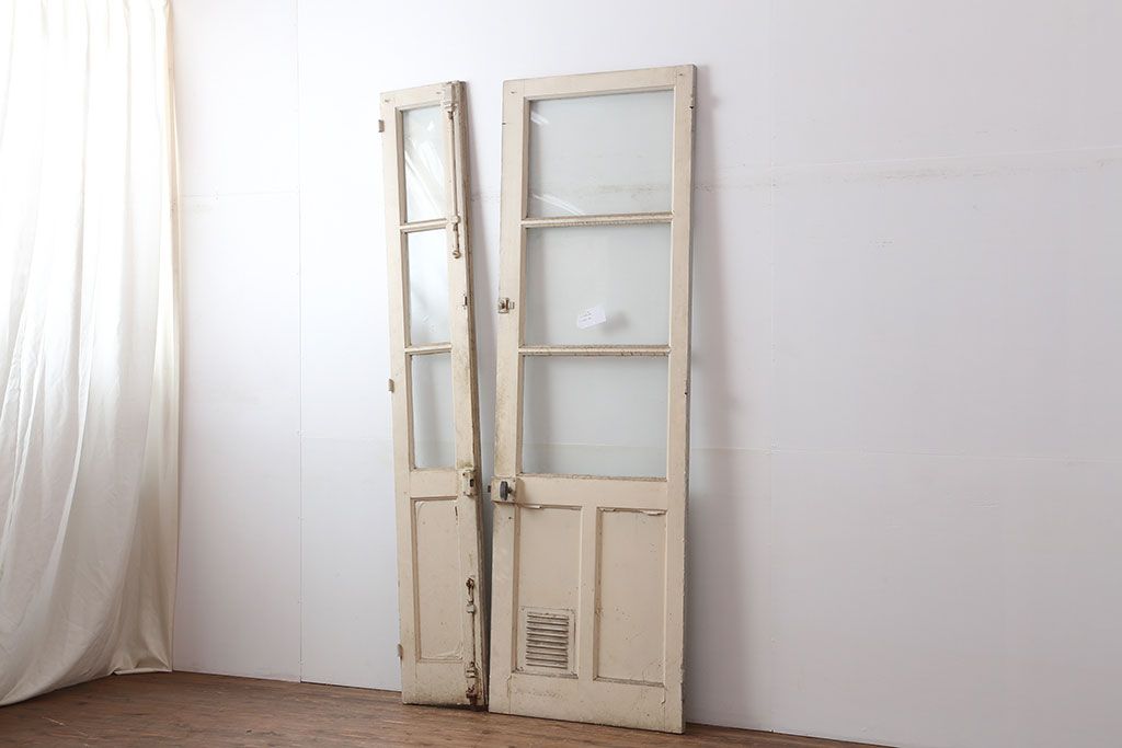 アンティーク建具 フランスアンティーク 両開き シャビーシックなお部屋づくりにおすすめな親子ドア(扉、ガラスドア)(R-037024)です。