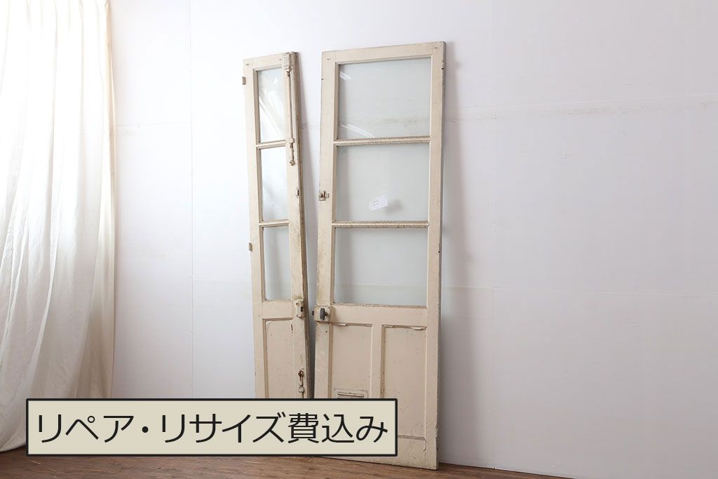 アンティーク建具 フランスアンティーク 両開き シャビーシックなお部屋づくりにおすすめな親子ドア(扉、ガラスドア)(R-037024)
