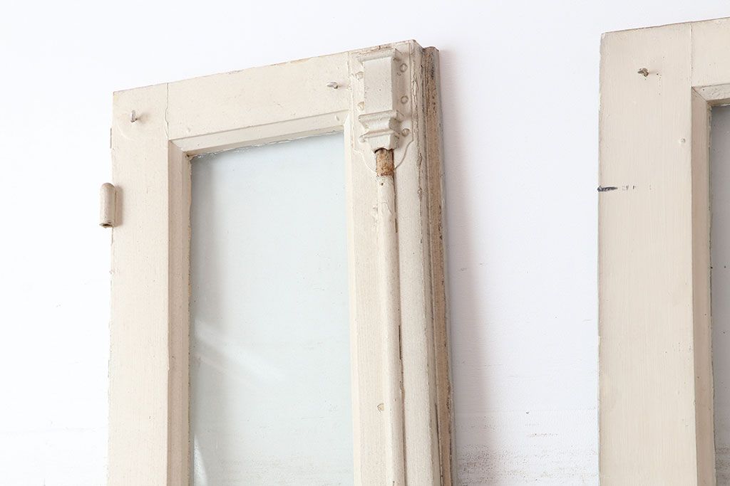 ドア・建具> ガラス戸 > アンティーク建具 フランスアンティーク 両開き シャビーシックなお部屋づくりにおすすめな親子ドア(扉、ガラスドア)(R-037024)
