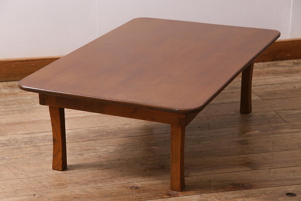 テーブル> ちゃぶ台 > アンティーク家具 昭和中期 栓材 味わいが魅力のレトロな角ちゃぶ台(折りたたみテーブル、座卓、ローテーブル)(R-044506)