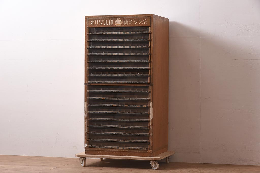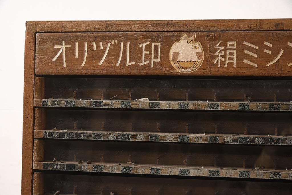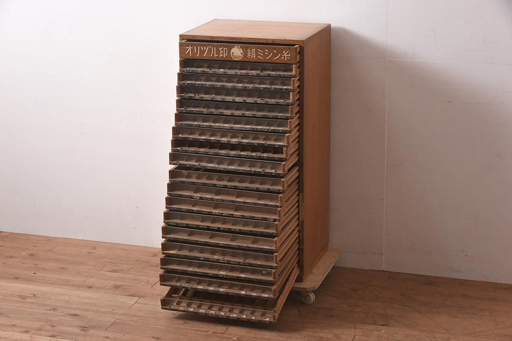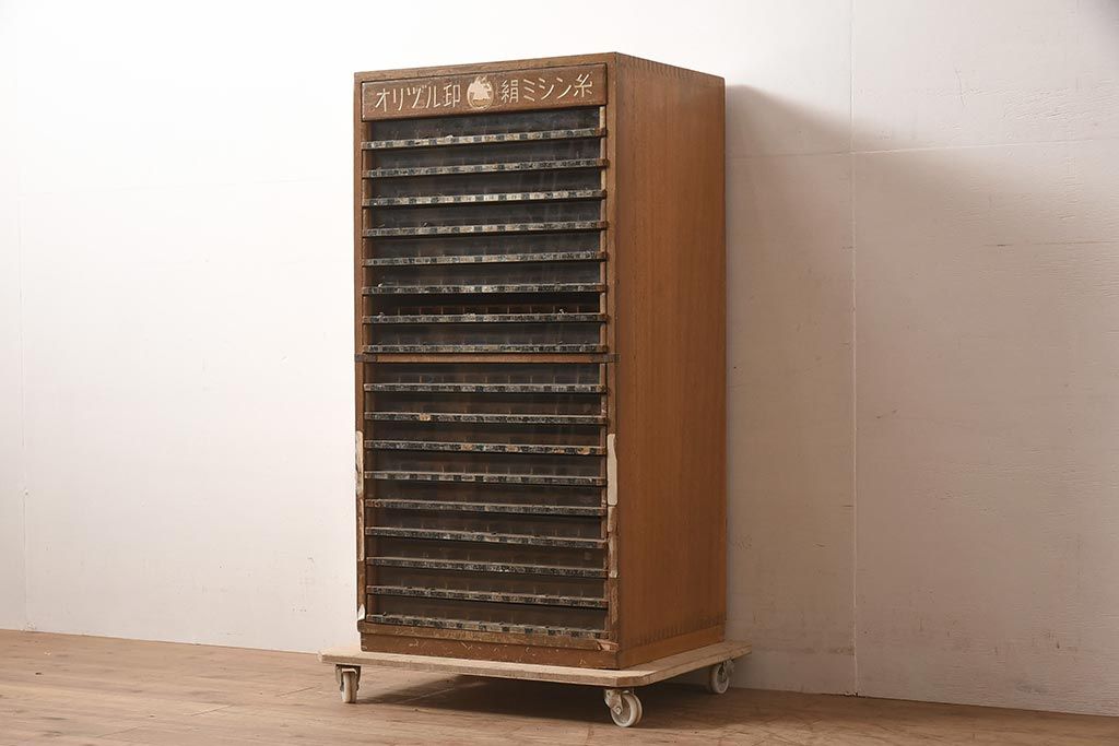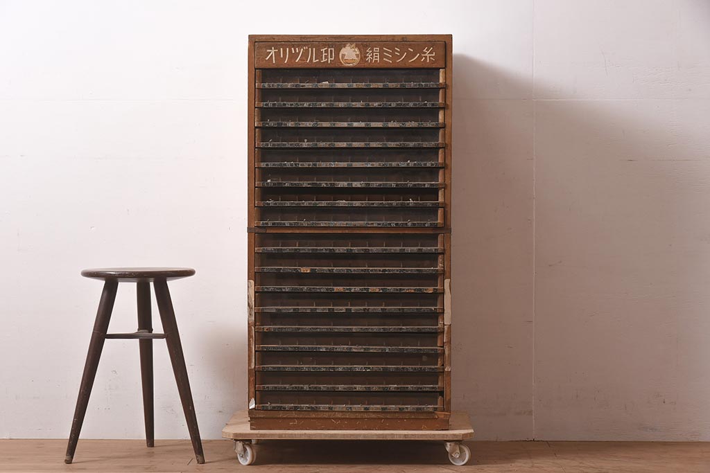 レトロ家具 昭和中期 オリヅル印 昭和レトロな佇まいが魅力のミシン糸ケース(引き出し、収納棚)(R-044372)です。