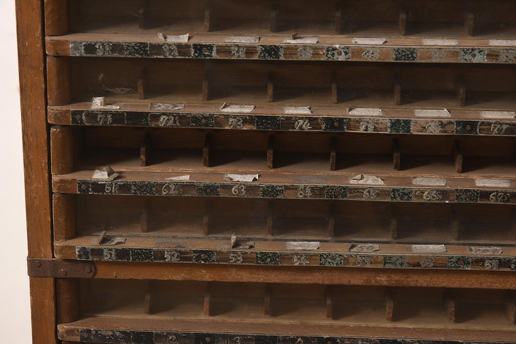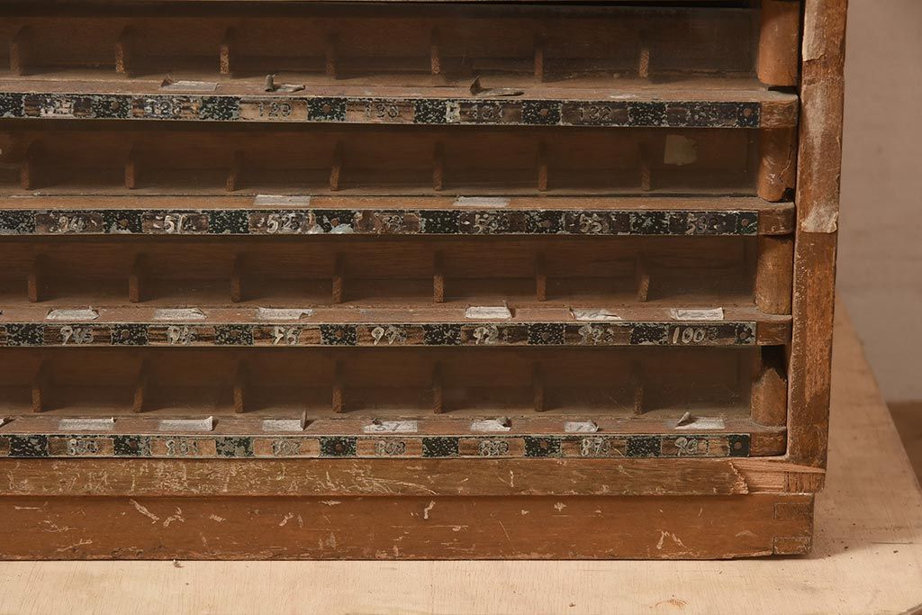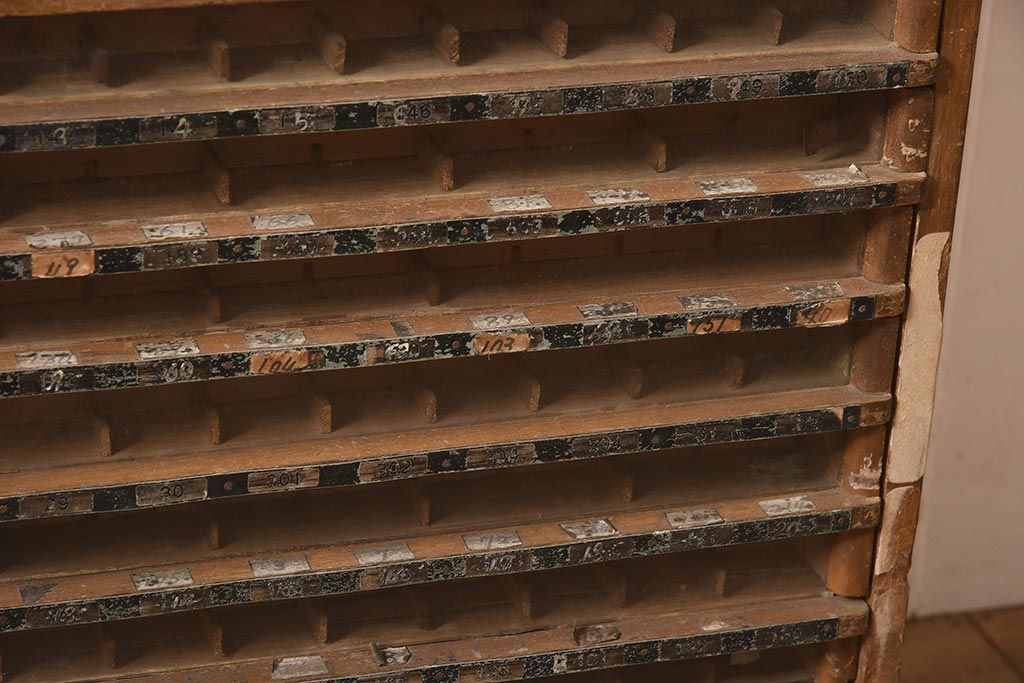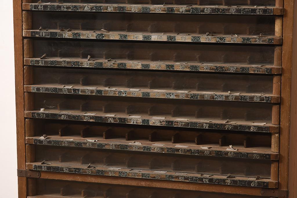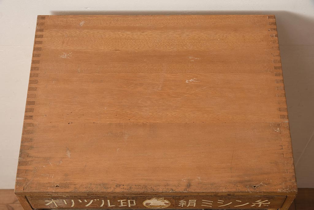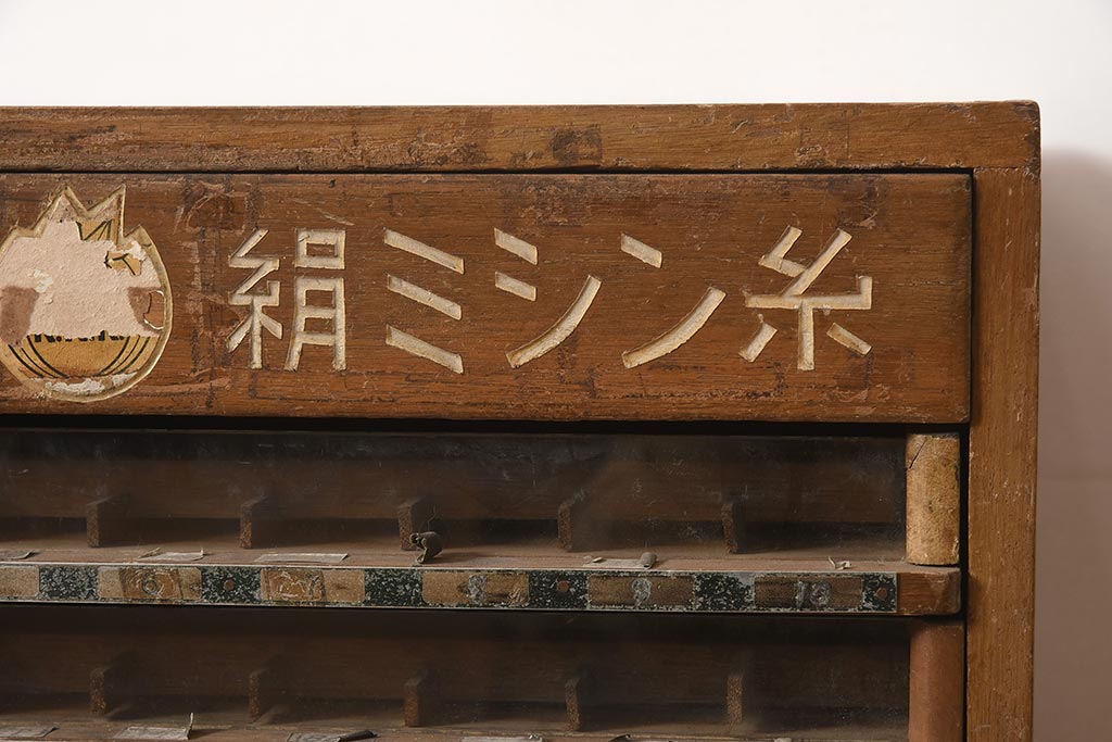 レトロ家具 昭和中期 オリヅル印 昭和レトロな佇まいが魅力のミシン糸ケース(引き出し、収納棚)(R-044372)です。