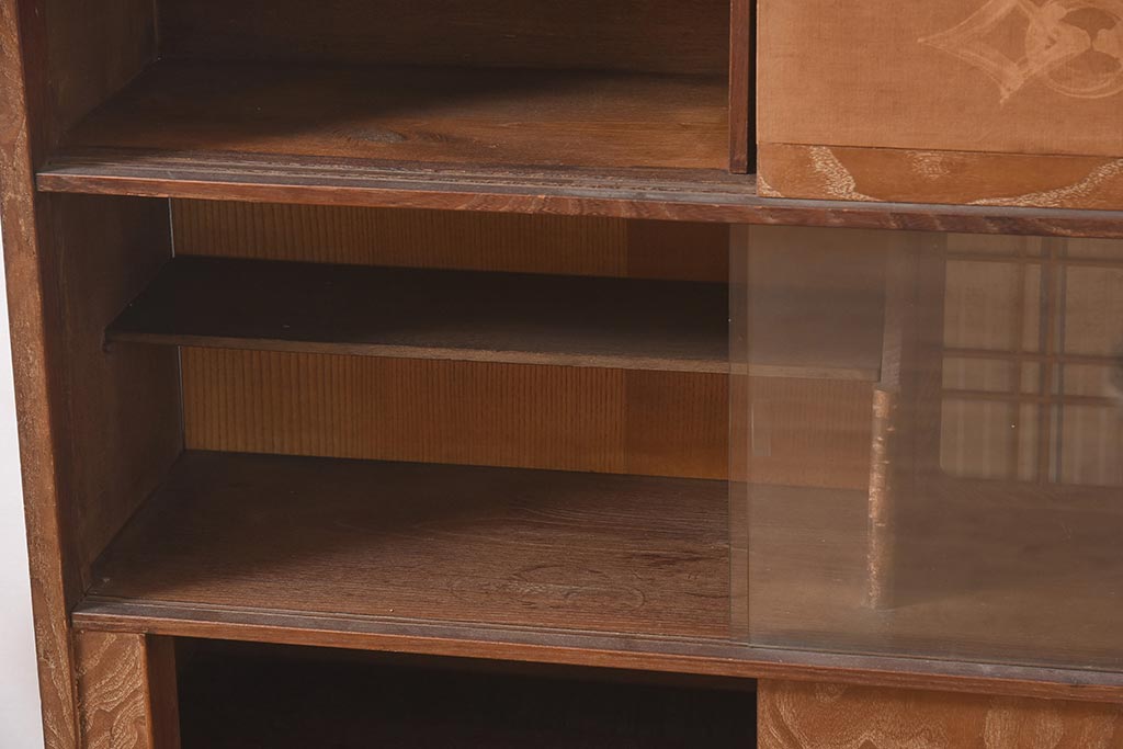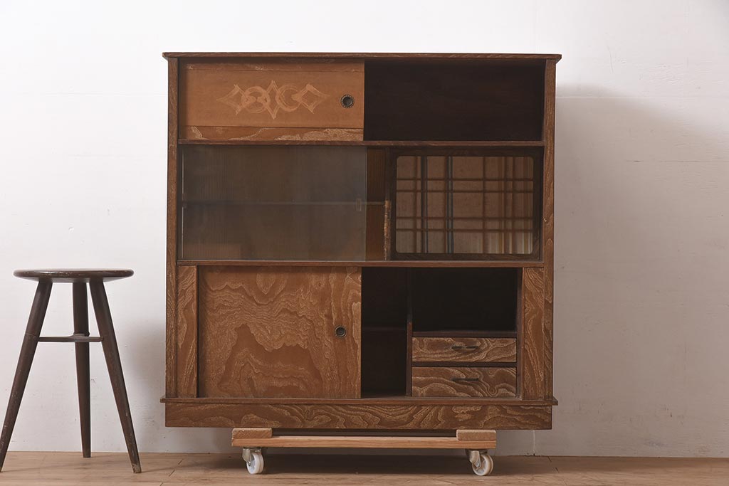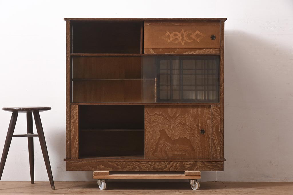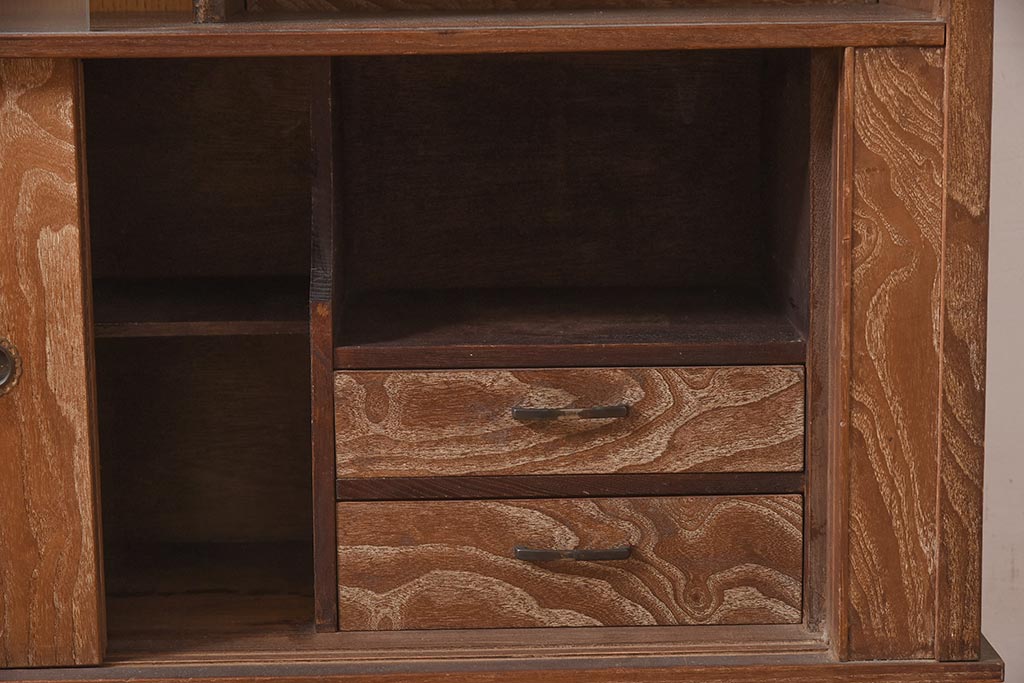 和箪笥> 茶箪笥・茶棚 > ビンテージ家具 和製ビンテージ 前面桑材貼り 和の風情漂う飾り棚(茶箪笥、茶棚、収納棚)(R-044375)