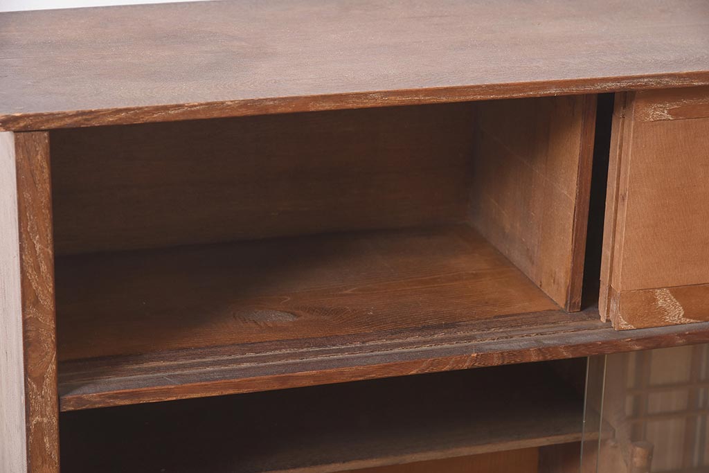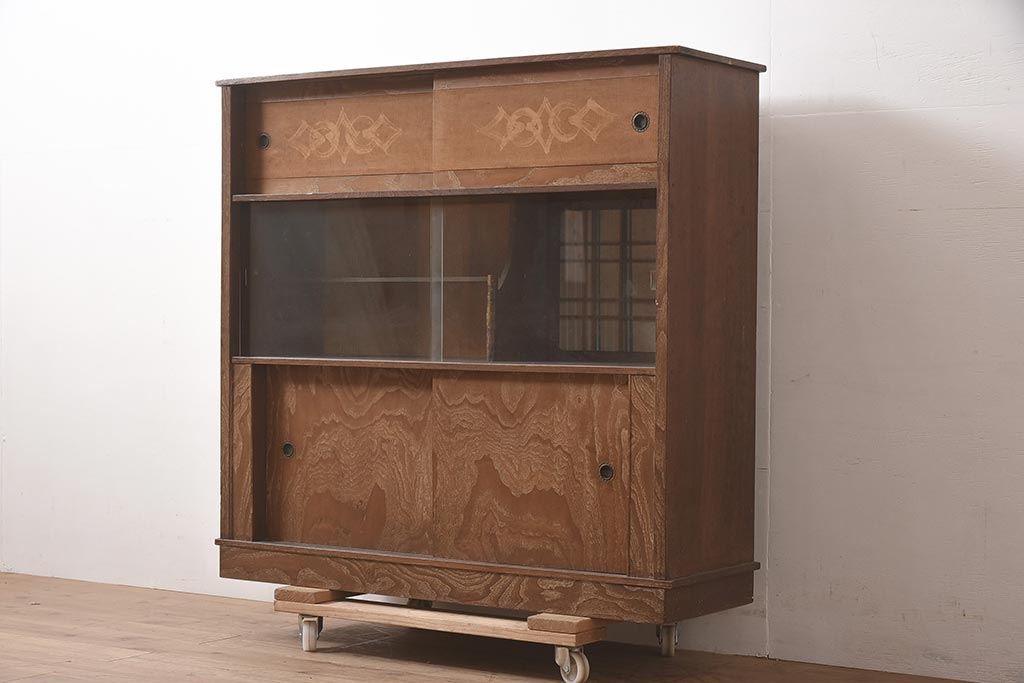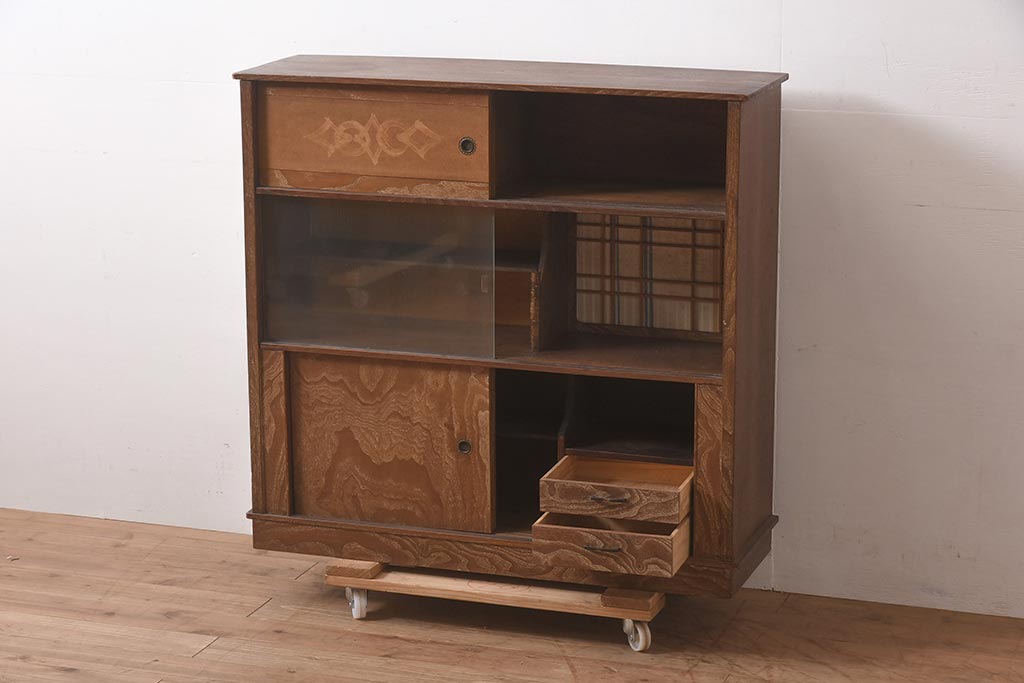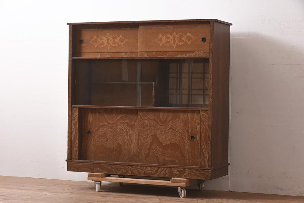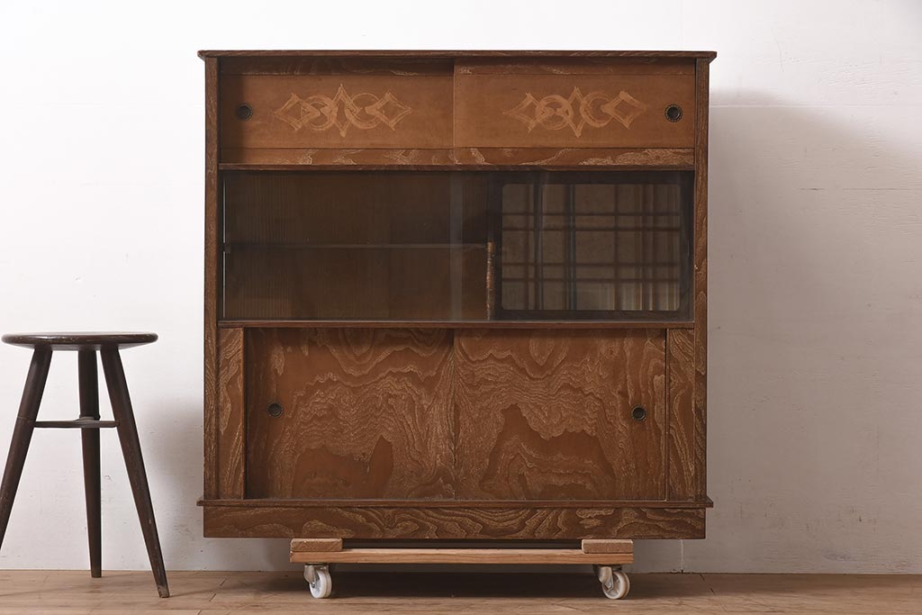 和箪笥> 茶箪笥・茶棚 > ビンテージ家具 和製ビンテージ 前面桑材貼り 和の風情漂う飾り棚(茶箪笥、茶棚、収納棚)(R-044375)