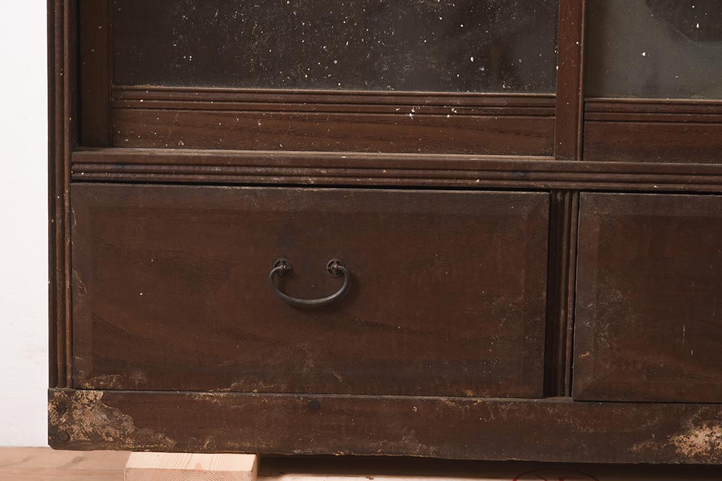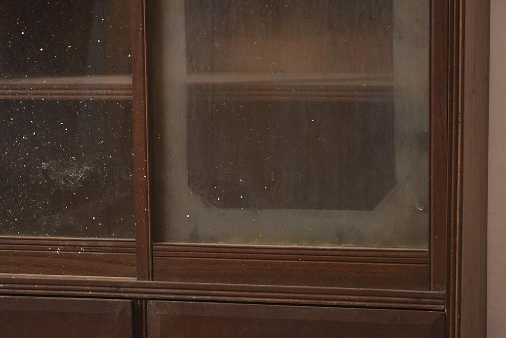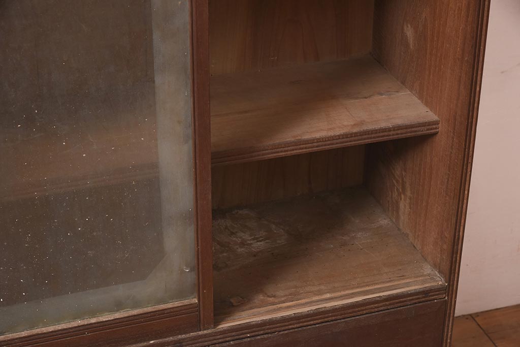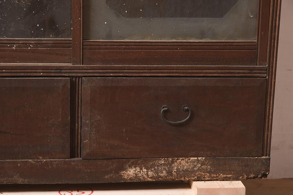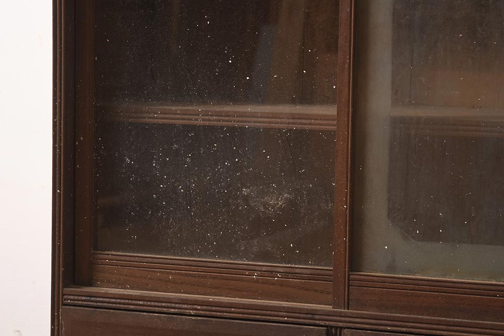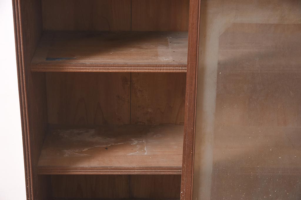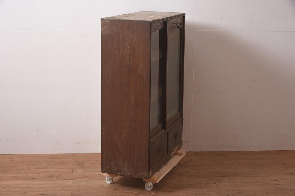アンティーク家具 和製 大正ロマン 透かし彫りの意匠がおしゃれな栗材製の収納棚(ガラス戸棚、食器棚、飾り棚、キャビネット)(R-044373)