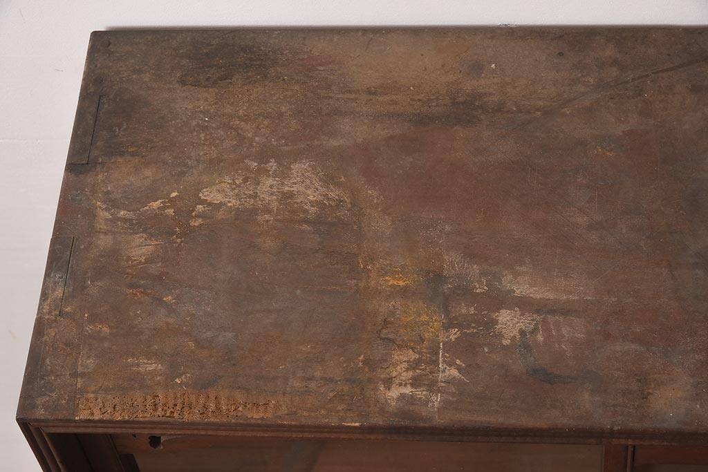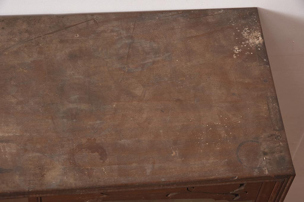 アンティーク家具 和製 大正ロマン 透かし彫りの意匠がおしゃれな栗材製の収納棚(ガラス戸棚、食器棚、飾り棚、キャビネット)(R-044373)です。
