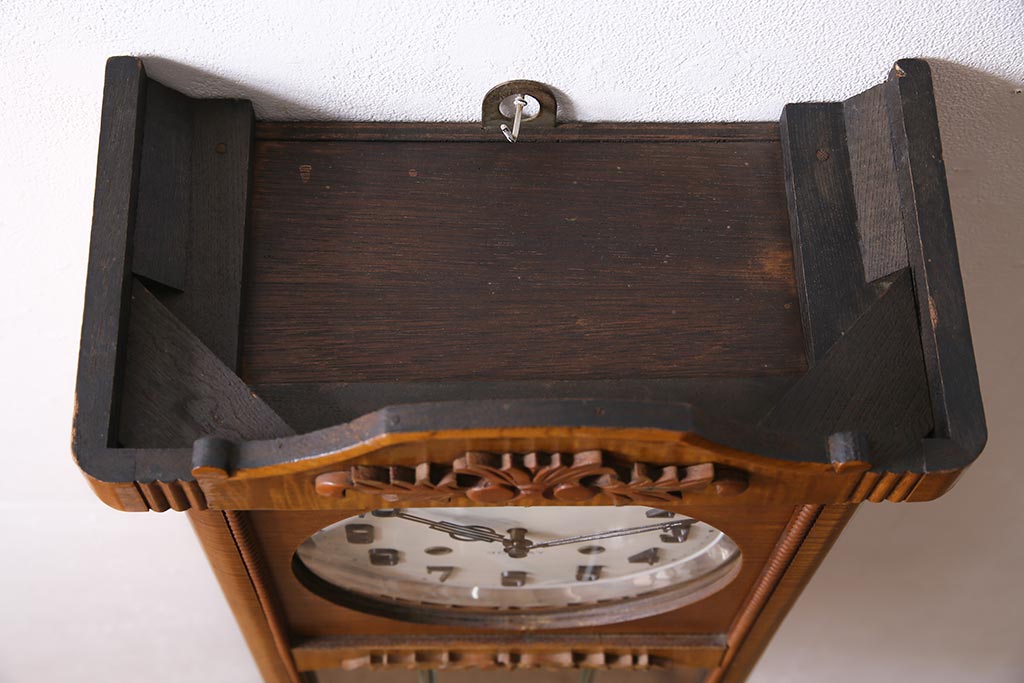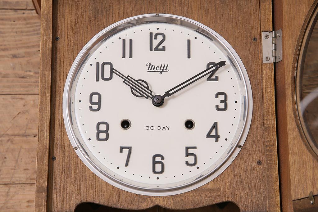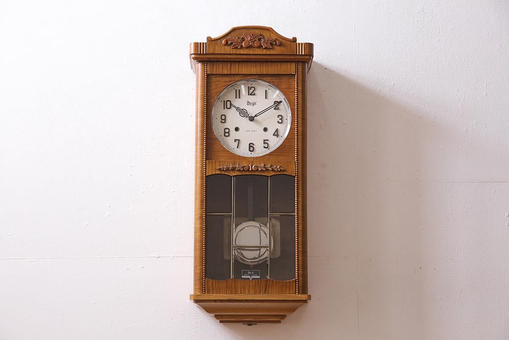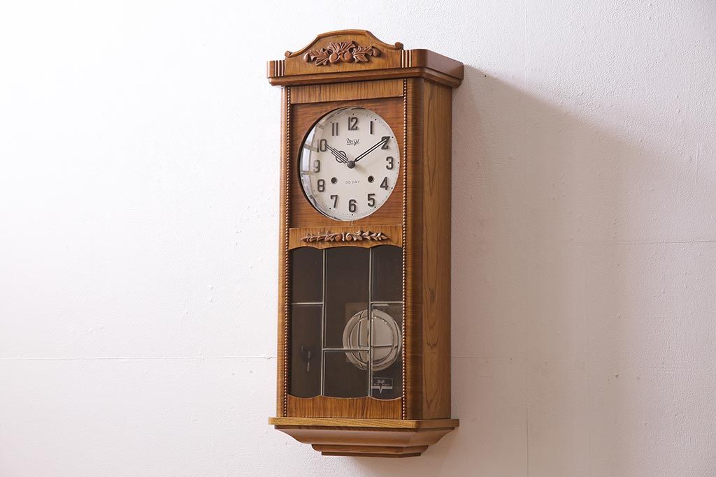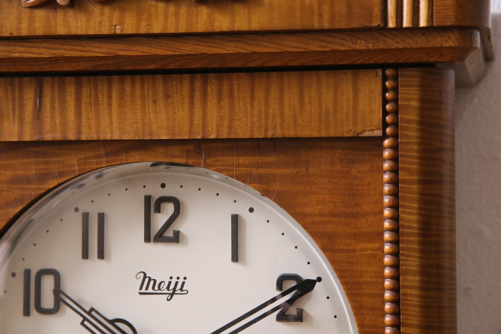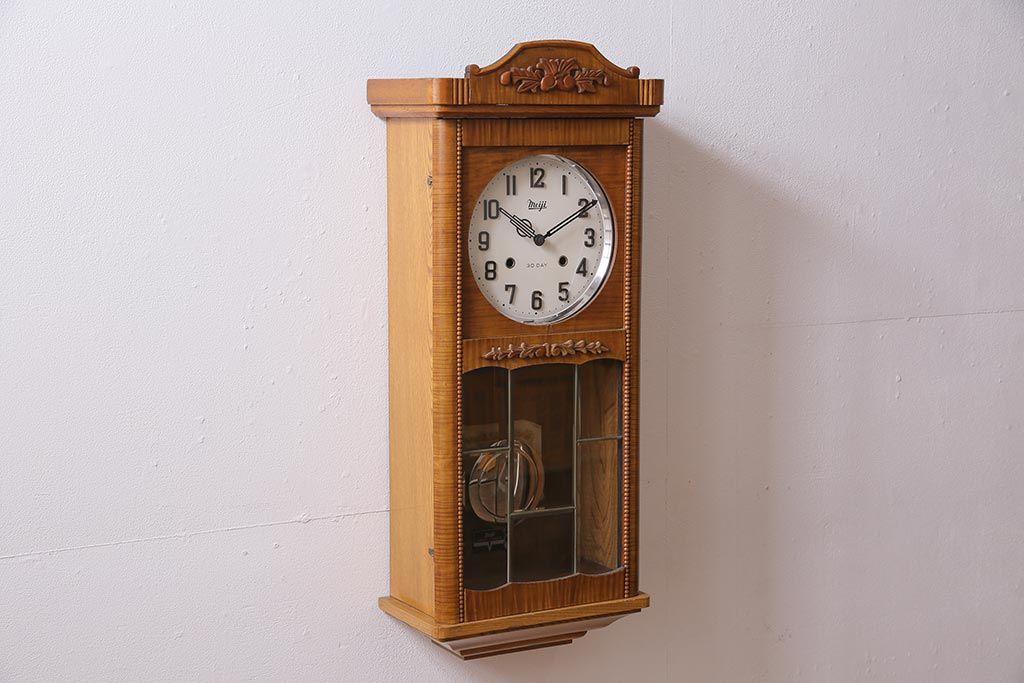 時計> 掛け時計 > アンティーク雑貨 Meiji(明治時計社) 細かな彫りが美しいレトロな振り子時計(柱時計、掛け時計、ボンボン時計)(R-044551)
