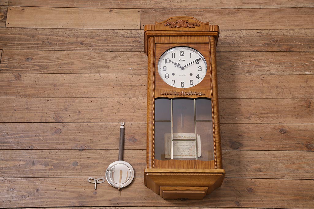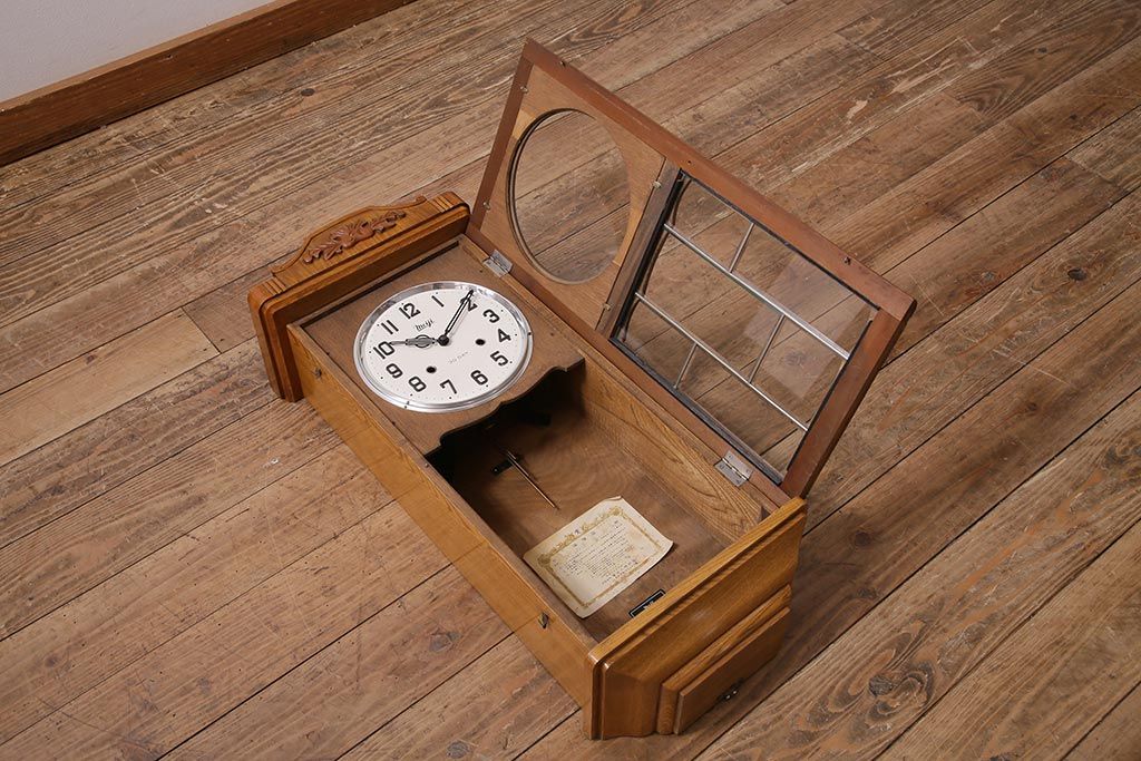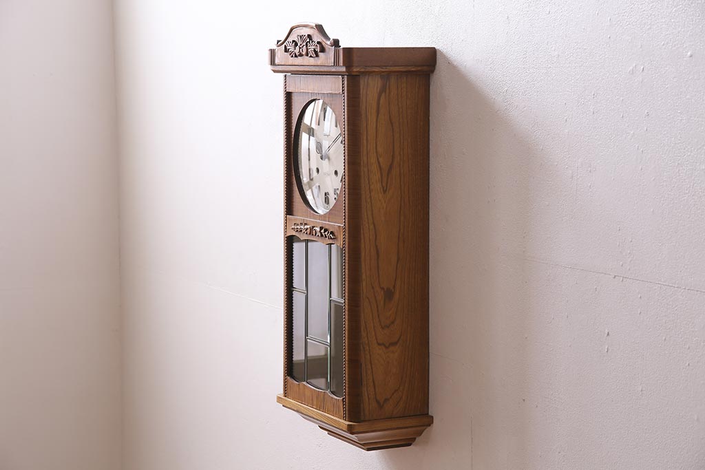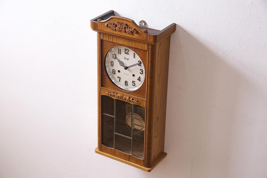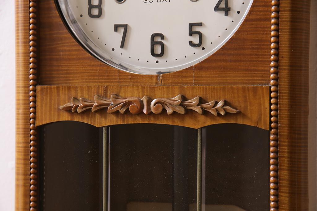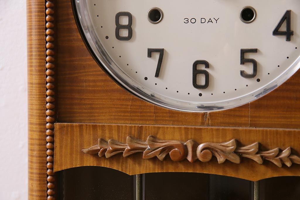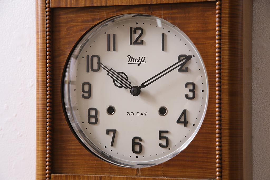 時計> 掛け時計 > アンティーク雑貨 Meiji(明治時計社) 細かな彫りが美しいレトロな振り子時計(柱時計、掛け時計、ボンボン時計)(R-044551)