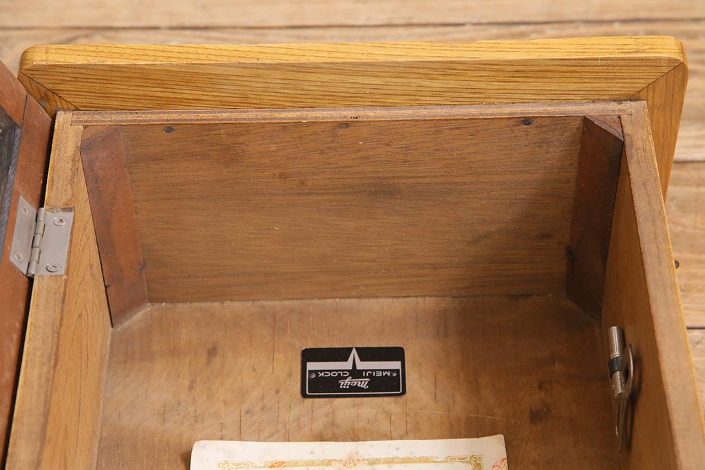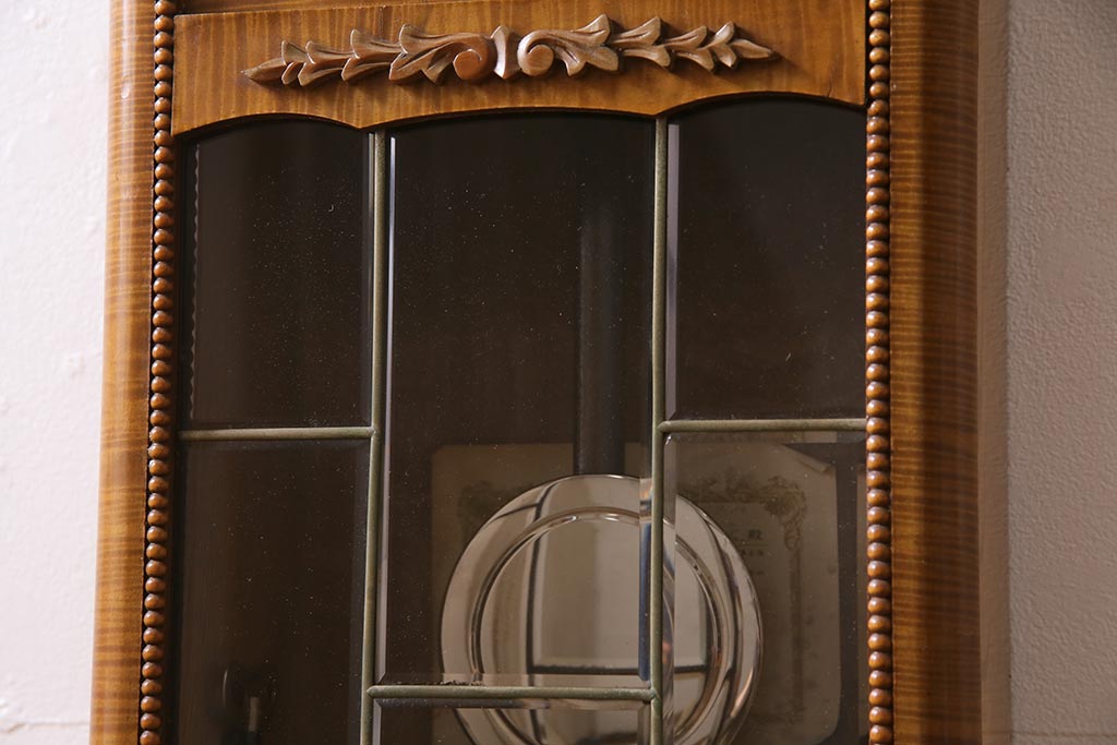 アンティーク雑貨 Meiji(明治時計社) 細かな彫りが美しいレトロな振り子時計(柱時計、掛け時計、ボンボン時計)(R-044551)