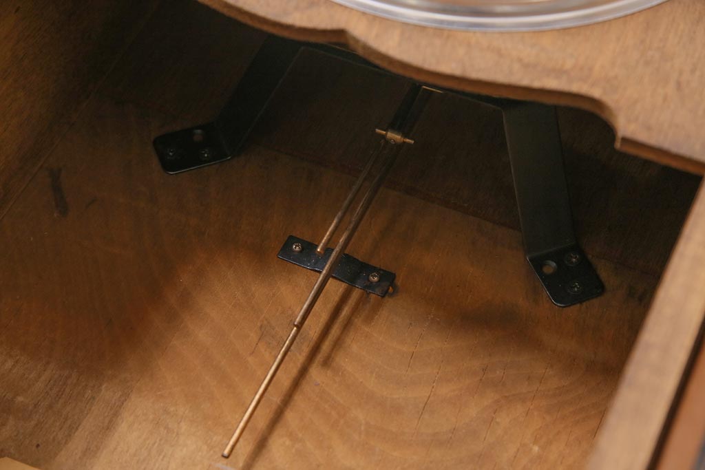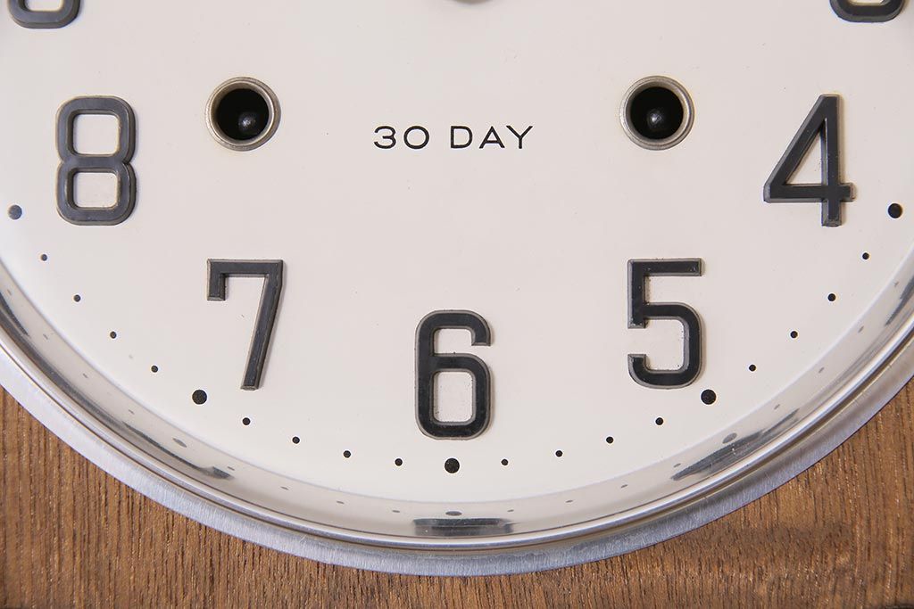 1時間毎に時間の数だけ鐘が鳴ります。また、各時間の30分に1回鐘が鳴ります。背面に音消し装置がついております。